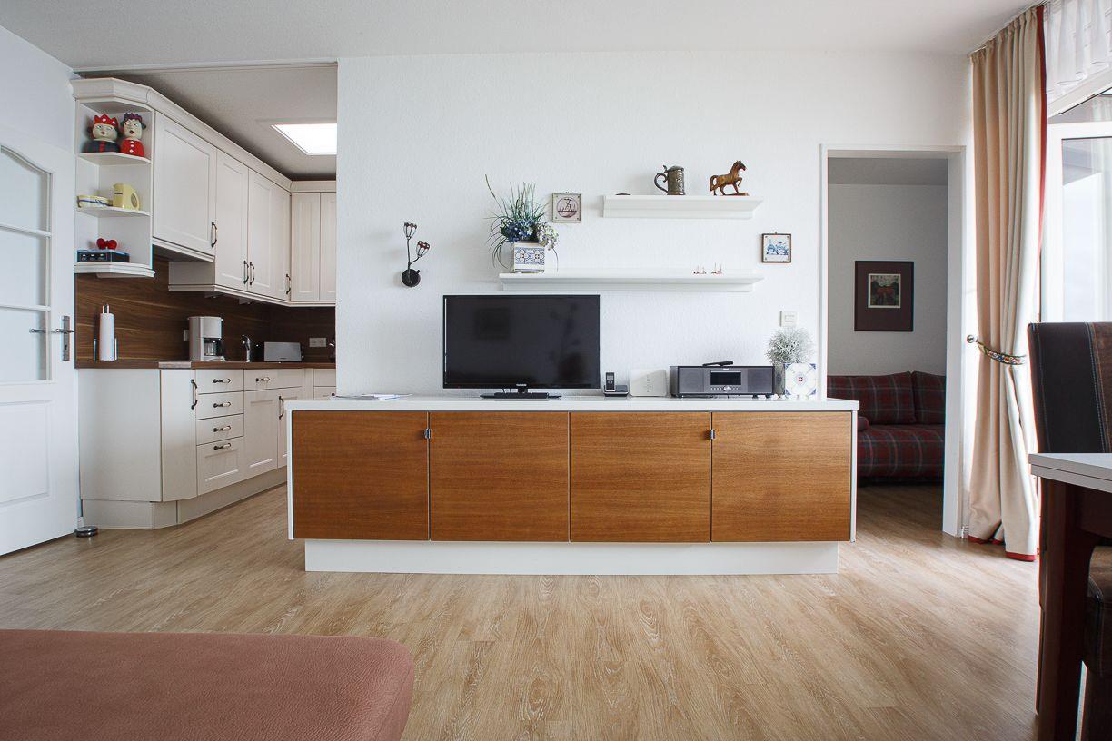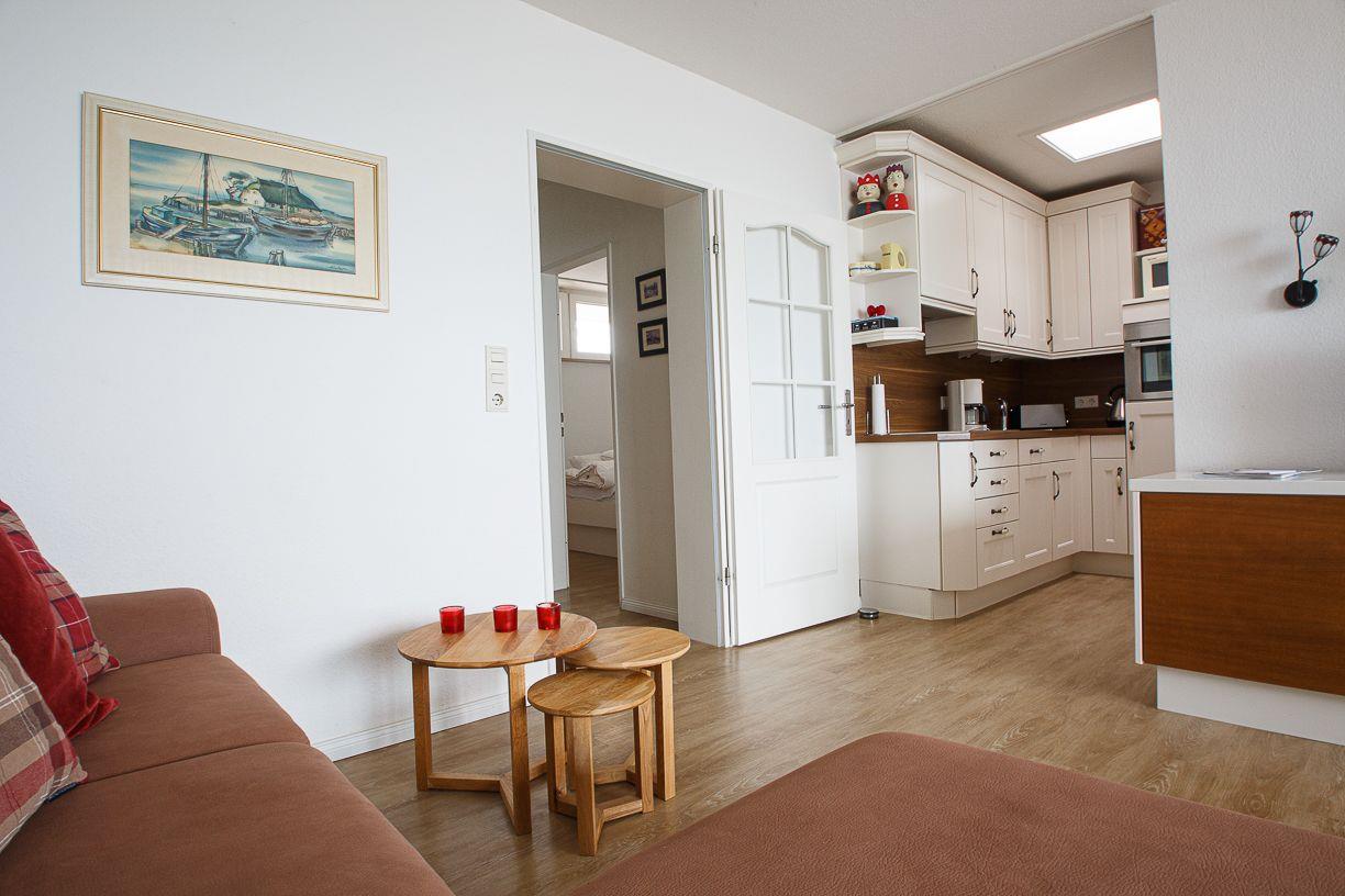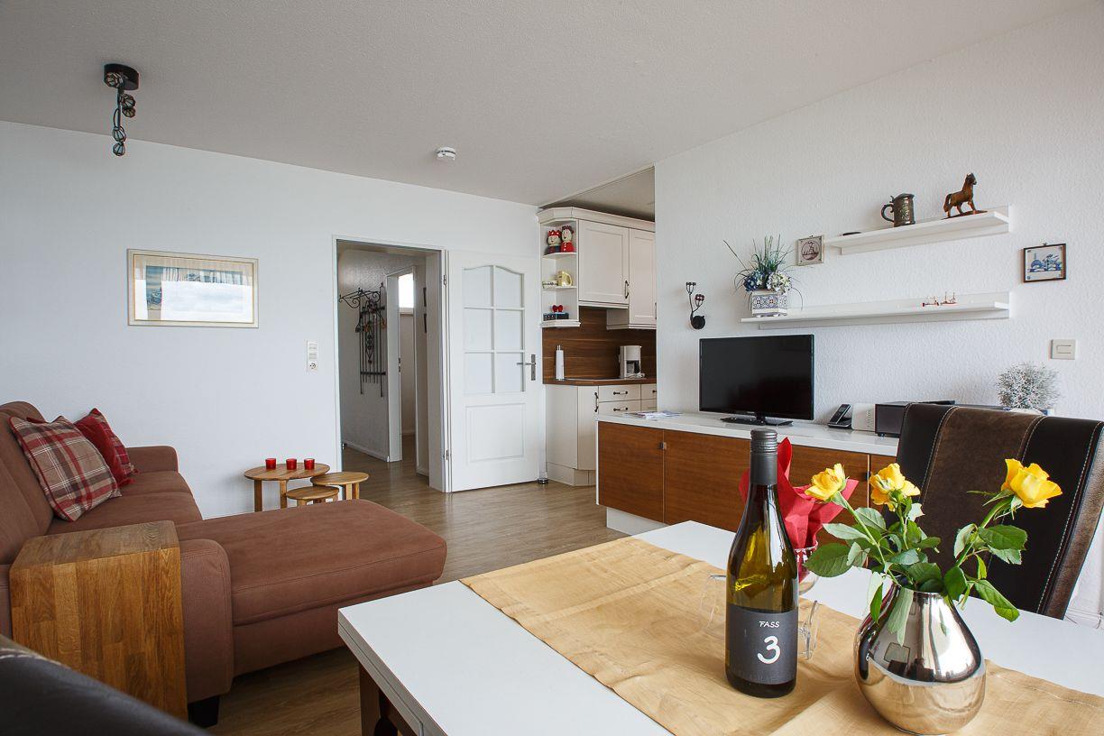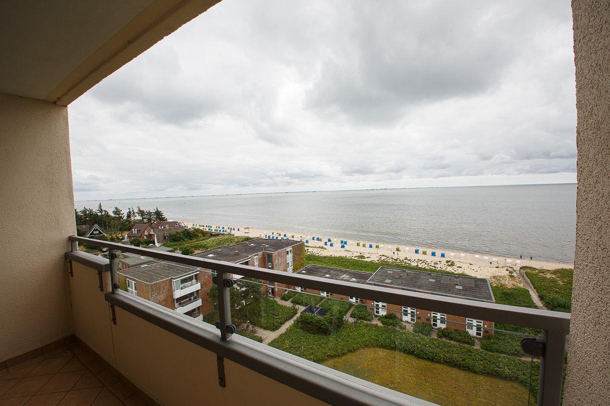Die helle, mit farbigen Akzenten eingerichtete Wohnung liegt im 7. OG und bietet einen atemberaubenden Blick über die Nordsee und die vorgelagerten Halligen. Sie ist für bis zu 4 Personen ausgestattet. Die Wohnung besteht aus einem Wohnzimmer mit angrenzender Küchenzeile, zwei Schlafzimmern, Duschbad mit WC und einem Flur. Der vom Wohnzimmer aus begehbare, überdachte Südbalkon ist mit Balkonmöbeln ausgestattet und lädt zum Verweilen ein. Das Schwimmbad und die Sauna im Hause stehen zur Nutzung zur freien Verfügung bereit.