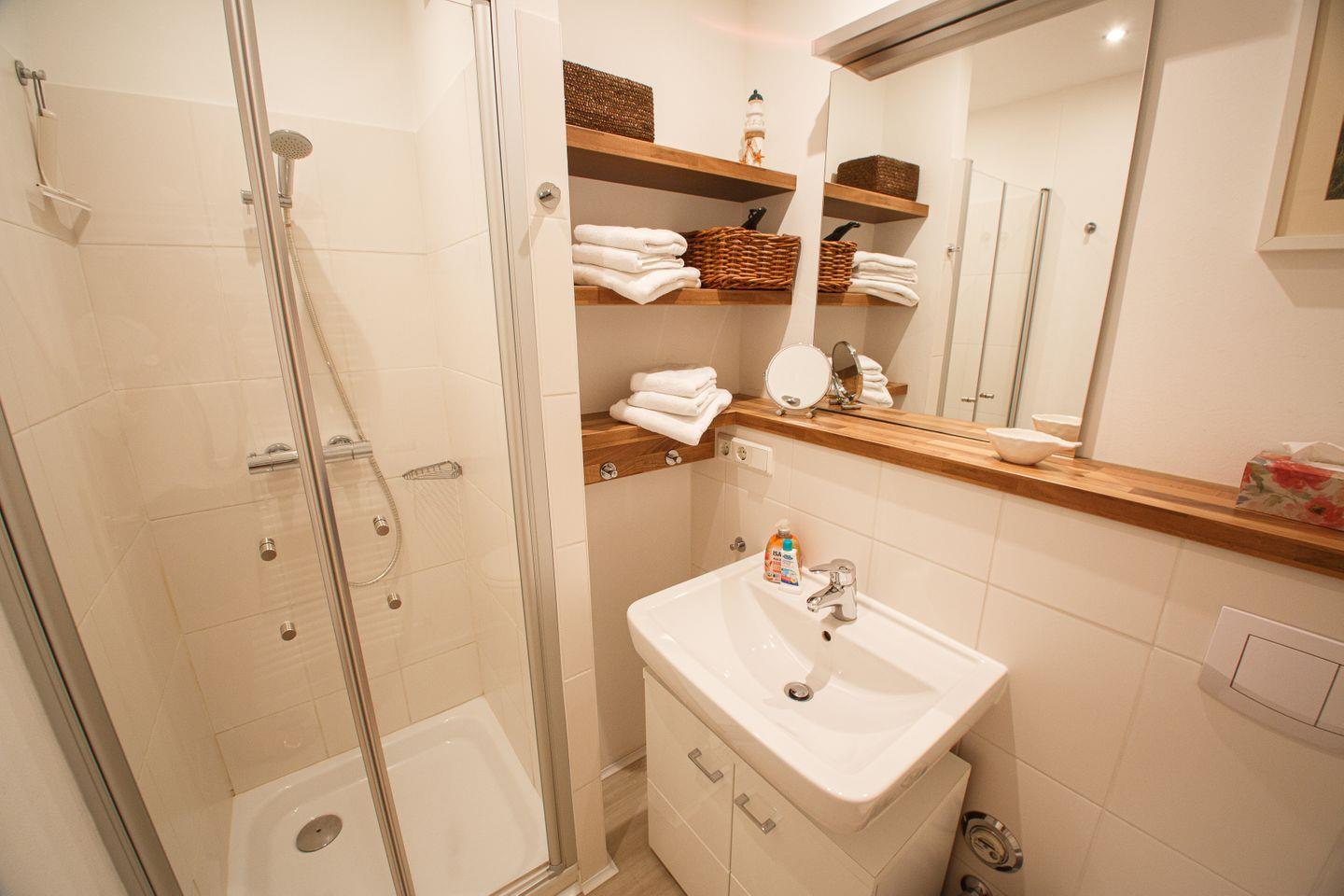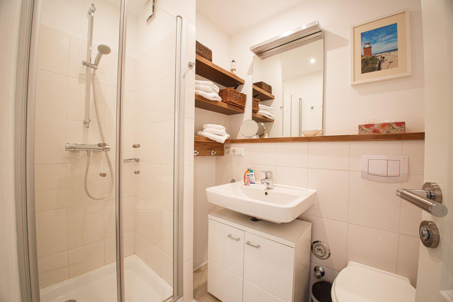 Es begrüßt Sie eine helle, moderne zwei Zimmer Wohnung mit praktischer Aufteilung und einem großen Südwest Balkon, von dem Sie einen seitlichen Blick auf die Nordsee und ins Grüne genießen können.