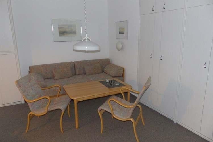 Der zum Wohnbereich zugehörige, überdachte Balkon mit Gartenblick ist mit Gartenmöbeln und einem Sonnenschirm ausgestattet. Hier können Sie die frische Seeluft genießen und entspannte Stunden im Freien verbringen. Für Ihr Fahrzeug steht Ihnen ein privater Parkplatz zur Verfügung, das Auto ist jedoch nicht zwingend notwendig, da Einkaufsmöglichkeiten (50 m), Restaurants (150 m), die Innenstadt von Wyk (1.000 m), der Fähranleger (1.400 m) und auch der Golfplatz (1.200 m) bequem zu Fuß erreichbar sind.