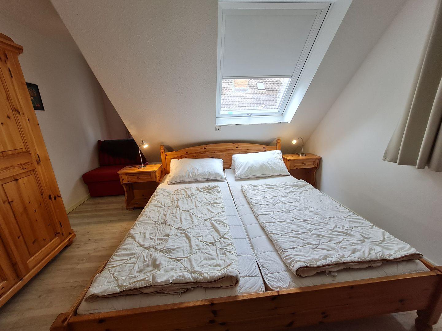 Dieses schöne, am Rande vom Nordsee Kurpark, gelegene Ferienhaus ist nur wenige Schritte vom Südstrand und der Strandpromenade entfernt. Das Ferienhaus verteilt sich über zwei Etagen und bietet Schlafmöglichkeiten für bis zu 4 Personen. Eine Bäckerei und Bushaltestelle befinden sich auf der gegenüberliegenden Straßenseite. Ein Edeka-Laden ist ca. 300 m entfernt. Wellenbad, Fußgängerzone, Einkaufsmöglichkeiten und Golfplatz erreichen Sie nach ca. 20 Minuten Spaziergang. Ein PKW-Stellplatz befindet sich direkt am Haus. Im Erdgeschoss Sie das Wohnzimmer mit Esstisch und Küchenzeile, eine Sitzecke und ein Badezimmer mit Dusche, Föhn, WC und Waschmaschine vor. An kühlen Tagen verbreitet der Kaminofen eine behagliche Wärme und schafft im Raum eine gemütliche Atmosphäre. Das Haus wird mit Fußbodenheizung beheizt (Fliesen). Eine Schlafcouch und ein Sofa laden zum gemütlichen Beisammensein. Für Unterhaltung sorgen ein Flachbild-TV mit DVD-Player, kostenloses WLAN und eine HiFi-Anlage mit CD und Radio. Aus dem Wohnzimmer gelangt man auf die möblierte Terrasse. Die moderne Küchenzeile ist vollständig ausgestattet u.a. mit Ceran-Kochfeld, Senseo-Kaffeemaschine, Wasserkocher, Raclette, Elektrogrill, Gläser und Geschirr. Im 1.OG befindet sich ein Schlafzimmer mit Doppelbett, Kleiderschrank, zwei Sesseln, Fernseher und Radiowecker. Nebenan finden Sie das zweite Badezimmer mit einer kleinen Sitzbadewanne und Dusche sowie einem zweiten WC. Das Dachgeschoss kann als Abstellraum für Ihre Koffer o.ä. genutzt werden.