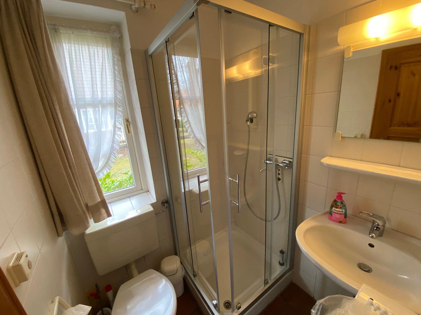 1.OG: Schlafzimmer, zweites Badezimmer, Dusche und WC.