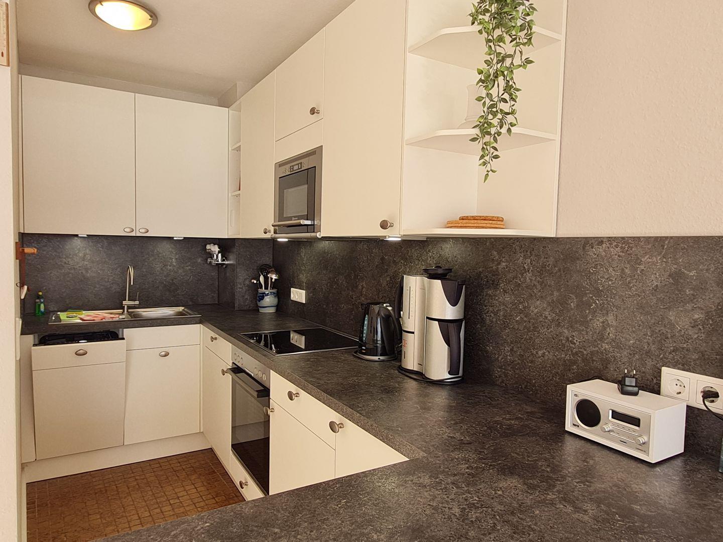 Die Ferienwohnung besteht aus einem Wohnzimmer mit Küchenzeile, Schlafzimmer, Duschbad und Flur. Im Wohnraum stehen Ihnen ein Esstisch mit zwei Stühlen, ein Schlafsofa, ein Sessel, ein Couchtisch und eine Kommode zur Verfügung. Für Ihre Unterhaltung in der Wohnung sorgt ein TV, WLAN (kostenlos) und eine kleine Auswahl an Büchern. Zu der Ausstattung der Küchenzeile gehören u.a.: Toaster, Kaffeemaschine, Wasserkocher, Mikrowelle, Geschirrspüler, Kühlschrank mit einem Gefrierfach, Besteck, Geschirr und Töpfe. Abstellmöglichkeiten für Fahrräder befinden sich direkt am Haus oder im Fahrradkeller. Ein PKW-Stellplatz am Haus gehört zur Wohnung.