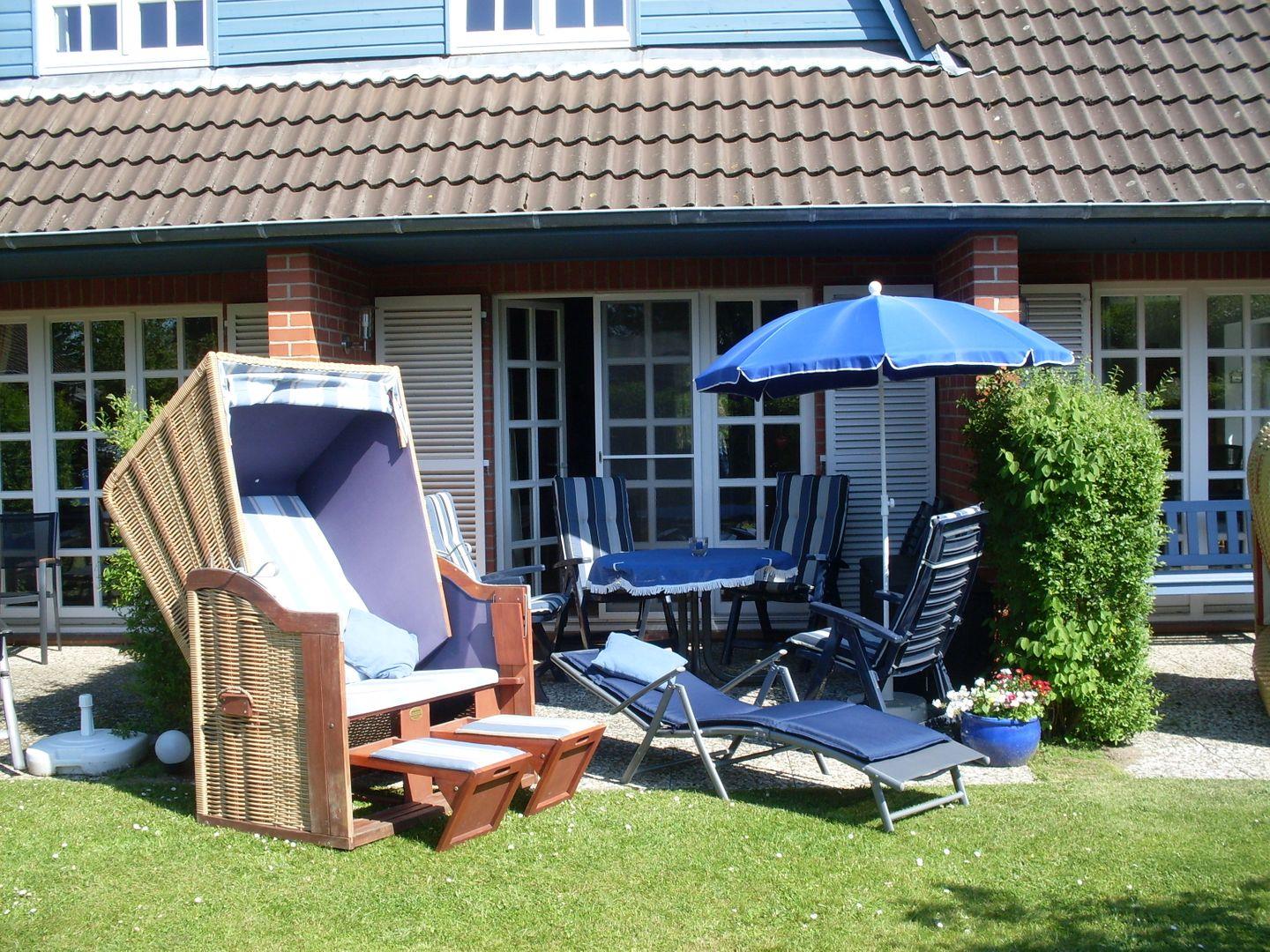 Ferienreihenhaus Lerius - mit Strandkorb auf der Terrasse