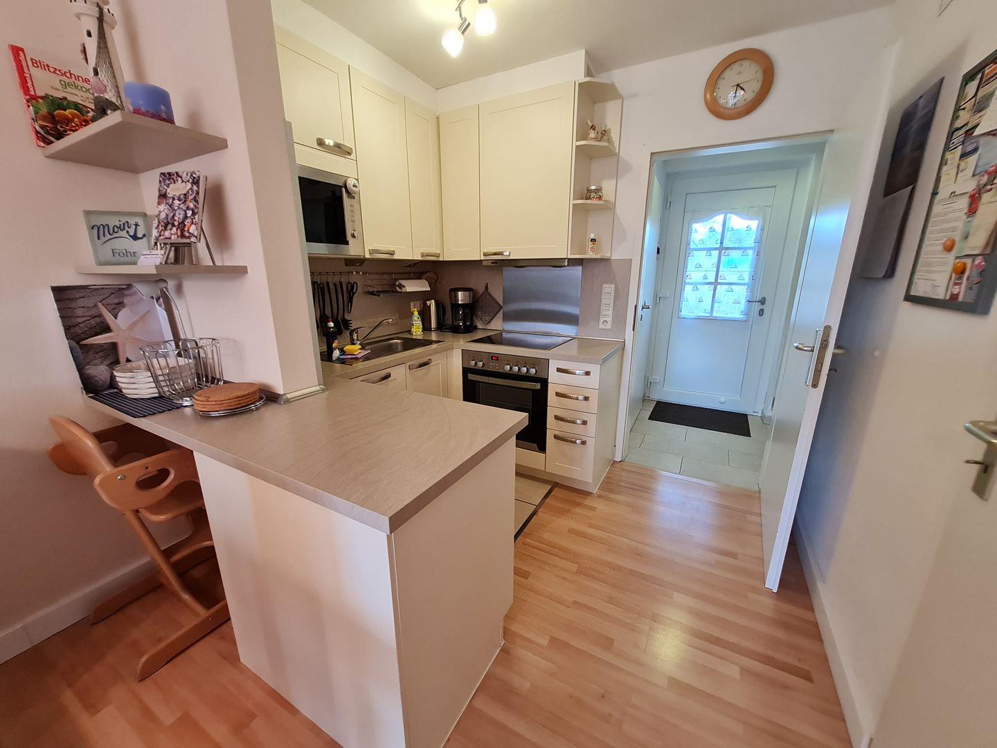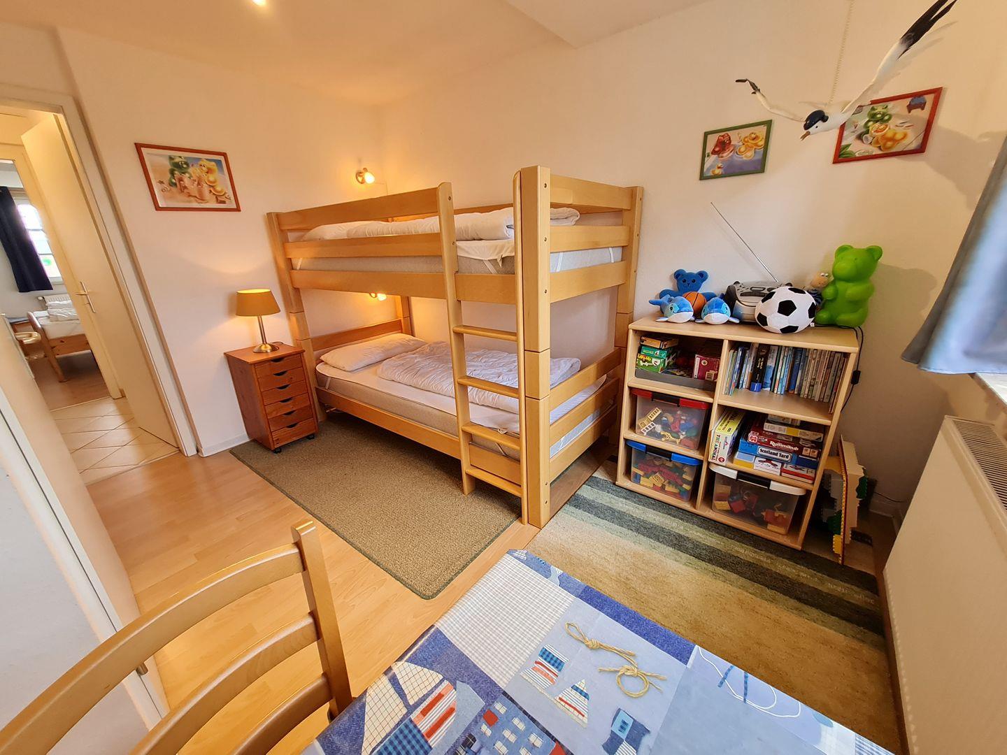 Das Kinder- und Allergikerfreundliche und modern eingerichtete Reihenmittelhaus mit zwei Schlafzimmern ist ca. 10 - 15 Minuten Fußweg vom schönen Südstrand, dem Zentrum von Wyk und dem Wellenbad mit Kuranwendungen entfernt. Es erstreckt sich über 2 Etagen und verfügt im EG über ein Wohnzimmer (Kabel-TV, Internet-Radio, Sofa, 2 Sessel) mit Essplatz und Küche, ein WC mit Waschmaschine, Flur und einen Abstellraum, sowie eine West-Terrasse mit Strandkorb und Gartenmöbeln. Im 1.OG befinden sich ein Schlafzimmer (Doppelbett, Kabel-TV, Kleiderschrank), Kinderzimmer mit einem Etagenbett, Einbauschrank, Schreibtisch, Kommode, Spielzeug, Kinderbücher und ein Duschbad mit WC und einem Spiegelschrank. An der Treppe zum Erdgeschoss wurde ein Türgitter angebracht. Alle Räume sind liebe- und geschmackvoll eingerichtet. Ein Kinderreisebett und ein Kinderhochstuhl sind vorhanden. Der umzäunte Spielplatz direkt vor dem Haus kann gemeinschaftlich genutzt werden. Ein PKW-Stellplatz gehört zum Haus genauso wie eine Gartenhütte in der Sie Ihre Fahrräder o.ä. unterstellen können. WLAN, Telefon (nur deutsches Festnetz) und eine Waschmaschine können kostenlos genutzt werden. Tennishalle mit Aussenplätzen, Bolzplatz und Bäcker liegen in unmittelbarer Nachbarschaft. Auch der Golfplatz ist nicht weit vom Haus entfernt. Haustiere und das Rauchen im Haus sind nicht erlaubt.