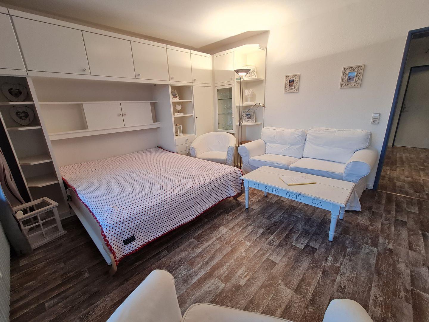 Die Ferienwohnung verfügt über einen großen, möblierten Süd-West-Balkon, ein Wohnzimmer, ein Schlafzimmer, eine vollausgestattete Küche sowie ein Tageslicht Duschbad. Das lichtdurchflutete Wohnzimmer ist mit einer gemütlichen Sitzecke mit LCD-TV (Kabel), DVD-Player sowie Radio mit CD-Player und einem Schrankbett für zwei weitere Plätze ausgestattet. In der Küche finden Sie neben einem Herd, Backofen, Toaster und Kühlschrank mit Gefrierfach, Kaffeemaschine, Wasserkocher, Geschirr, Töpfe und Besteck einen Esstisch mit zwei Stühlen und zwei Klappstühlen. Im Schlafzimmer steht Ihnen ein Doppelbett und ein großer Kleiderschrank zur Verfügung. Alle Räume sind gemütlich und geschmackvoll eingerichtet. Auf dem mit Gartenmöbeln ausgestatteten Balkon können Sie bei einem Glas Wein oder einem Abendbrot den Sonnenuntergang bewundern. WLAN kann kostenlos genutzt werden.