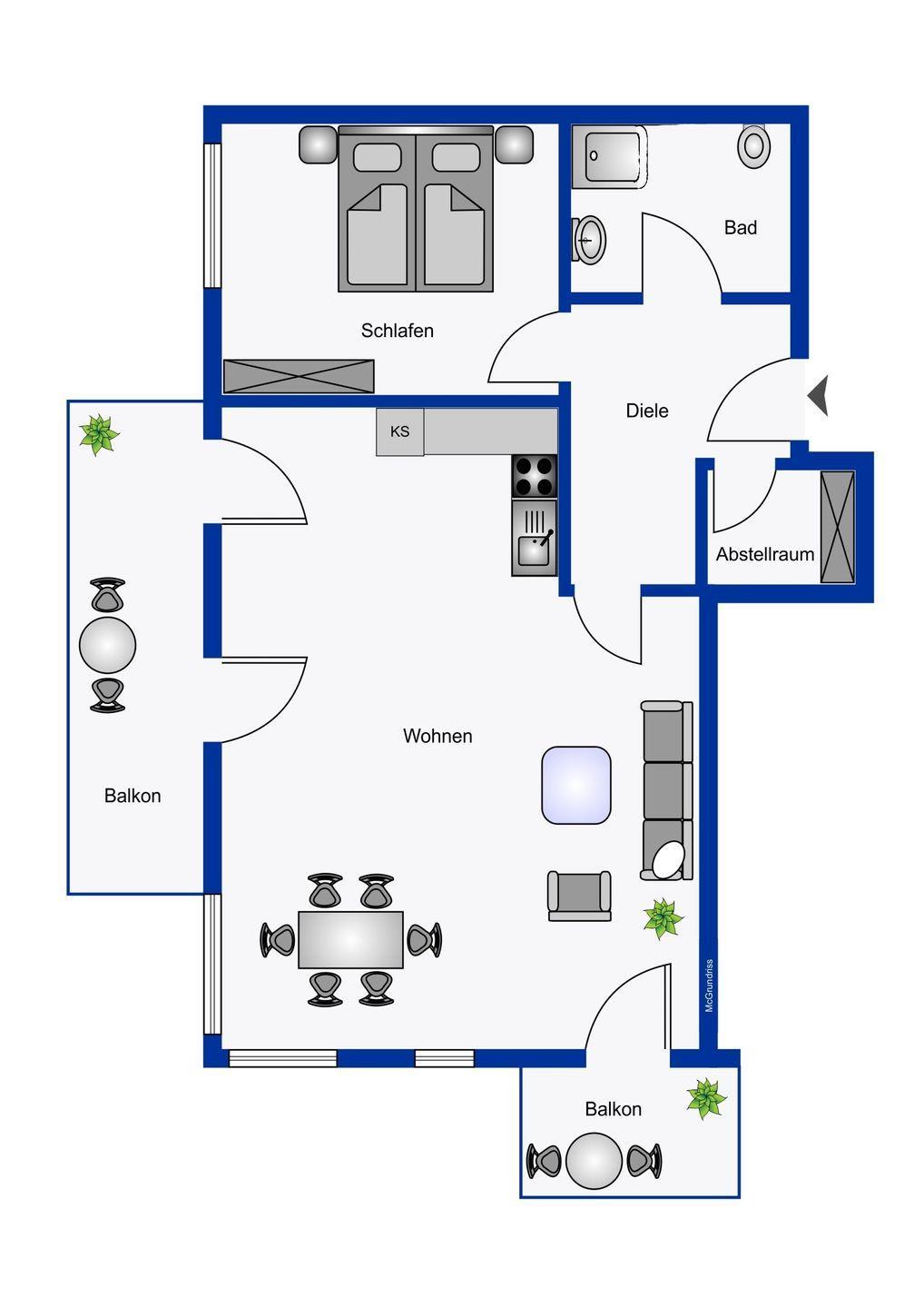 Tolle, helle 2-Zimmerwohnung direkt auf der Wyker Flaniermeile. Den Strand und das Meer können Sie von den beiden Balkonen aus schon sehen.