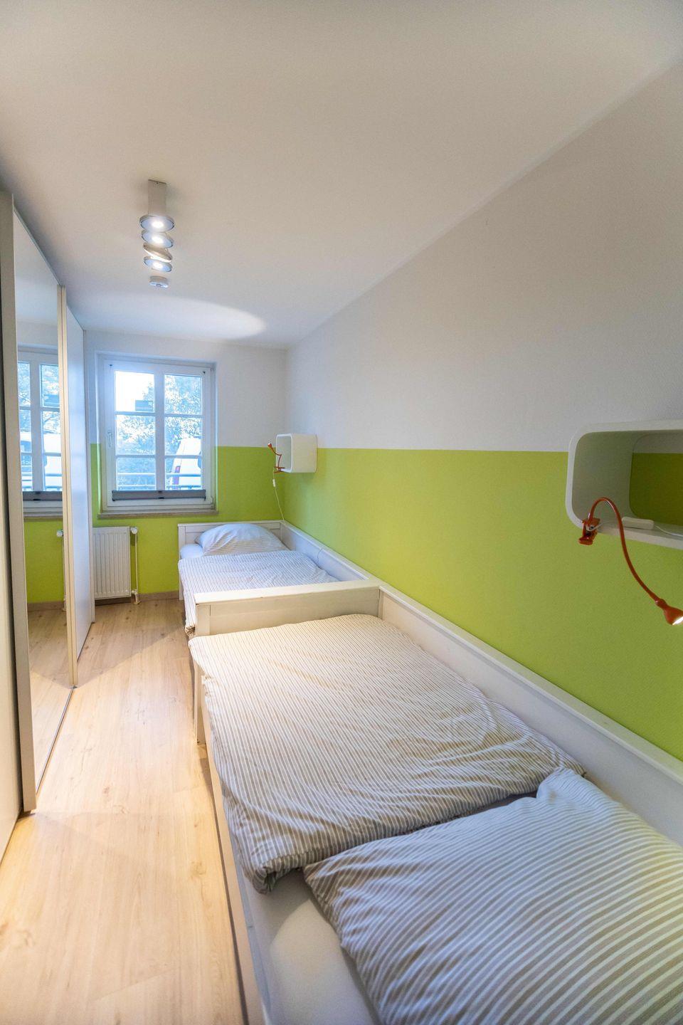 Die Wohnung selbst präsentiert sich in einem modernen und gemütlichen Ambiente. Im Erdgeschoss gelegen, bietet sie zwei geschmackvoll gestaltete Schlafzimmer. Das Hauptschlafzimmer verfügt über ein komfortables Boxspringbett mit großzügigen Maßen von 160 cm in der Breite und 200 cm in der Länge. Das zweite Schlafzimmer ist mit zwei Einzelbetten ausgestattet, jeweils 90 cm breit und 200 cm lang. Hier finden insgesamt vier Personen ausreichend Platz für erholsame Nächte.