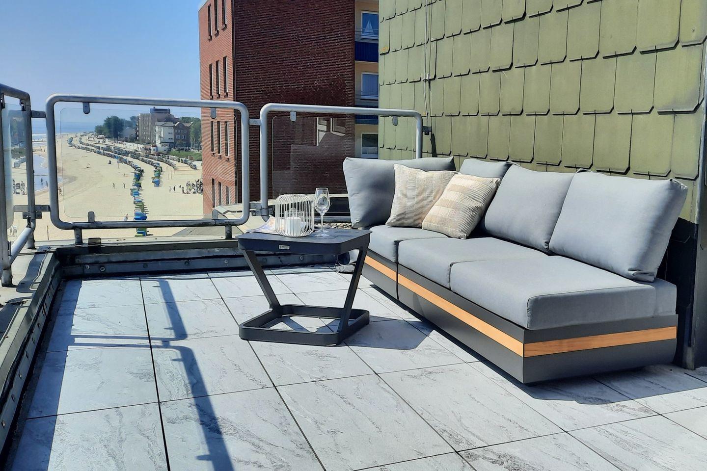 - große Dachterrasse mit Gartenmöbeln und sagenhaften Blick vom Hafen bis zm Südstrand