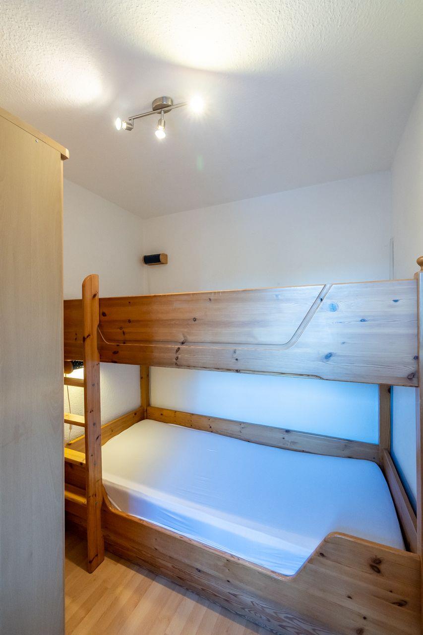 Beim Betreten der Wohnung zweigen vom Wohnungsflur die praktische Küchenzeile, das großzügige Wohnzimmer und ein Schlafraum mit einem Doppelbett ab. Das zweite Schlafzimmer, das vom Hauptschlafzimmer abgeht, ist mit einem Etagenbett (zwei Mal 90*200 cm) ausgestattet und verfügt ebenfalls über tief heruntergezogene Fenster. Die gut ausgestattete Küchenzeile bietet eine Mikrowelle, eine Spülmaschine und ein Cerankochfeld für die Zubereitung köstlicher Mahlzeiten. Das Duschbad präsentiert sich in neuem Zustand und überzeugt mit großflächigen Fliesen sowie einer modernen Duschkabine.