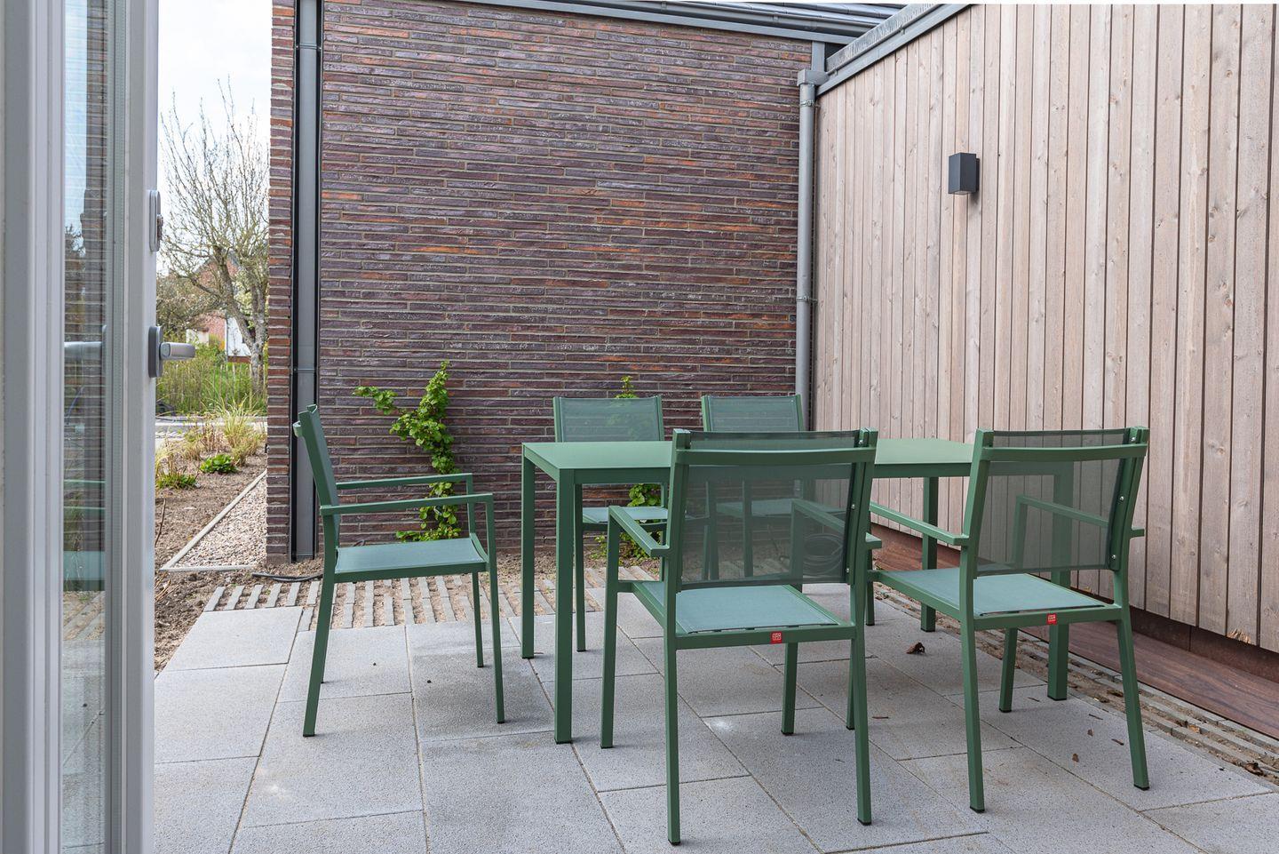 Der Hausteil liegt vollständig im Erdgeschoss und verfügt über einen großzügigen Wohn- und Essbereich mit offener Küche, ein Schlafzimmer mit Ankleide sowie einem Duschbad en Suite. Über den Wohnbereich gelangen Sie auf die eigene Terrasse und in den gemeinschaftlich genutzten Garten. Der Kaminofen im Wohnbereich sorgt auch an kühleren Tagen für eine angenehme Atmosphäre.