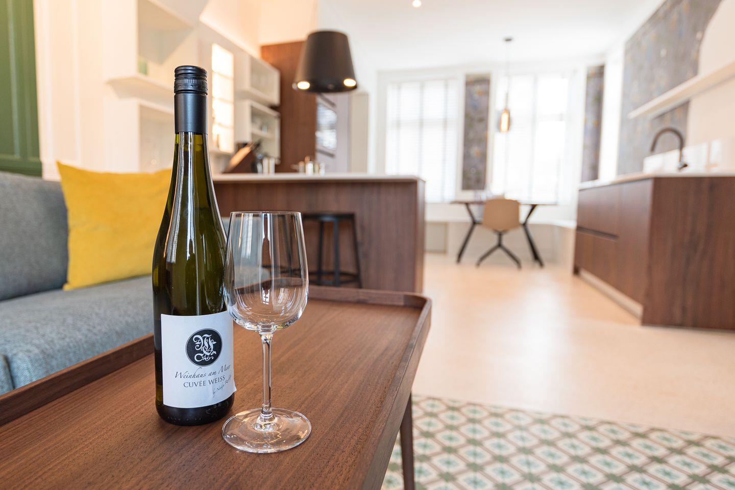 Zu den Highlights der Ferienunterkunft zählen wir u. a. die gemeinschaftliche Sauna und den Kaminofen, sowie die eigene Terrasse. Das einzigartige Raumkonzept zur Sanierung des Alten Notariats wurde von einer Innenarchitektin entwickelt.