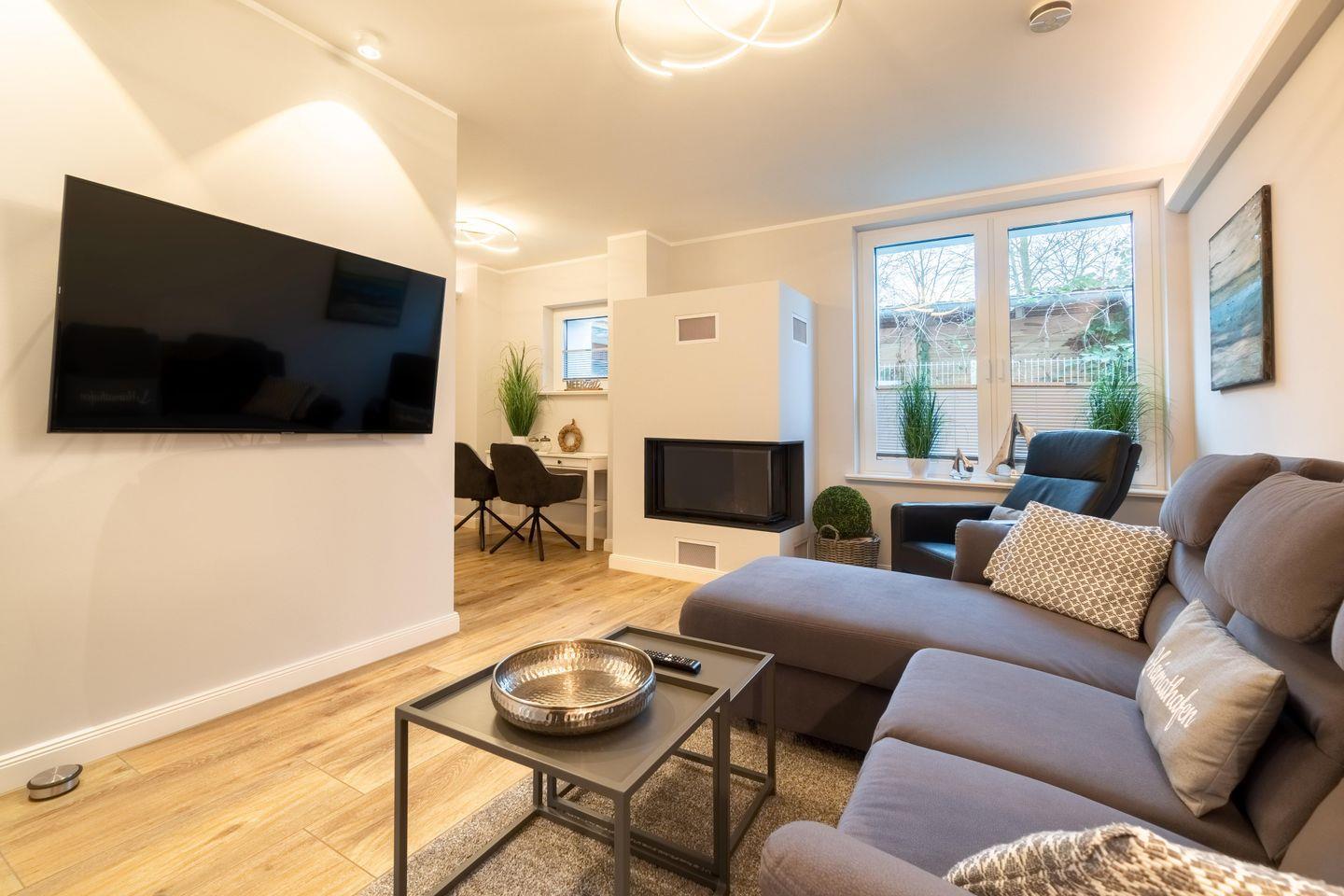 Zu den Highlights der Ferienunterkunft zählen wir u. a. die hochwertige Ausstattung, den eigenen Kamin und die eigene Terrasse sowie die Lage nahe der Wyker Innenstadt.