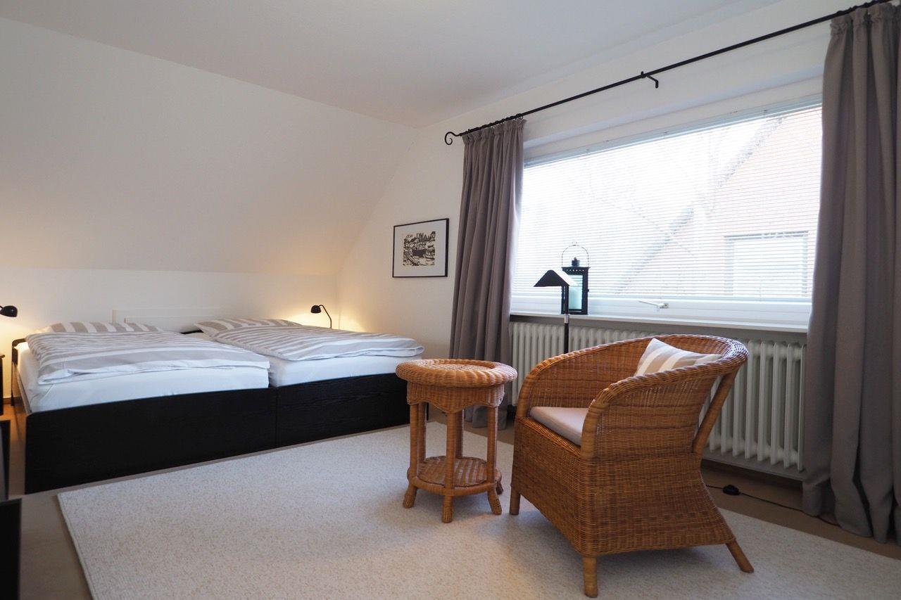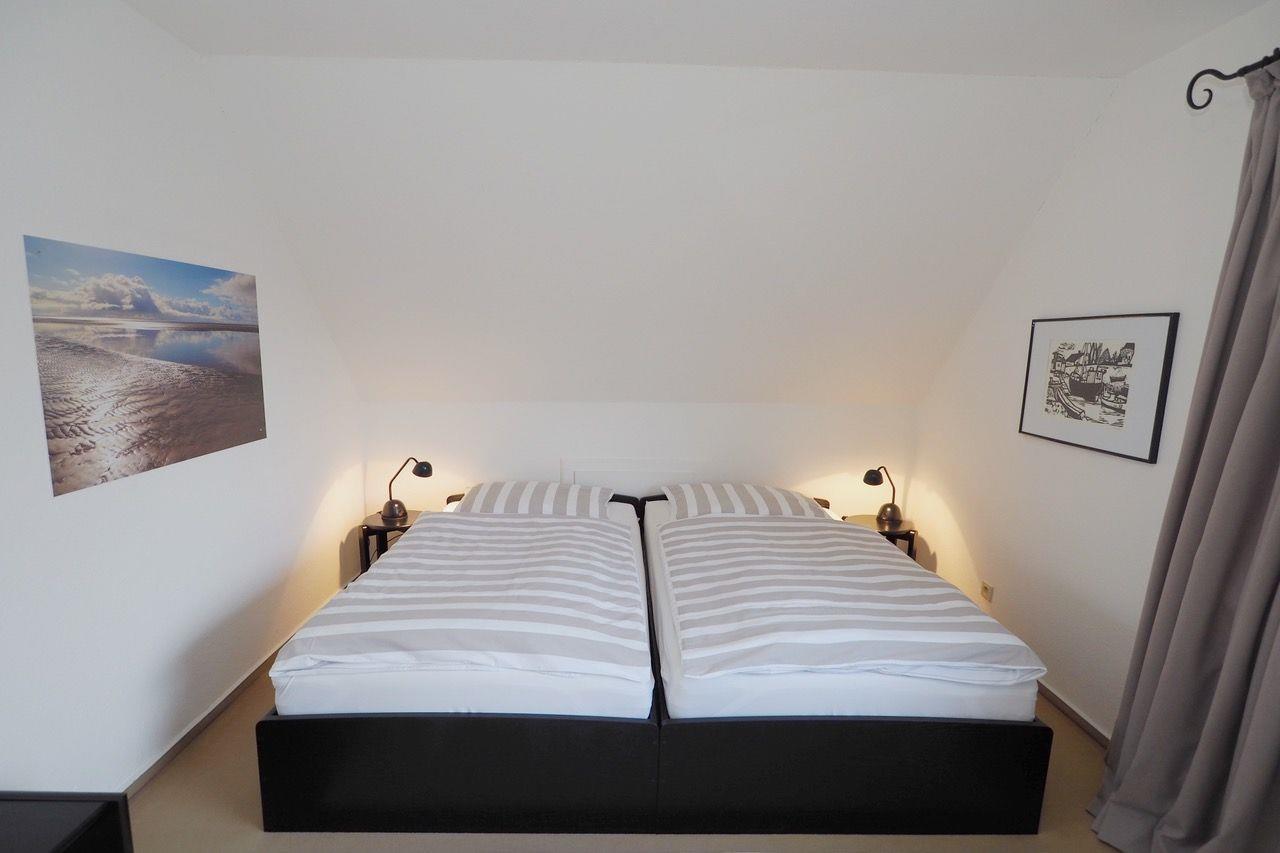Das große Doppelbett (2x90*200 cm) im Schlafzimmer verspricht eine erholsame Nachtruhe nach einem erlebnisreichen Tag auf der Insel. Das Schlafzimmer ist geschmackvoll eingerichtet und schafft eine angenehme Atmosphäre.
