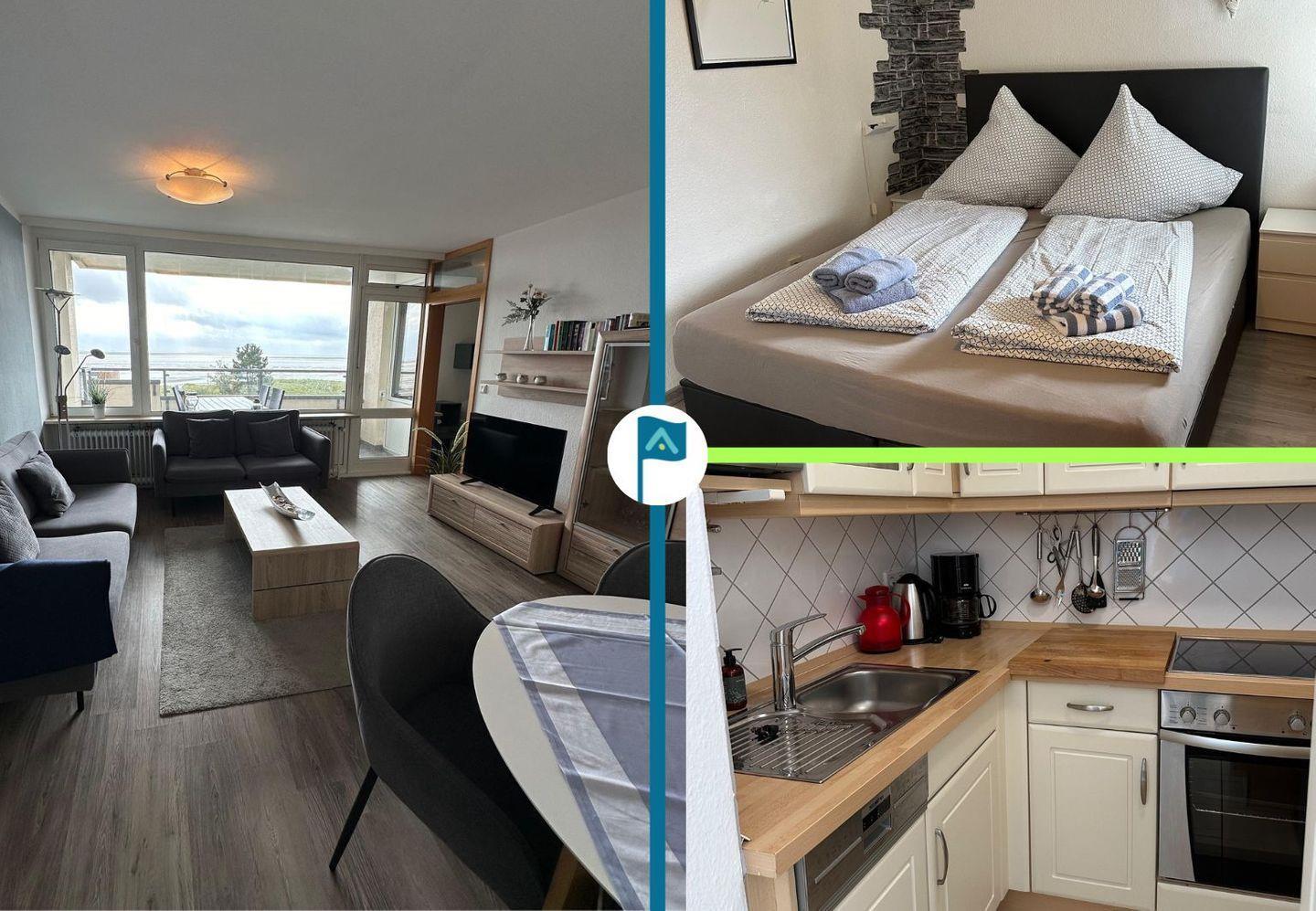 Die großzügige und helle 3-Zimmer-Wohnung "Küstenperle" liegt im 2. Stock (Aufzug, barrierearm) und bietet mit 49qm Platz für bis zu 4 Personen. Sie verfügt über 2 Schlafzimmer (Doppelbett, 2x Einzelbett) und einem großzügigen Wohn-Essbereich mit moderner Küche. Vom Balkon aus haben Sie eine wunderschönen Blick aufs Meer. Ein Strandkorb inkl. Strandlaken am Südstrand (Abschnitt 28, Mai - Sept.), das Schwimmbad (kostenfrei) und die Sauna (gegen Gebühr) im Haus runden das Gesamtpaket ab.