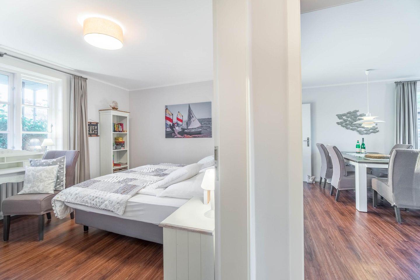 Das Haus in der Gartenstraße unterteilt sich in die drei Wohnungen Rose, Clematis und Hortensie, jede mit eigener Terrasse bzw. eigenem Balkon und gemeinschaftlich genutztem Garten. Im Souterrain befinden sich Waschmaschine und Trockner, die ebenfalls gemeinschaftlich genutzt werden. Das Haus ist nahe der Wyker Innenstadt gelegen und zu der Promenade mit den zahlreichen Restaurants, Cafés und netten Lädchen wie auch zum Wellenbad mit dem Kurmittelhaus ist es nicht weit. Das Friesenmuseum und die Post liegen Ihnen quasi zu Füßen und auch der große Einkaufsmarkt, Bäcker und Schlachter sind fußläufig zu erreichen. Aber auch der Waldspielplatz "Löwenhöhle" ist unweit des Hauses gelegen. Diese zentrale Lage ist ein super Ausgangspunkt für Ihren Urlaub.