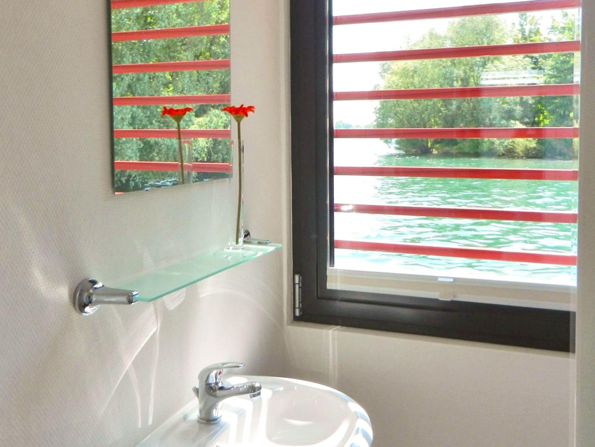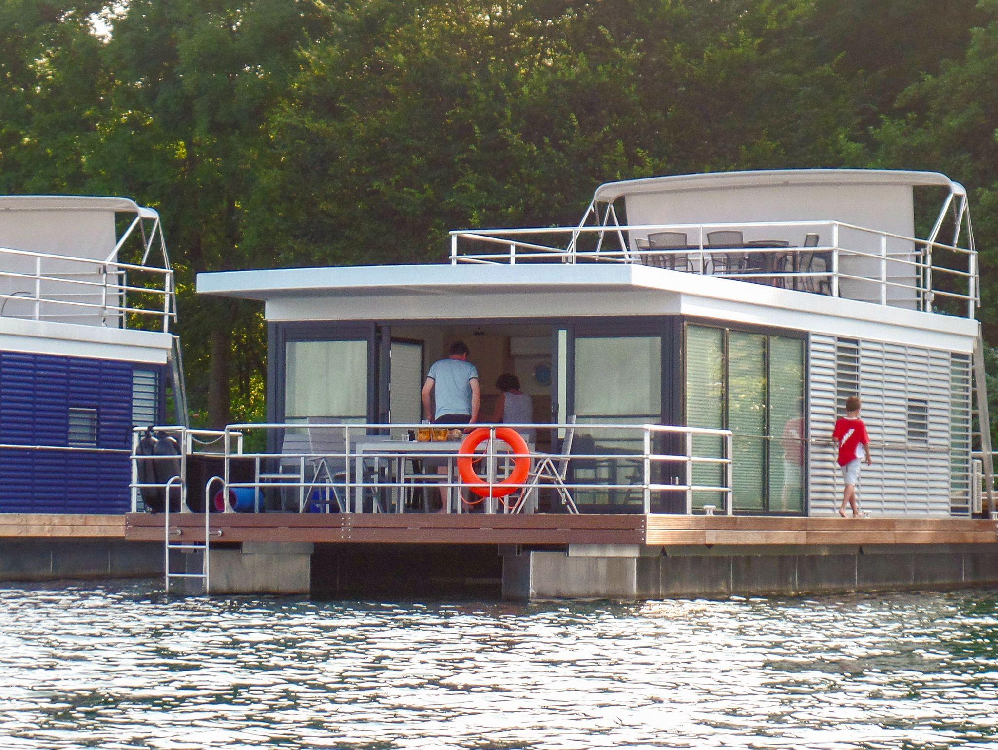 Floating House 1 bietet Dir auf rund 44m² Wohnfläche und mit zwei gemütlichen Schlafzimmern Platz für bis zu 4 Personen. Das festliegende Hausboot liegt in traumhafter Lage direkt auf dem Nordsee bei Xanten ? mitten in der grünen Seenlandschaft und nur wenige Meter vom Ufer entfernt. Auf dem schwimmenden Zuhause genießt Du das besondere Gefühl, über dem Wasser zu wohnen ? mit ganz viel Ruhe, Komfort und einer ordentlichen Portion maritimem Charme. Das Hausboot ist schiffig-modern eingerichtet und verfügt über einen lichtdurchfluteten Wohnbereich mit großen Fensterfronten und Plissees als Sichtschutz. Eine gut ausgestattete Küchenzeile ist direkt integriert ? inklusive Mikrowelle, Ceranfeld, Spülmaschine, Kühlschrank, Kaffeemaschine, Toaster und Wasserkocher. Zwei Schlafzimmer mit Doppelbetten (160x200) sorgen für erholsamen Schlaf, während das Badezimmer mit Dusche sowie das separate WC mit Waschtisch für zusätzlichen Komfort sorgen. Draußen warten gleich zwei Terrassen auf Dich: Am Bug kannst Du morgens Deinen Kaffee direkt am Wasser genießen, auf der großzügigen Dachterrasse (ca. 25m²) laden Sonnenliegen zum Entspannen ein ? mit freiem Blick auf die umliegenden Seen. Für angenehme Temperaturen im Sommer (und wohlige Wärme in der Nebensaison) sorgt eine Klimaanlage mit integrierter Warmluft-Heizung. Dein Fahrzeug parkst Du auf dem nahen Parkplatz (ca. 30m Entfernung), zudem gibt es einen abschließbaren Abstellraum für Fahrräder oder Sportgeräte. Bei den gezeigten Fotos kann es sich um Beispielbilder handeln ? Abweichungen in Ausstattung und Einrichtung sind möglich.
