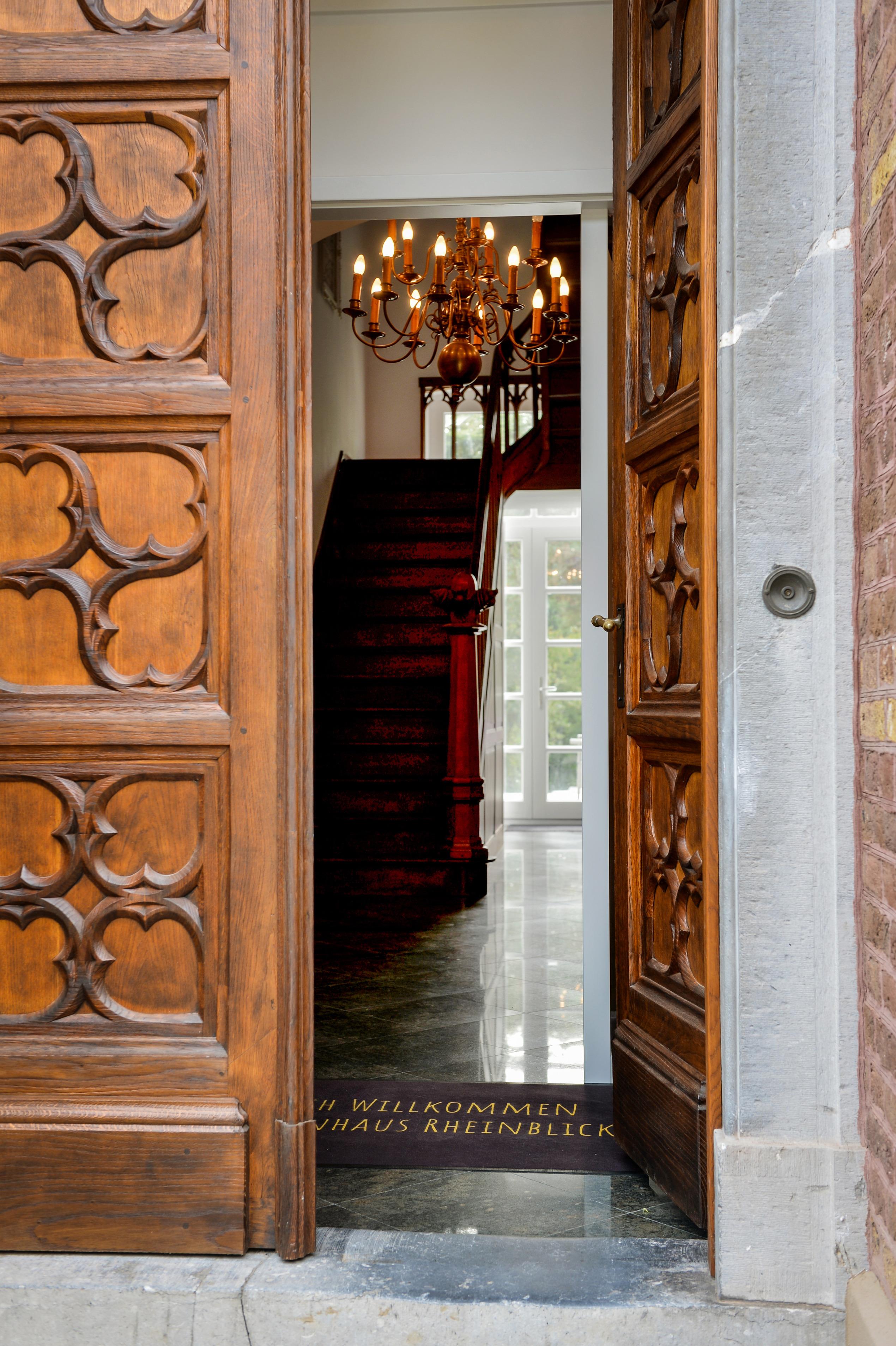 Das unter Denkmalschutz stehende Herrenhaus befindet sich geographisch zwischen Innenstadt und dem Rhein.