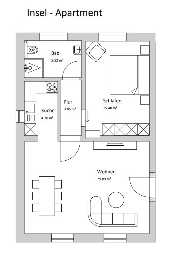 - Wohn-/Schlafzimmer, 29 m², 2 Personen
