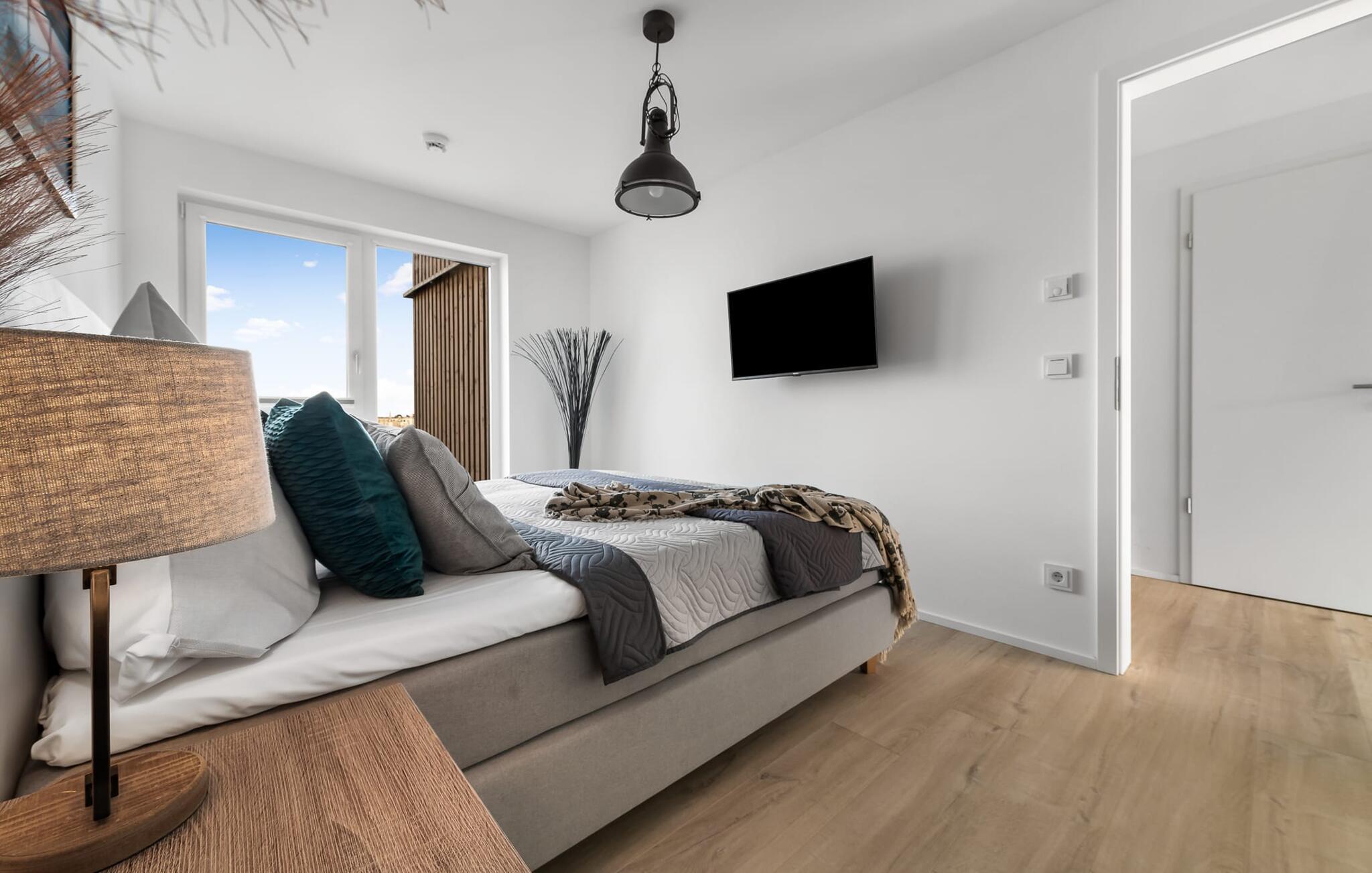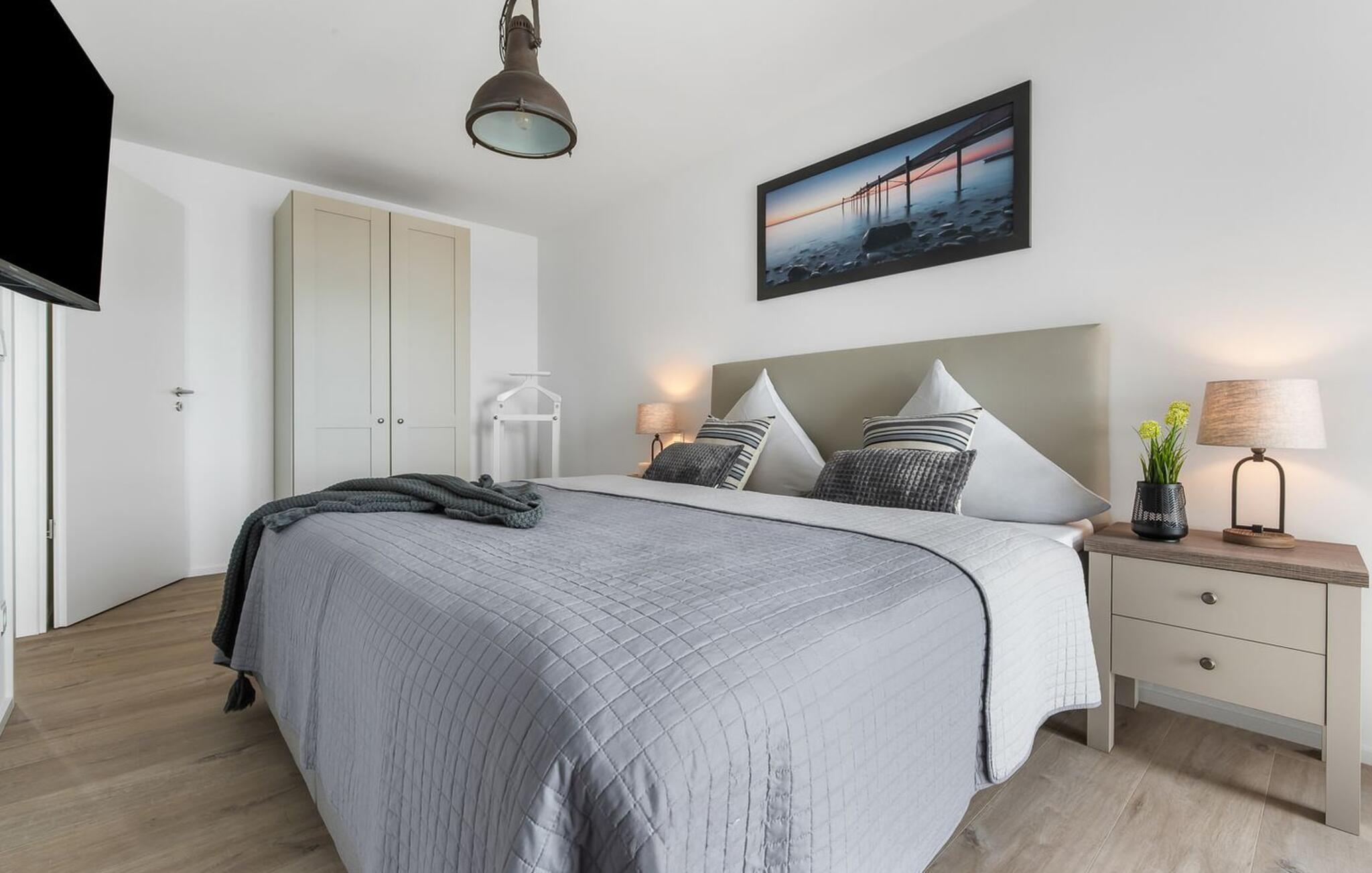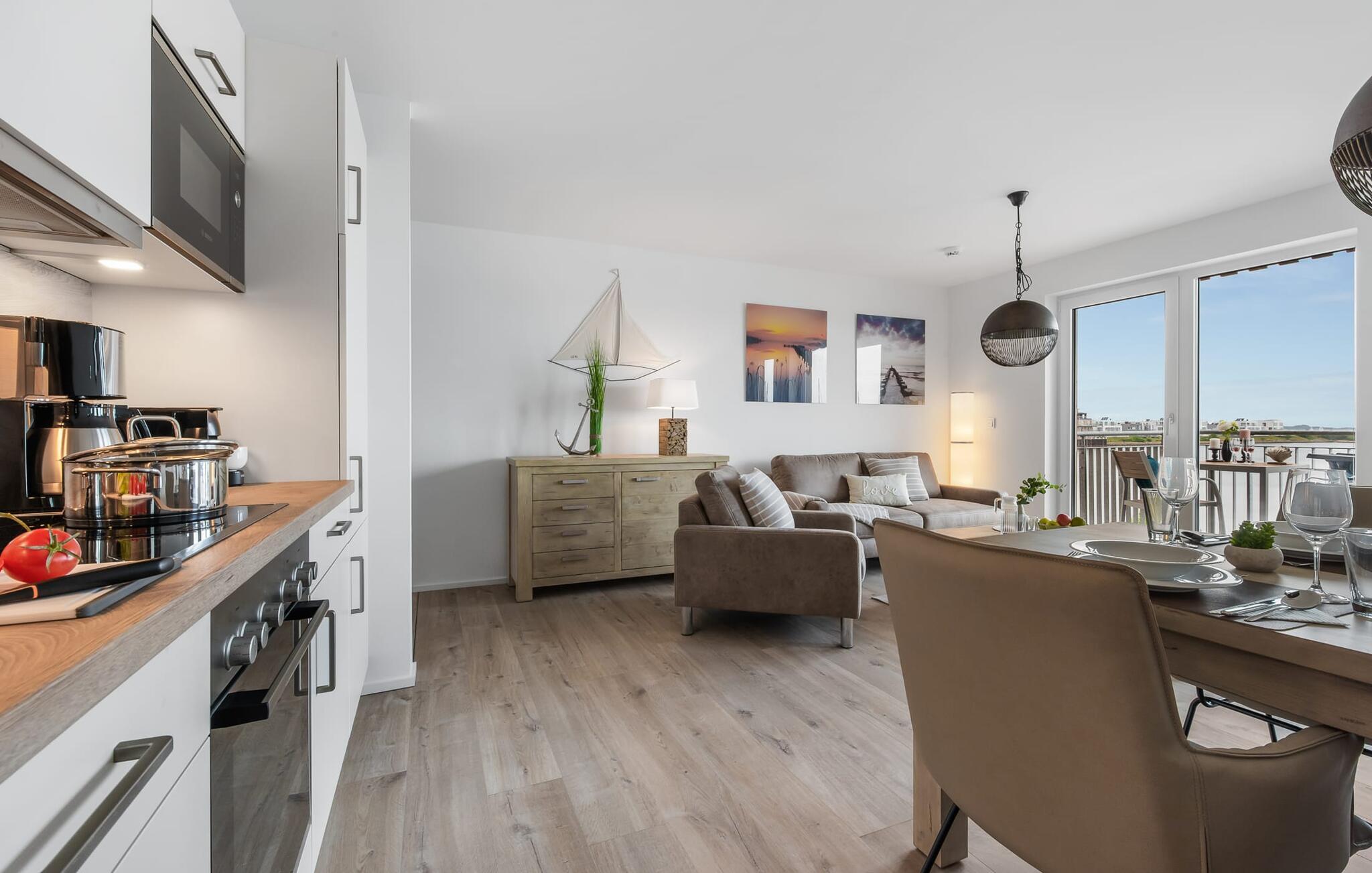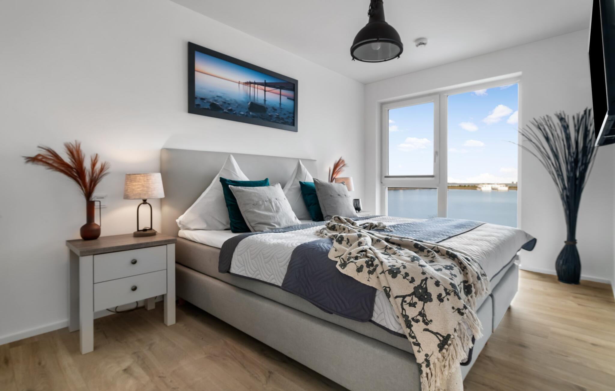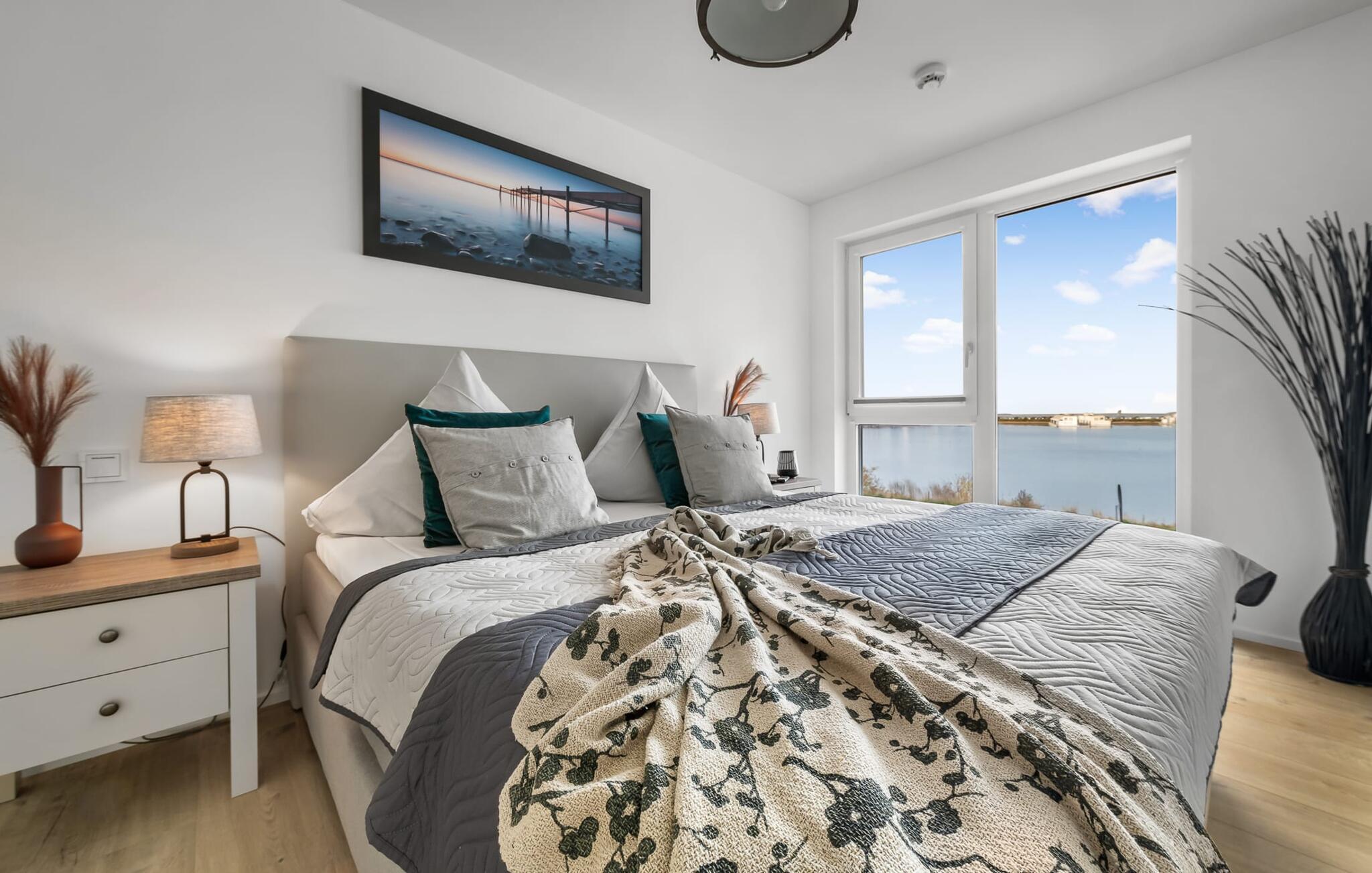 Den højkvalitets og stilfuldt indrettede ferielejlighed til fire personer har en fabelagtig YACHT-HAVNEUDSIGT og scorer med en eksklusiv beliggenhed direkte på havnepromenaden i OstseeResort Olpenitz. Havnepromenaden ligger neden for ferielejligheden og byder på et voksende udvalg af muligheder og korte afstande til indkøb og de bedste muligheder for spadseretur. Den lysfyldte oase med gulv-til-loft vinduesfront og balkon byder også på en utrolig UDSIGT OVER YACHTHAVNEN med en havnebiograf, udsigt til de flydende huse, østersøfjorden Slien med sejlskibe, der passerer forbi og Schimmelünde fyrtårn. Føl jer godt tilpas i opholdsstuen eller på balkonen og se sejlskibene sejle forbi i selskab med den farverige aftensol. Lejlighedens moderne indretning imponerer med sin moderne indretning og den vellykkede rumlige forbindelse af tekøkkenet til den eksklusive opholdsstue, som understreger den behagelige atmosfære i de rolige omgivelser. Det fuldt udstyrede køkken lader intet tilbage at ønske - her kan man fremtrylle lækre retter. Så nyd de færdige lækkerier på altanen eller start en hyggelig grillaften. Ferielejligheden har to soveværelser. Disse er hver udstyret med en dobbeltseng og et fjernsyn. Badeværelset har en moderne bruser i gulvniveau, et vaskeskab med underskab og et stort spejl. P-pladsen tilknyttet ferielejligheden nås komfortabelt og barrierefrit fra lejligheden på 1. sal via elevator. Vores favoritsted: Afslut dagen ved solnedgang i godt selskab med et vinglas i hånden og nyd den friske havbrise... Bemærk venligst: OstseeResort Olpenitz er meget populært, og der bygges fortsat i parken. Ikke desto mindre kan I se frem til en 5-stjernet standard og et førsteklasses ophold. Byggeaktiviteterne kommer ikke til at forstyrre jer på ferien, og derfor gives der ikke yderligere afslag i prisen.