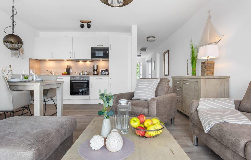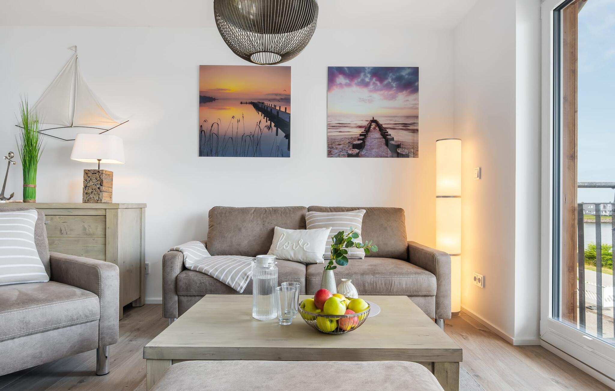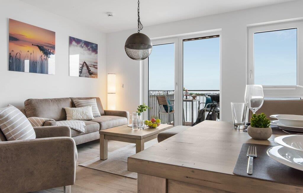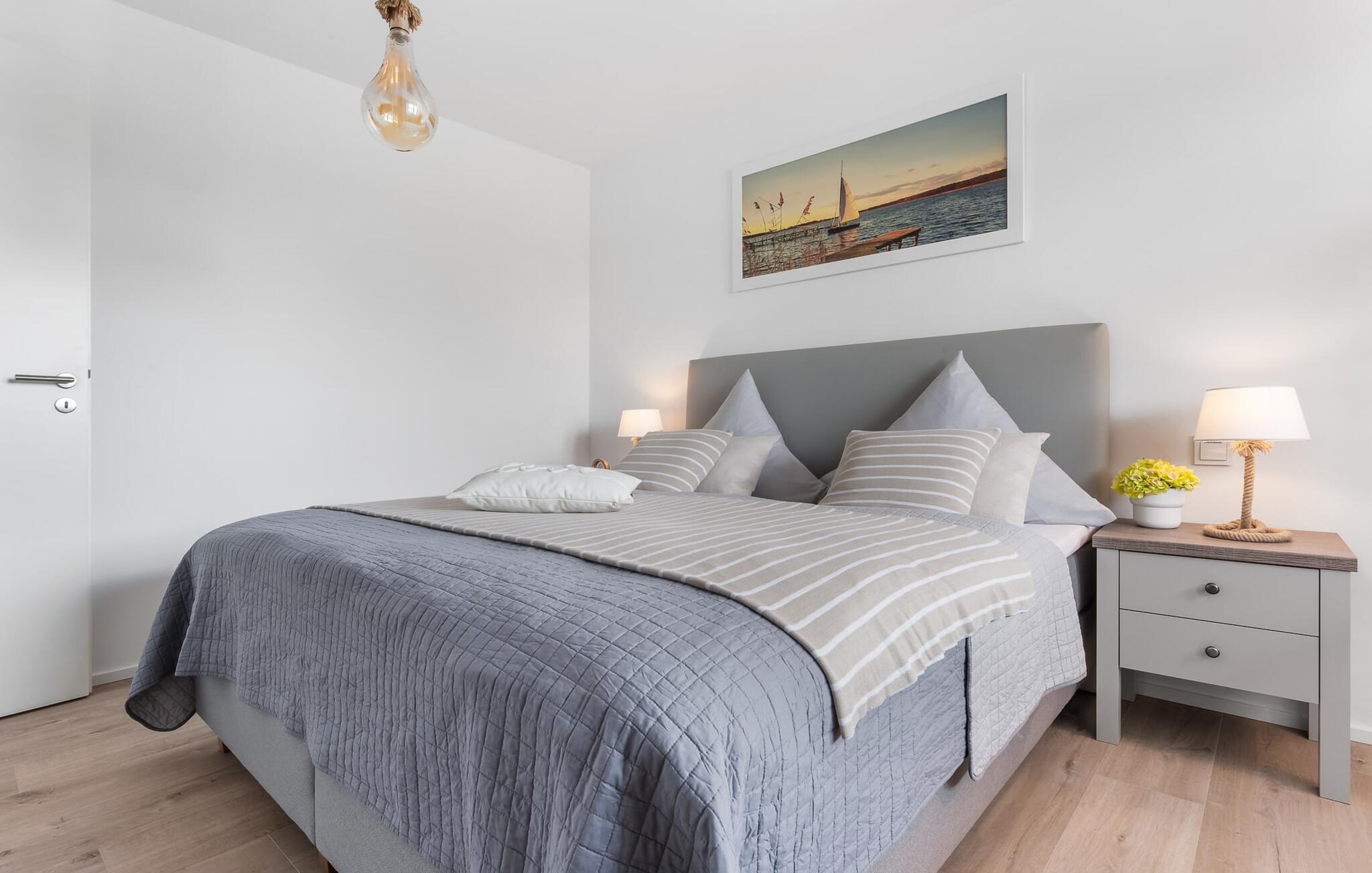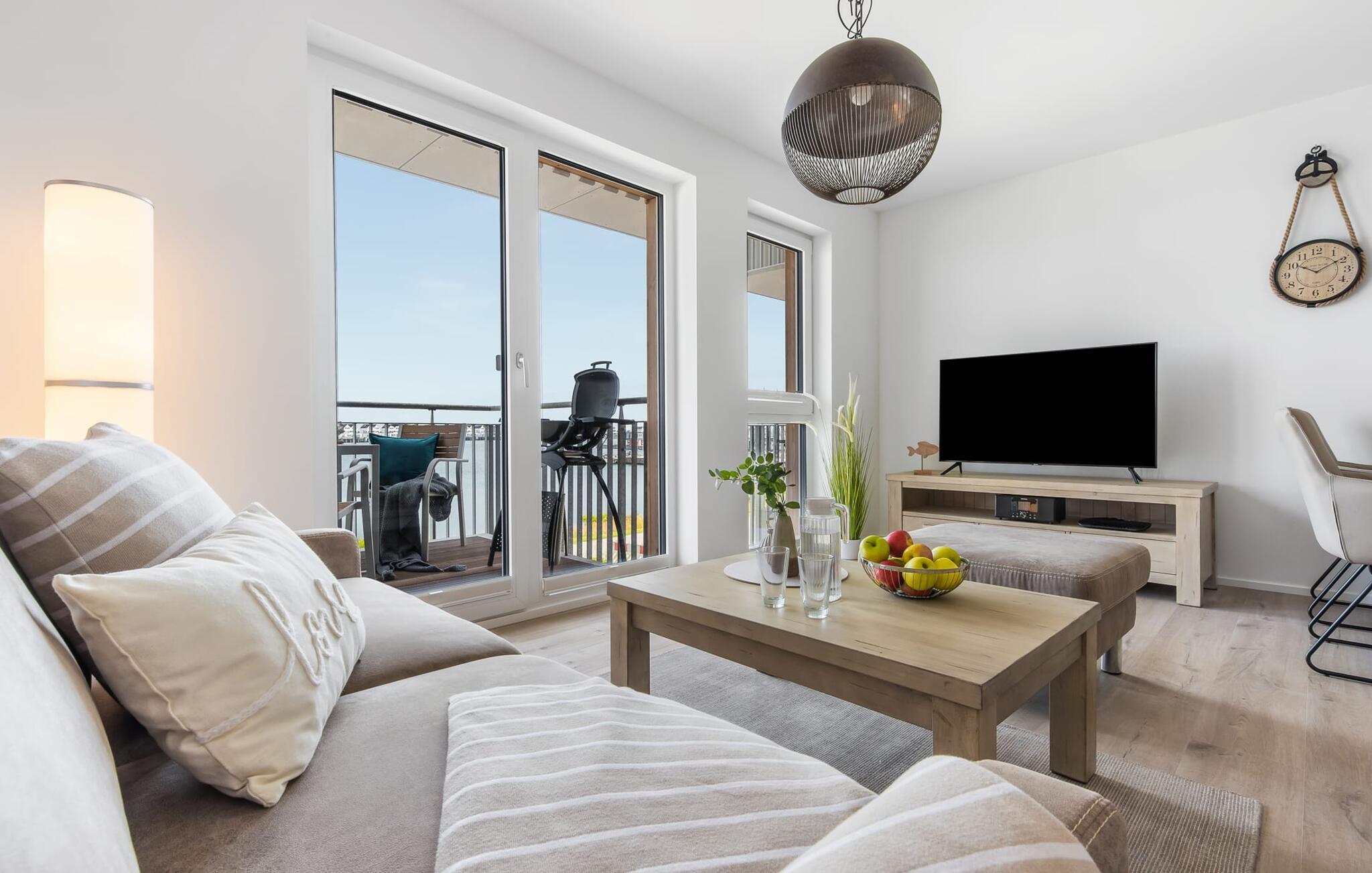 Den højkvalitets og stilfuldt indrettede ferielejlighed til fire personer har en fabelagtig YACHT-HAVNEUDSIGT og scorer med en eksklusiv beliggenhed direkte på havnepromenaden i OstseeResort Olpenitz. Havnepromenaden ligger neden for ferielejligheden og byder på et voksende udvalg af muligheder og korte afstande til indkøb og de bedste muligheder for spadseretur. Den lysfyldte oase med gulv-til-loft vinduesfront og balkon byder også på en utrolig UDSIGT OVER YACHTHAVNEN med en havnebiograf, udsigt til de flydende huse, østersøfjorden Slien med sejlskibe, der passerer forbi og Schimmelünde fyrtårn. Føl jer godt tilpas i opholdsstuen eller på balkonen og se sejlskibene sejle forbi i selskab med den farverige aftensol. Lejlighedens moderne indretning imponerer med sin moderne indretning og den vellykkede rumlige forbindelse af tekøkkenet til den eksklusive opholdsstue, som understreger den behagelige atmosfære i de rolige omgivelser. Det fuldt udstyrede køkken lader intet tilbage at ønske - her kan man fremtrylle lækre retter. Så nyd de færdige lækkerier på altanen eller start en hyggelig grillaften. Ferielejligheden har to soveværelser. Disse er hver udstyret med en dobbeltseng og et fjernsyn. Badeværelset har en moderne bruser i gulvniveau, et vaskeskab med underskab og et stort spejl. P-pladsen tilknyttet ferielejligheden nås komfortabelt og barrierefrit fra lejligheden på 1. sal via elevator. Vores favoritsted: Afslut dagen ved solnedgang i godt selskab med et vinglas i hånden og nyd den friske havbrise... Bemærk venligst: OstseeResort Olpenitz er meget populært, og der bygges fortsat i parken. Ikke desto mindre kan I se frem til en 5-stjernet standard og et førsteklasses ophold. Byggeaktiviteterne kommer ikke til at forstyrre jer på ferien, og derfor gives der ikke yderligere afslag i prisen.