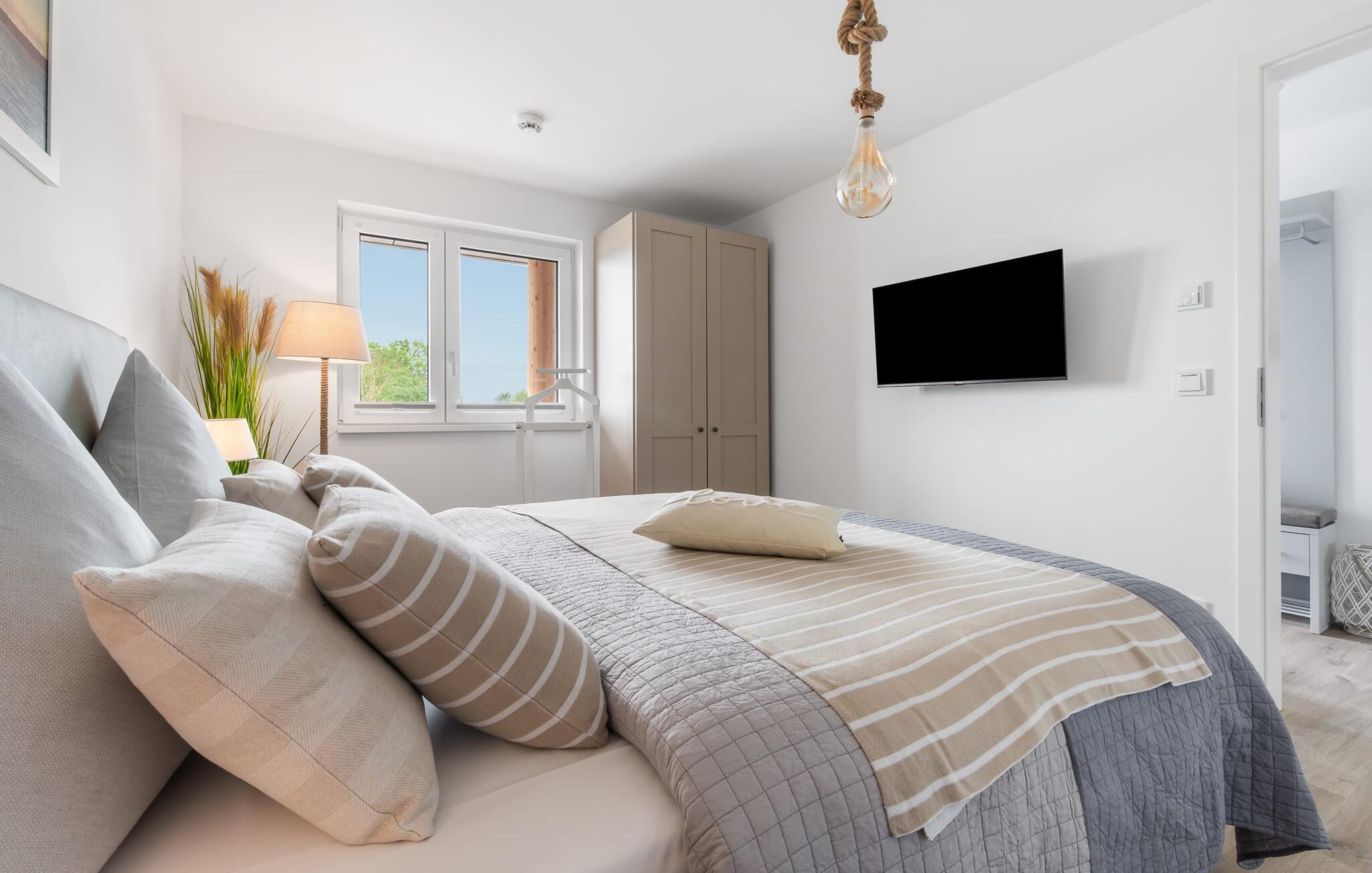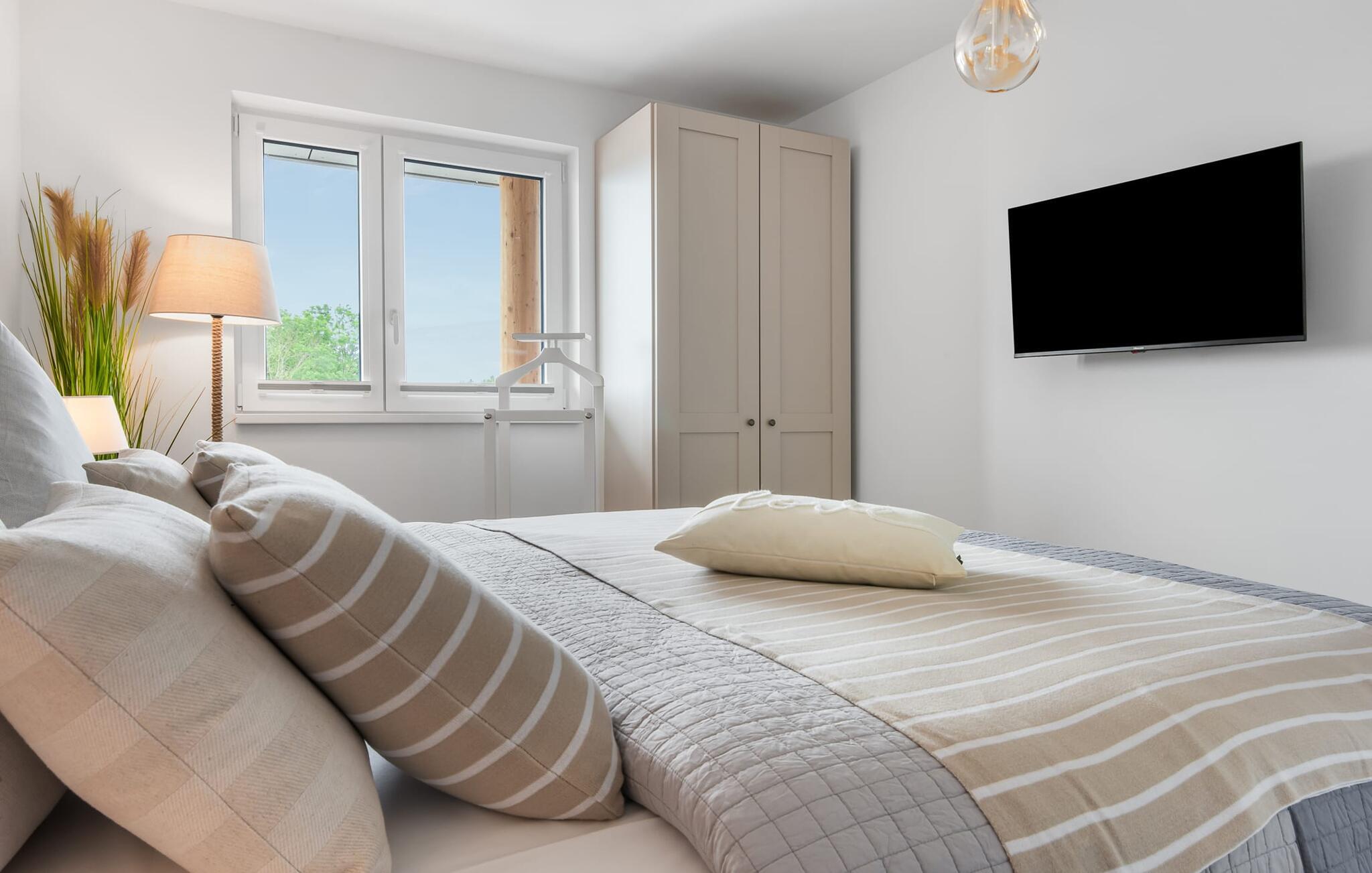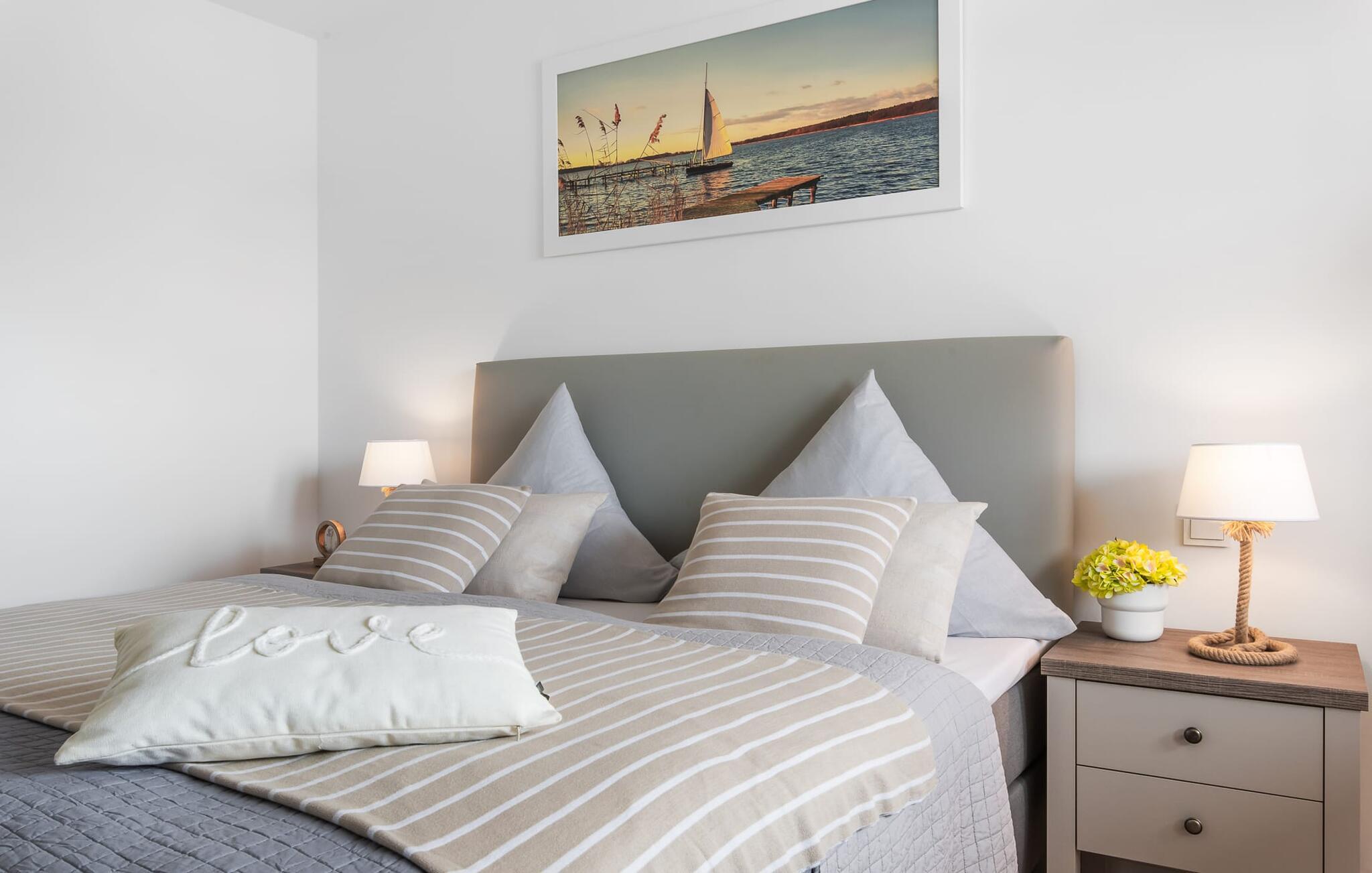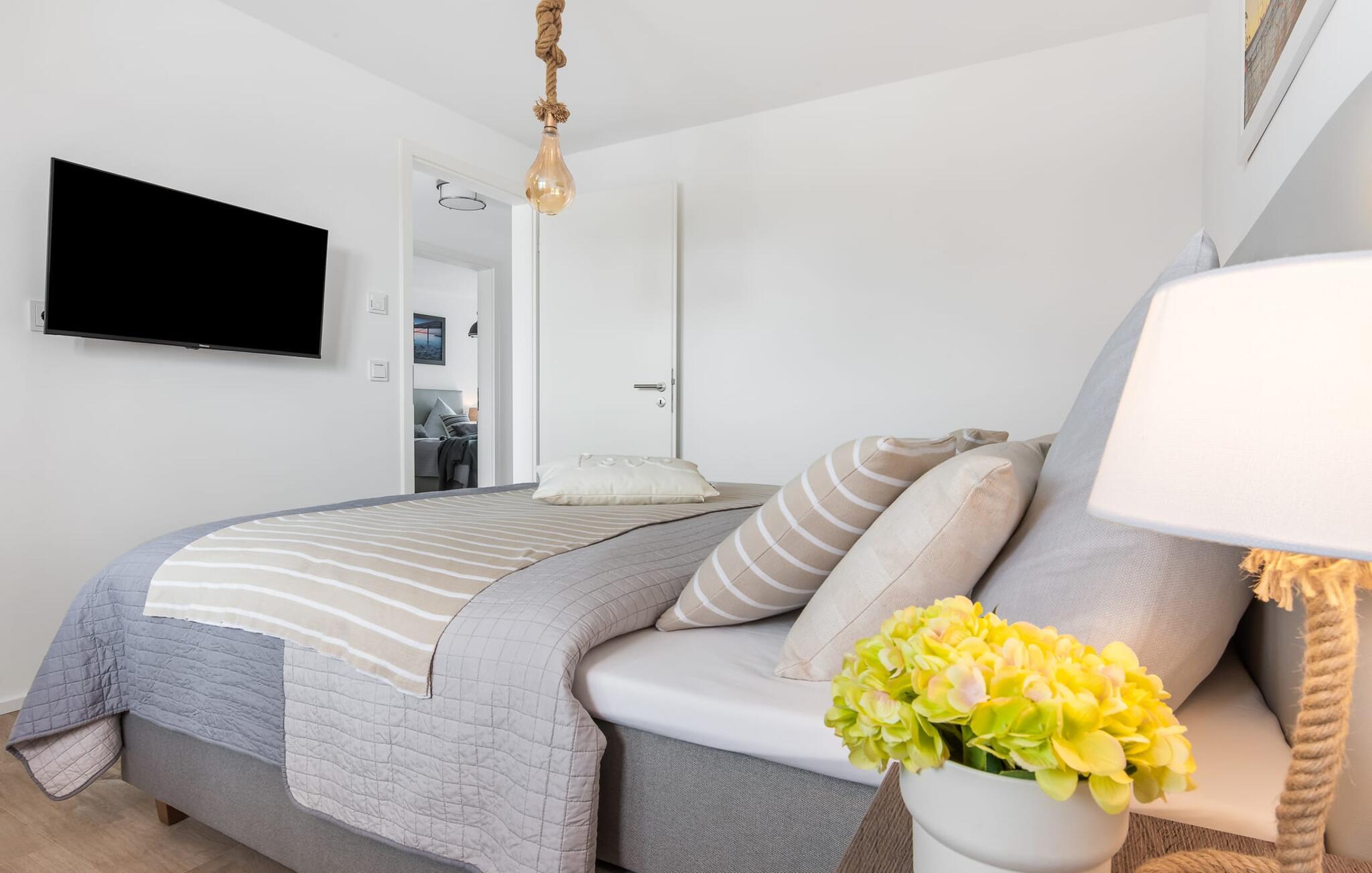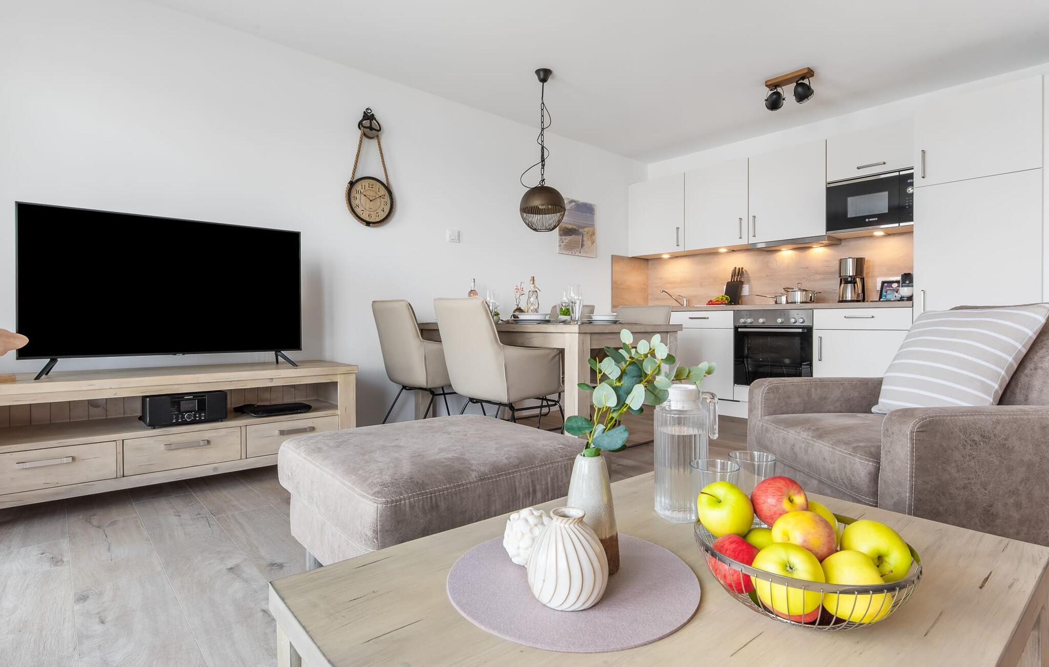 Den højkvalitets og stilfuldt indrettede ferielejlighed til fire personer har en fabelagtig YACHT-HAVNEUDSIGT og scorer med en eksklusiv beliggenhed direkte på havnepromenaden i OstseeResort Olpenitz. Havnepromenaden ligger neden for ferielejligheden og byder på et voksende udvalg af muligheder og korte afstande til indkøb og de bedste muligheder for spadseretur. Den lysfyldte oase med gulv-til-loft vinduesfront og balkon byder også på en utrolig UDSIGT OVER YACHTHAVNEN med en havnebiograf, udsigt til de flydende huse, østersøfjorden Slien med sejlskibe, der passerer forbi og Schimmelünde fyrtårn. Føl jer godt tilpas i opholdsstuen eller på balkonen og se sejlskibene sejle forbi i selskab med den farverige aftensol. Lejlighedens moderne indretning imponerer med sin moderne indretning og den vellykkede rumlige forbindelse af tekøkkenet til den eksklusive opholdsstue, som understreger den behagelige atmosfære i de rolige omgivelser. Det fuldt udstyrede køkken lader intet tilbage at ønske - her kan man fremtrylle lækre retter. Så nyd de færdige lækkerier på altanen eller start en hyggelig grillaften. Ferielejligheden har to soveværelser. Disse er hver udstyret med en dobbeltseng og et fjernsyn. Badeværelset har en moderne bruser i gulvniveau, et vaskeskab med underskab og et stort spejl. P-pladsen tilknyttet ferielejligheden nås komfortabelt og barrierefrit fra lejligheden på 1. sal via elevator. Vores favoritsted: Afslut dagen ved solnedgang i godt selskab med et vinglas i hånden og nyd den friske havbrise... Bemærk venligst: OstseeResort Olpenitz er meget populært, og der bygges fortsat i parken. Ikke desto mindre kan I se frem til en 5-stjernet standard og et førsteklasses ophold. Byggeaktiviteterne kommer ikke til at forstyrre jer på ferien, og derfor gives der ikke yderligere afslag i prisen.