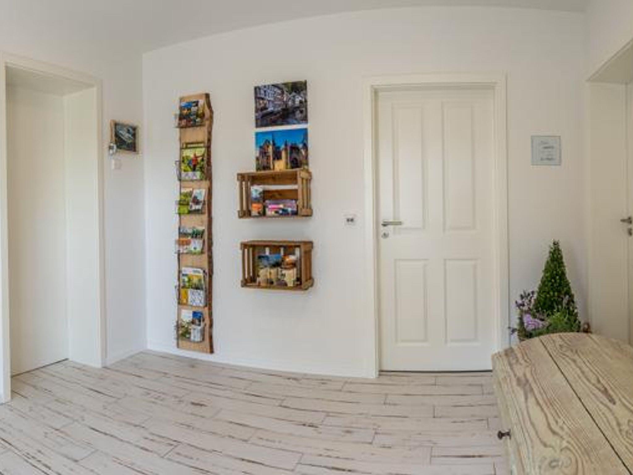 Bei Ihrer Ankunft erwarten Sie frisch bezogene Betten, frische Handtücher sowie ein kleines Naturset (Seife, Spülmittel, Müllbeutel, Spültuch und Schwamm) für Küche und Bad sowie weitere kleine Dinge für einen guten Start in den Urlaub. Im einladenden Empfangsraum stellen wir Ihnen vielfältige Broschüren für Ihre Ausflugsziele zur Verfügung und auch die Kleinsten finden hier ein paar Dinge zum Spielen. Die Ferienwohnung verfügt über kostenlose Stellplätze vorm Haus und bei Bedarf bieten wir Ihnen die Möglichkeit, Ihre Fahrräder in der Garage sicher für die Nacht unterzustellen.
