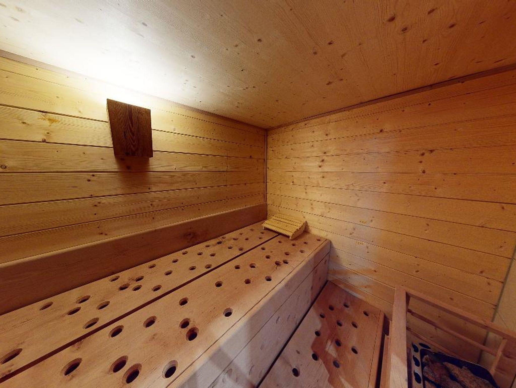 • Wellnessbereich eine Infrarotkabine, Sauna, Doppelwaschbecken aus Naturstein, offener Dusche