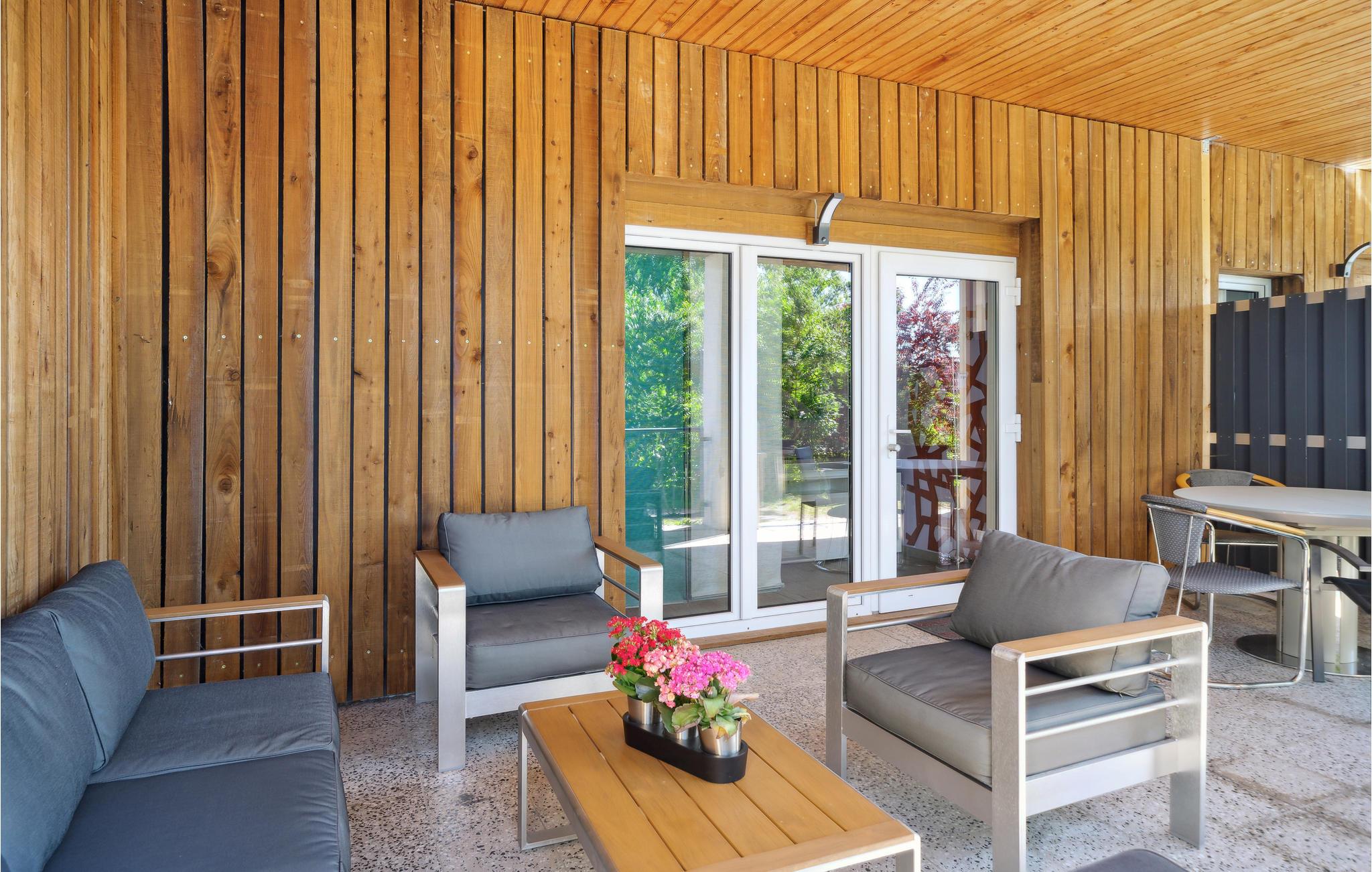 Glæd jer til jeres ferie i denne skønne ferielejlighed, som er smuk i naturen, fuldt udstyret og tilgængelig for kørestolsbrugere. Find jer godt til rette her og nyd stemningen med store billeder og smagfulde møbler. Den ledige plads lægger op til at slappe af sammen eller spille kort sammen på terrassen. Den murede grill, som er fælles, er det perfekte udgangspunkt for at begynde jeres grillaften, mens I nyder udsigten over søen.