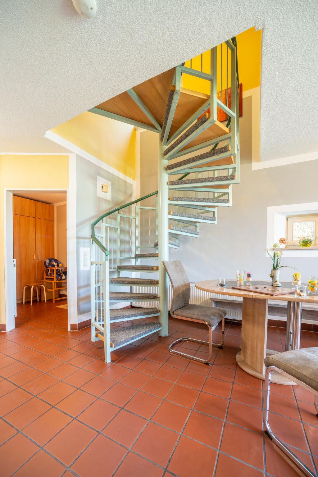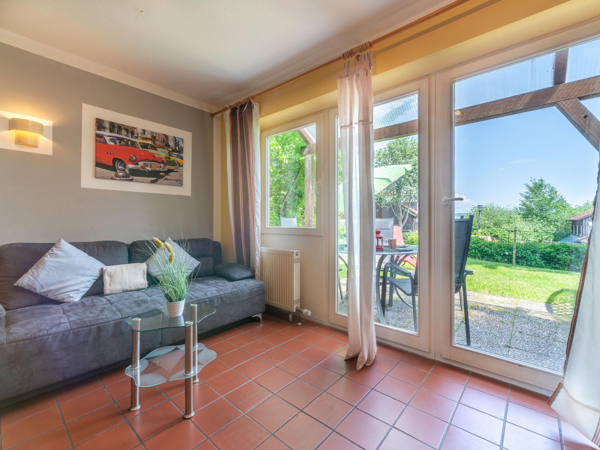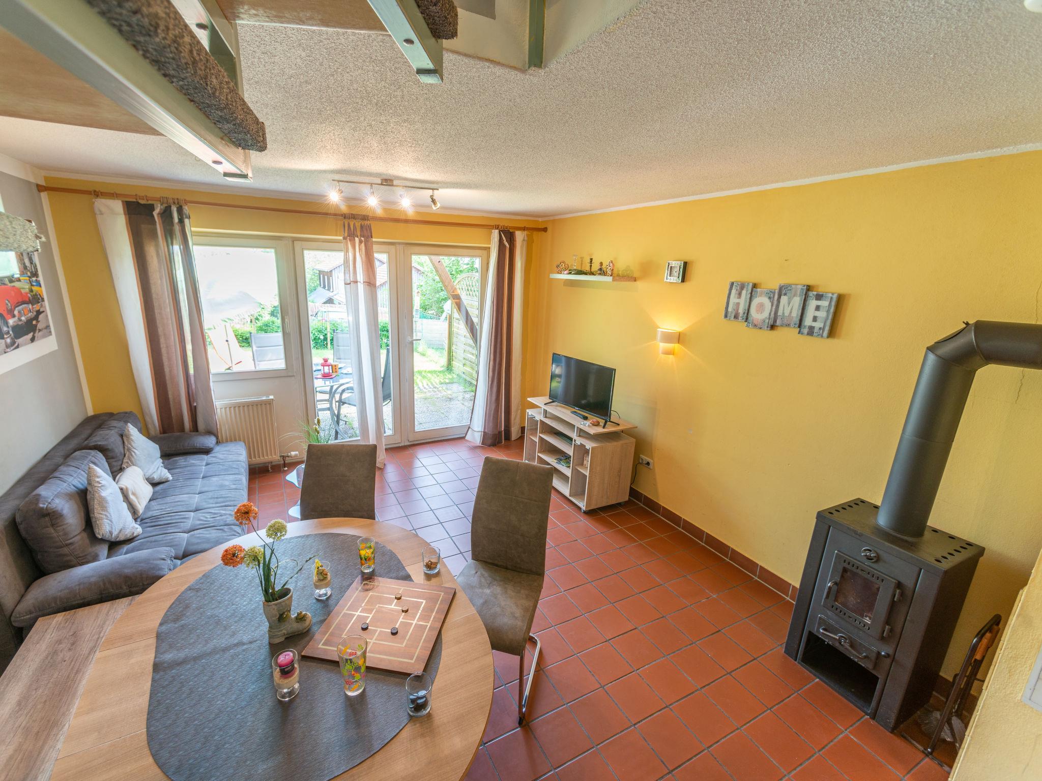 3-room semi-detached house 73 m2 on 2 levels. Object suitable for 4 adults + 2 children. Living/sleeping room with 2 sleeping facilities, Scandinavian wood stove, dining table and satellite TV. Open kitchen (4 hot plates, oven, microwave, electric coffee machine). Shower/WC. Upper floor: (spiral staircase), 1 room with sloping ceilings with 1 double bed and separate WC. 1 room with 2 beds and separate WC. Gas heating. Terrace. Terrace furniture, deck chairs (2). Panoramic view. Facilities: Internet (WiFi, free). Parking (1 car). Please note: non-smokers only. Maximum 2 pets/ dogs allowed. Smoke alarm, fire extinguisher. Bookings accepted for holiday purposes only.
