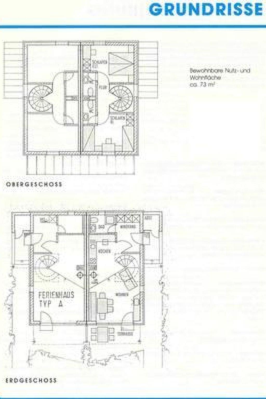 Each holiday home has 2 separate bedrooms with their own WC. There is a further WC with shower on the ground floor. The comfortable living area is equipped with a Full HD flat LCD 37" and has direct access to the furnished terrace with sunbathing lawn. We also offer WLAN and DSL connection. The couch can be converted into a bed for 2 additional guests. The well-equipped kitchen allows for optimal self-catering. Experience romantic evenings by a cosy open fire (unfortunately we had to remove the stoves due to new legislation). The partially fenced garden is ideal for guests with pets. The houses also have a baby high chair and baby cot (request before arrival).