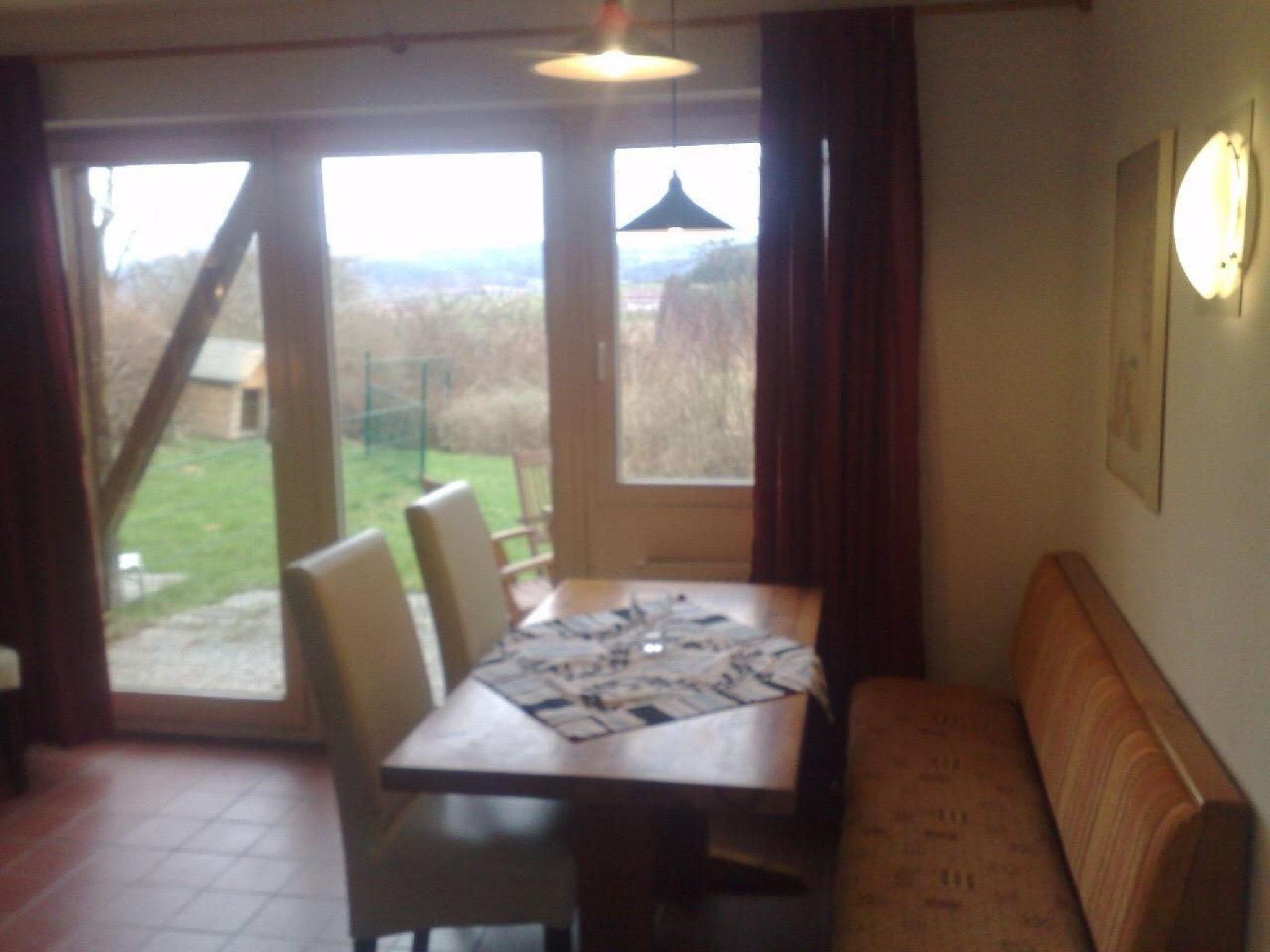 Holiday home with two separate bedrooms with wood-burning stove and satellite TV in the living room, terrace and garden. Kitchen with microwave and kettle, some with dishwasher. Shower/WC, 2 separate bedrooms, each with its own WC. Especially for children: free high chair, cot and stair gate can be added For our pets: special holiday homes with garden fencing at no extra charge as well as plenty of meadows and walking paths, car park, from Wednesday to Saturday there is a daily bakery bus. There is a bakery, a butcher's shop with a country inn, a hotel restaurant and a small pizzeria with delivery service about 5 minutes' walk away. Directly from the holiday home is the cycle path and the hiking trails with free use of bus and train in the regional area, in summer with free use of the hiking buses to the Czech RepublicShort descriptionOther : Non-smoking houseShort description 1Number of kitchens : 1Other rooms : Kitchen-living roomLiving room 1Other living room facilities : Kitchen-living room with dining area, wood-burning stove, TV corner and sofa bed or sofa corner, terrace access. Kitchen-cum-living-room with dining area, TV corner and sofa bed or couch corner, terrace access and garden area accessible from the kitchen-cum-living-roomBedroom 1Other bedroom furnishings : two separate bedrooms, one with double bed, one with two single beds, cot or extra bed can be booked free of charge. Additional bed bookableBedroom 2Other bedroom facilities : each with its own WCKitchen 1Other kitchen facilities : kettle available, vacuum cleanerSurroundingsLeisure facilities : boat hire, bike hire, ski, snowboard or sledge hireSports facilities in the surrounding area : Fishing, Mountaineering, Football pitch, Golf course, Canoeing, Climbing, Mountain biking, Paragliding, Cycling, Horse riding, Tobogganing, Cross-country skiing, Alpine skiing, Squash, TennisSurroundings 1Excursions : Glasdorf Weinfurtner and Joska, Wildgarten and Flederwisch, summer toboggan runs and Waldwifpelweg with nature trail, AQACUR bathing and wellness world, Passau boat trips, Hoher Bogen summer toboggan run with grass kart, bullkart and summer toboggan runs in St. Englmar, swimming ponds and spa parks, Loifling "Churpfalzpark" amusement park, Pullman City Wild West town, Lohberg Bavarian Forest Animal Park and Straubing Zoo, a variety of climbing gardens - also suitable for ropes, the Glass Barn and Aegarian Vault with Cafe Isis, hiking railway and nostalgia house, fairytale and ghost castle and much more....Other sports and leisure facilities : Segway riding, inline skating tracks, cycle tour networkGarden and outdoor facilitiesRecreational facilities at the property : Table tennisGarden equipment : Garden furniture available, barbecue