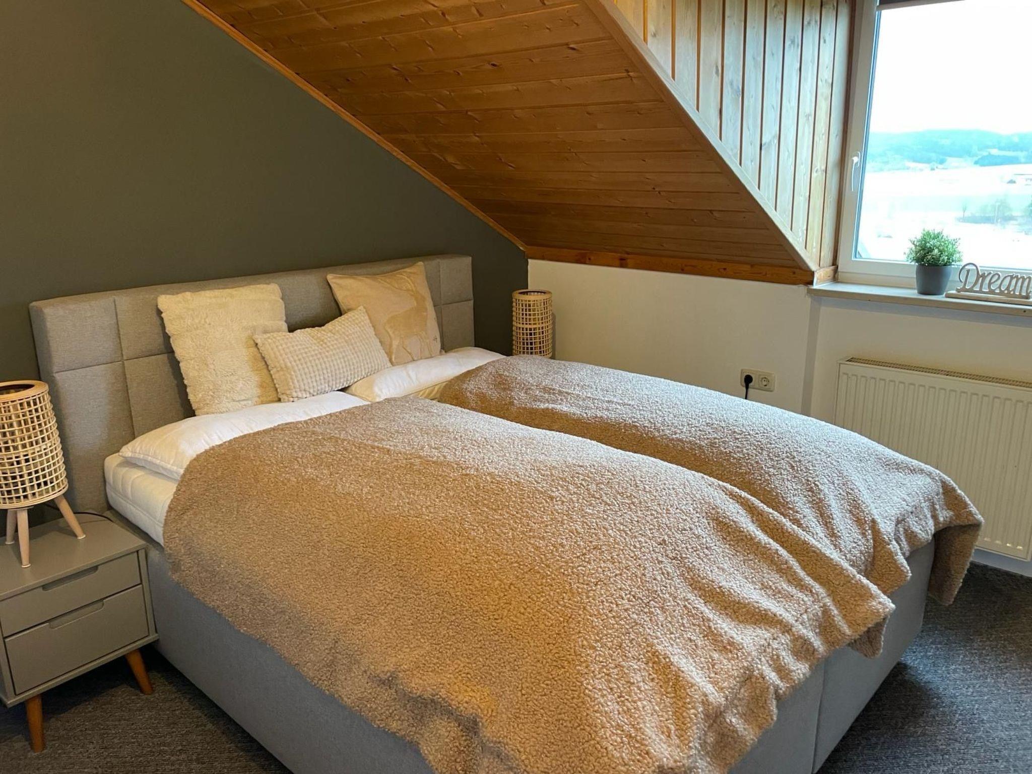 Fully refurbished holiday bungalow with wood-burning stove and satellite TV in the living room, terrace, garden and barbecue, new kitchen with dishwasher, microwave and kettle, shower/WC, 2 separate bedrooms, each with its own WC and blinds to darken the room. Especially for children: free high chair, cot and stair gate can be booked, free car park, free Wi-Fi and use of bus and train in the region.