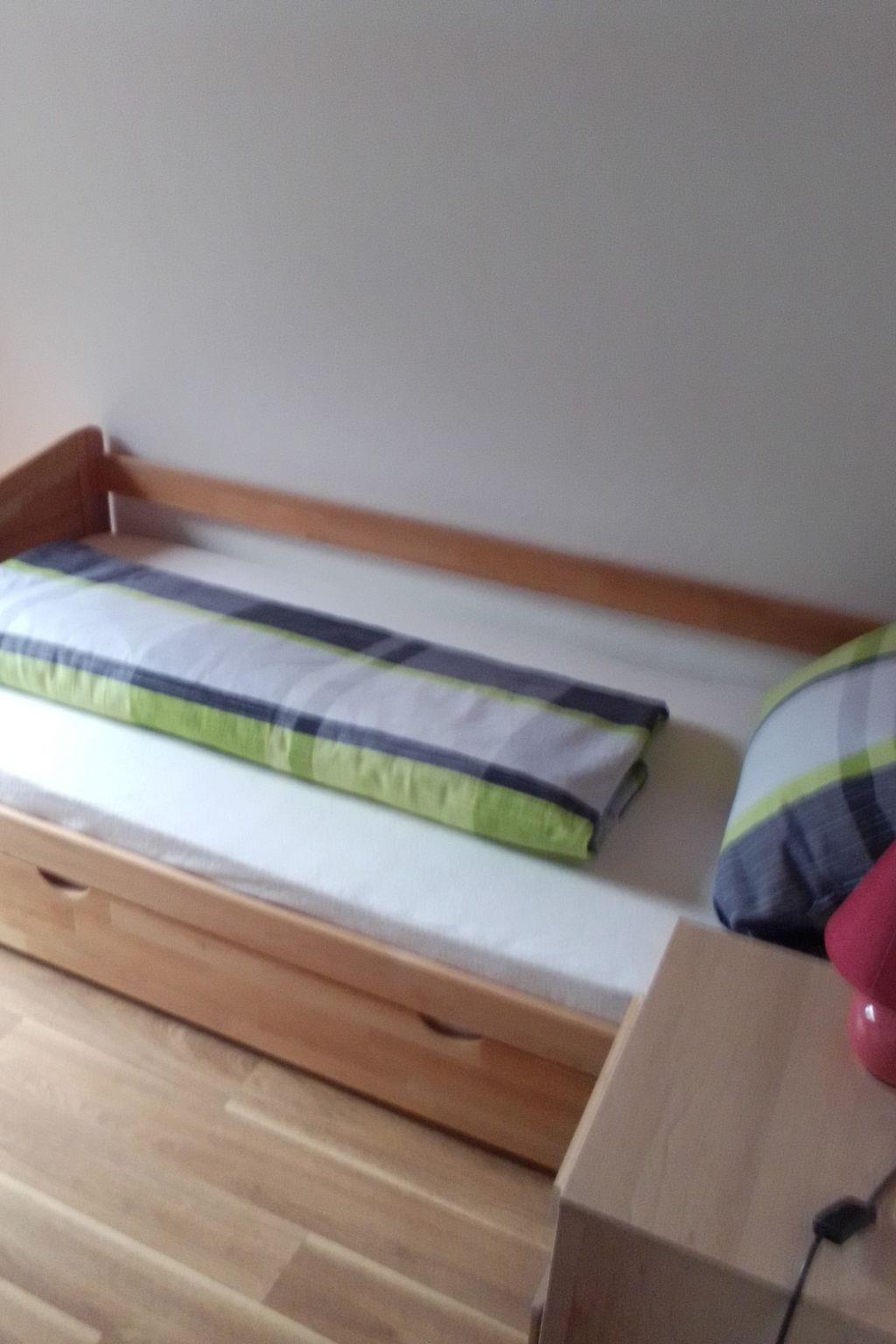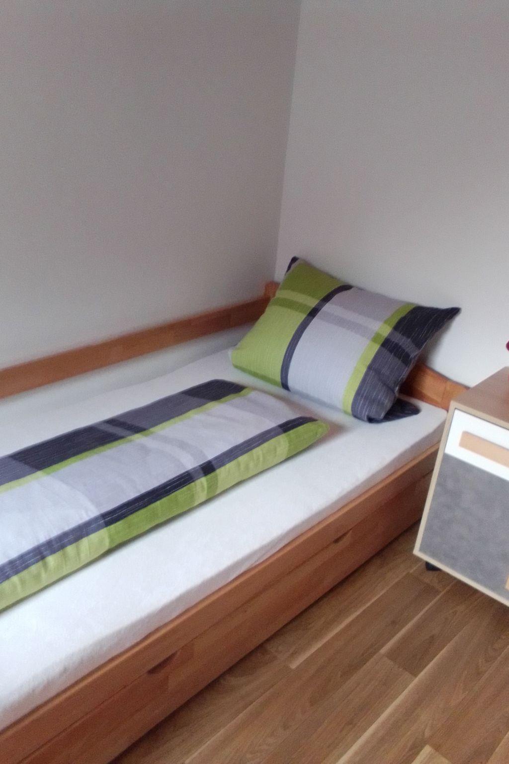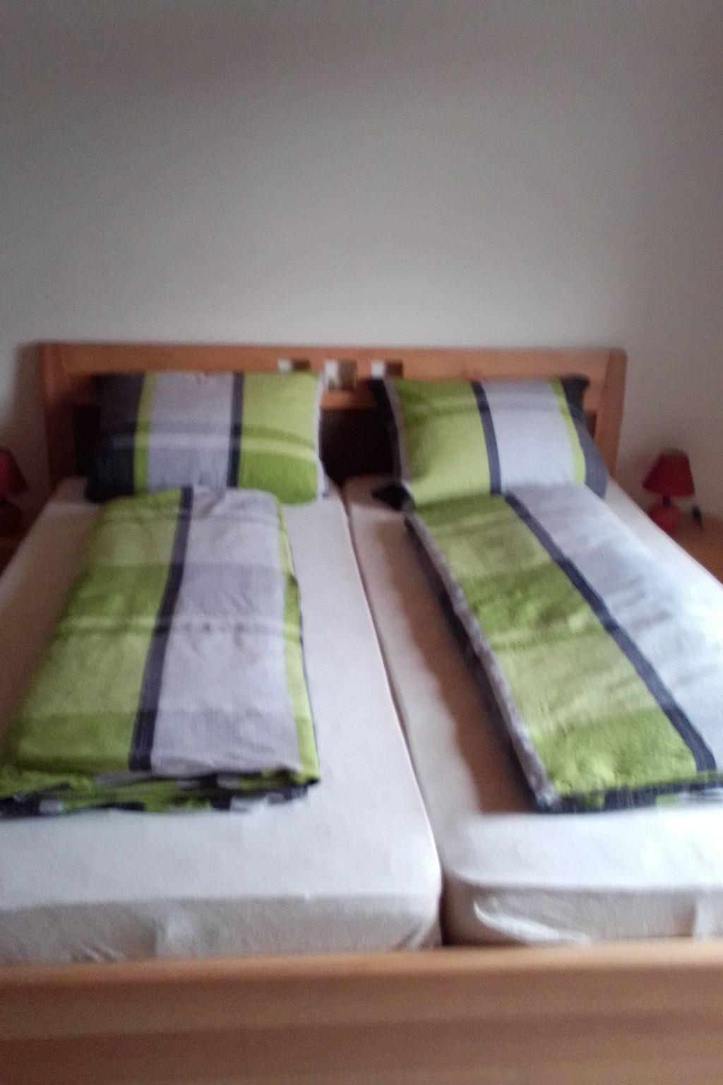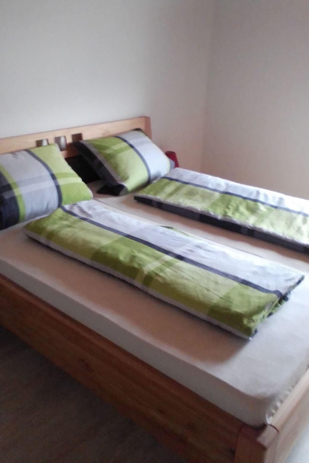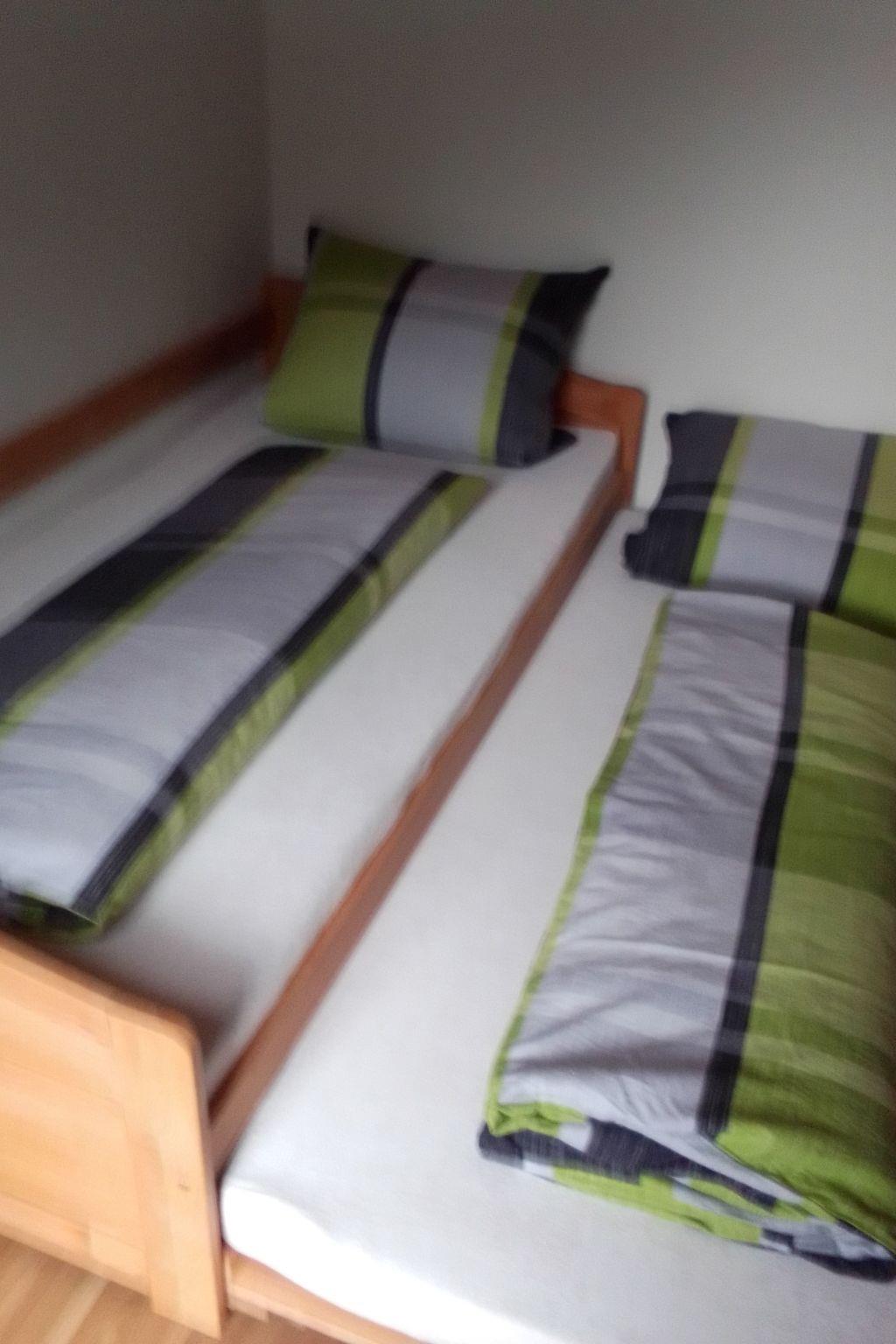 Enjoy a break from everyday life, just the two of you or with the family.our holiday flat is 70 sqm in size with 2 bedrooms, kitchen, living room, bathroom with toilet and walk-in shower.the flat was completely renovated in 2022.the kitchen is equipped with a modern microwave and a fridge with freezer.a mobile hotplate is also available, as well as a coffee machine, kettle and toaster.cooking and eating utensils are sufficiently available.in the living room is the dining area with a large wooden table. The bed in the children's room is a single bed, where the second sleeping possibility can be pulled out quickly if required.The third sleeping possibility for a child would then be a folding mattress or a cot in the parents' bedroom.A balcony and a garden directly in front of the flat door also belong to the flat. In the garden you can barbecue, play with the children or simply relax, as there is no road to pass.