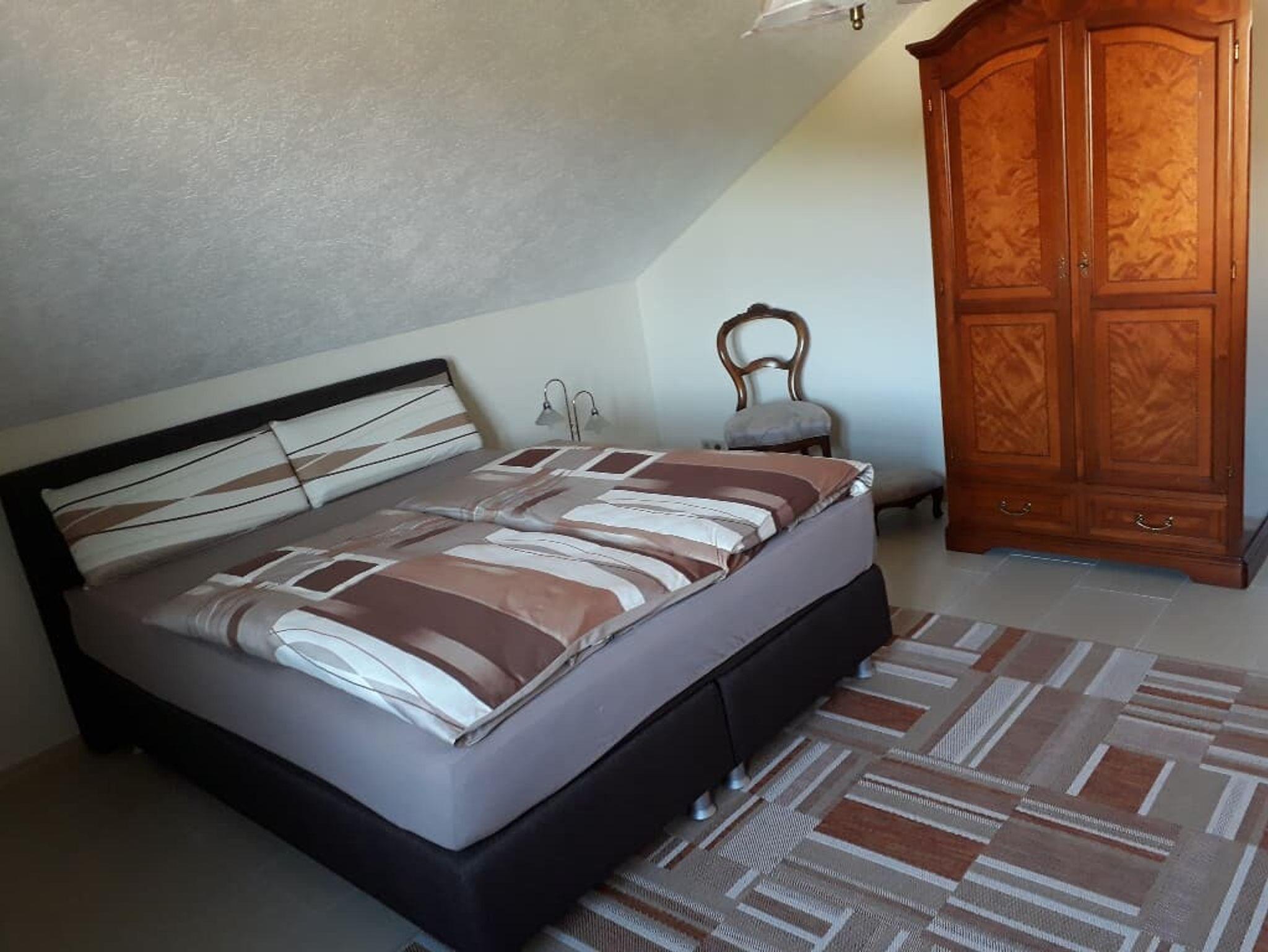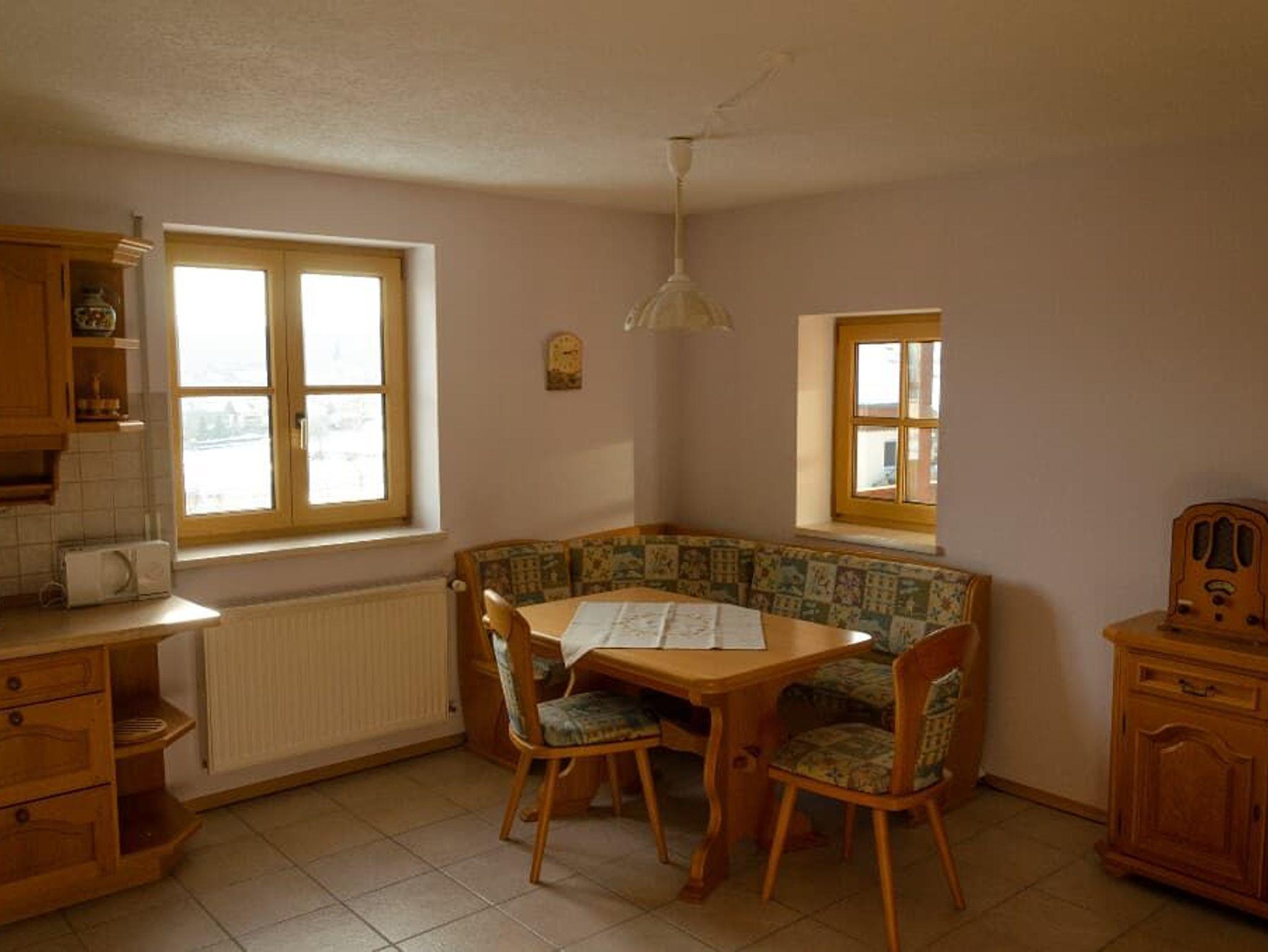Wir freuen uns, Sie willkommen zu heißen. Unsere Ferienwohnung hat eine Wohnfläche von 112 qm und wurde für Sie sehr großzügig ausgestattet. In der Küche befinden sich Elektroherd mit Backofen, Spülmaschine, Mikrowelle, Kühlschrank und alle wichtigen Elektrokleingeräte. Zur schönen Eckbankgruppe steht auch ein Kinderstuhl bereit. Zusätzlich ist ein Vorratsraum mit Gefrierschrank vorhanden. Das stilvoll eingerichtete Wohnzimmer beinhaltet neben Ledergarnitur auch einen großen TV-Flatscreen und eine Digitalstereoanlage. Der angrenzende Balkon lädt Sie zum gemütlichen Sitzen und Entspannen ein. Dieser ist überdacht und windgeschützt. Die Schlafzimmer sind mit Doppelbetten und großen Kleiderschränken ausgestattet, wahlweise auch mit TV. Ein Kinderbett können wir dazustellen. Den Tag beginnen Sie im Bad. Es verfügt über Dusche, Badewanne, Waschbecken und WC, sowie Fön und Handtuchwärmer. WLAN steht für Sie kostenfrei bereit. Am Grillplatz und am Teich können Sie den Tag ausklingen lassen.