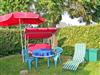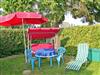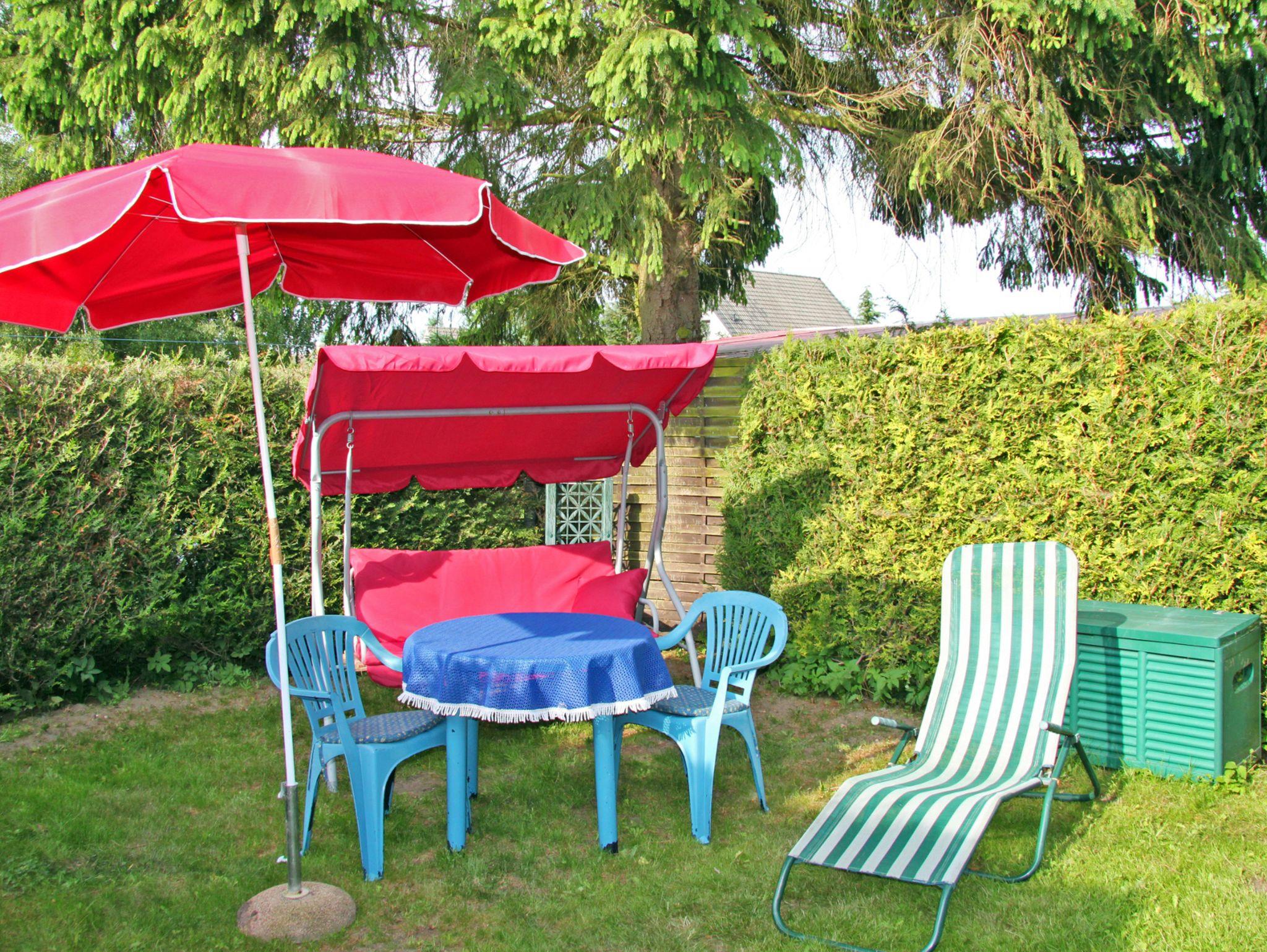Vor der Wohnung gibt es einen Parkplatz für das Auto und im Garten einen eigenen durch Sichtschutzhecken abgetrennten Bereich mit Gartenmöbeln.