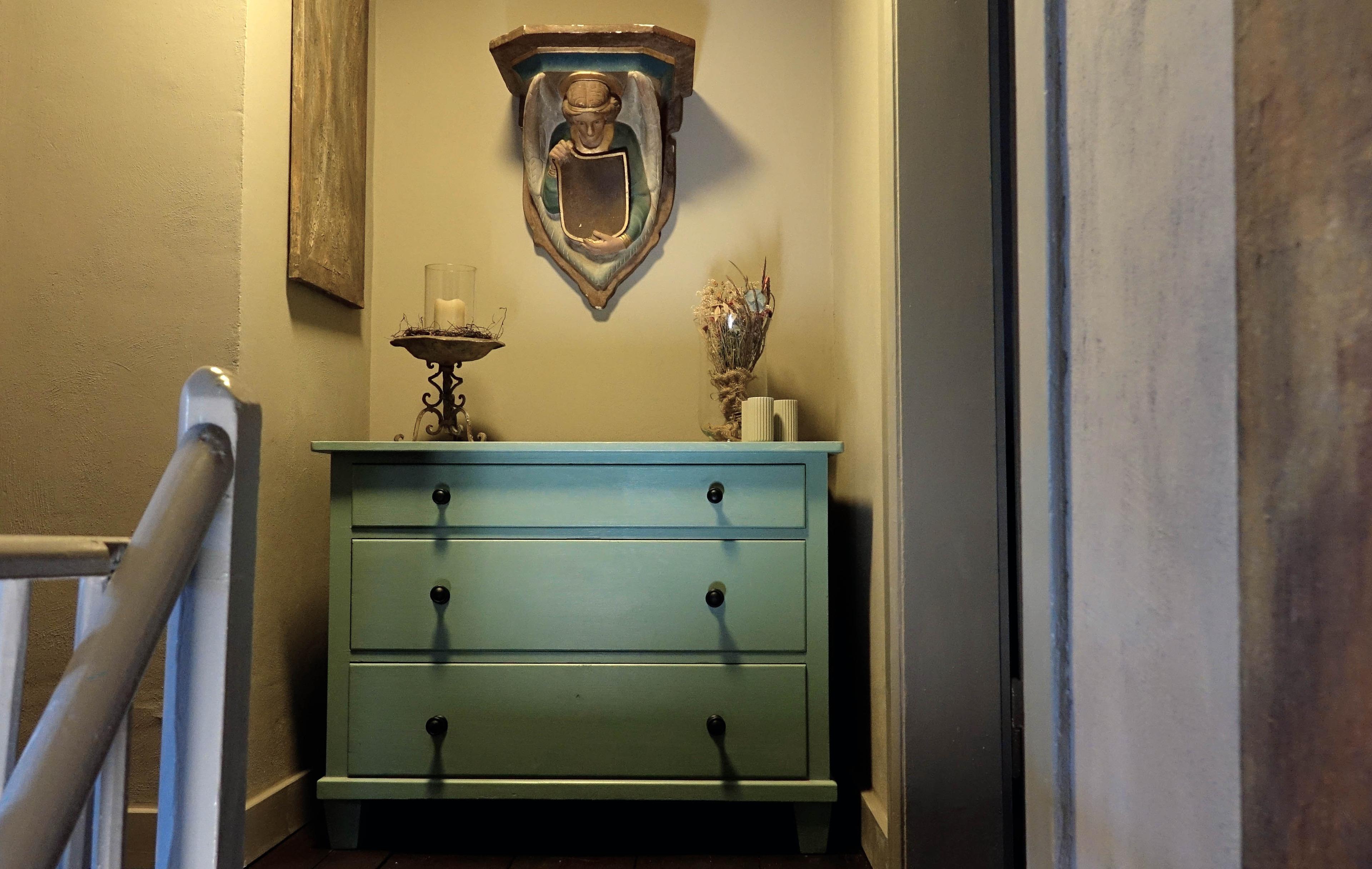 Alle Einrichtungsgegenstände wurden liebevoll zusammengestellt und zum Teil neu aufgearbeitet um sich in das Zusammenspiel zwischen Alter, Komfort und Individualität einzuschmiegen.