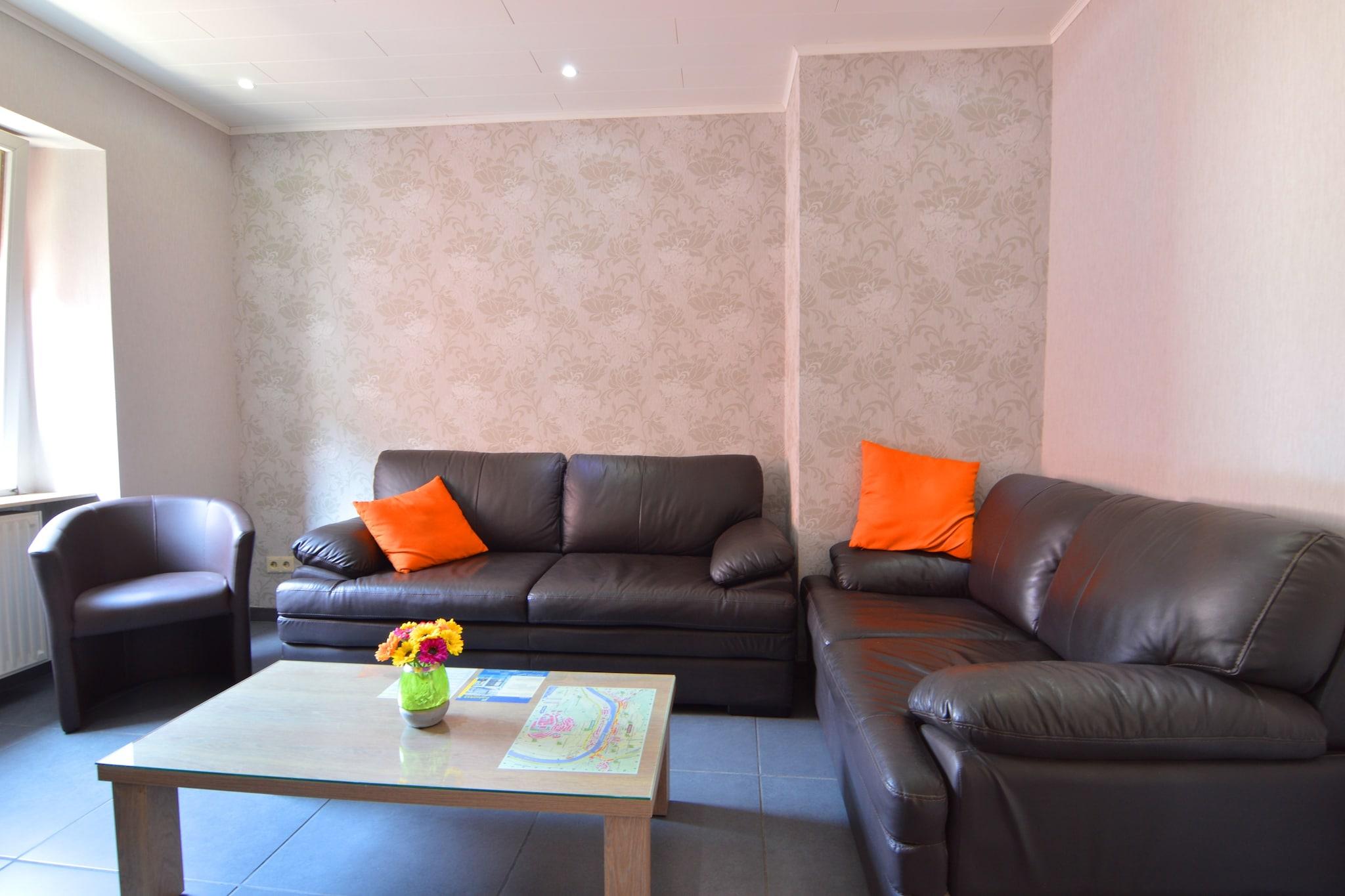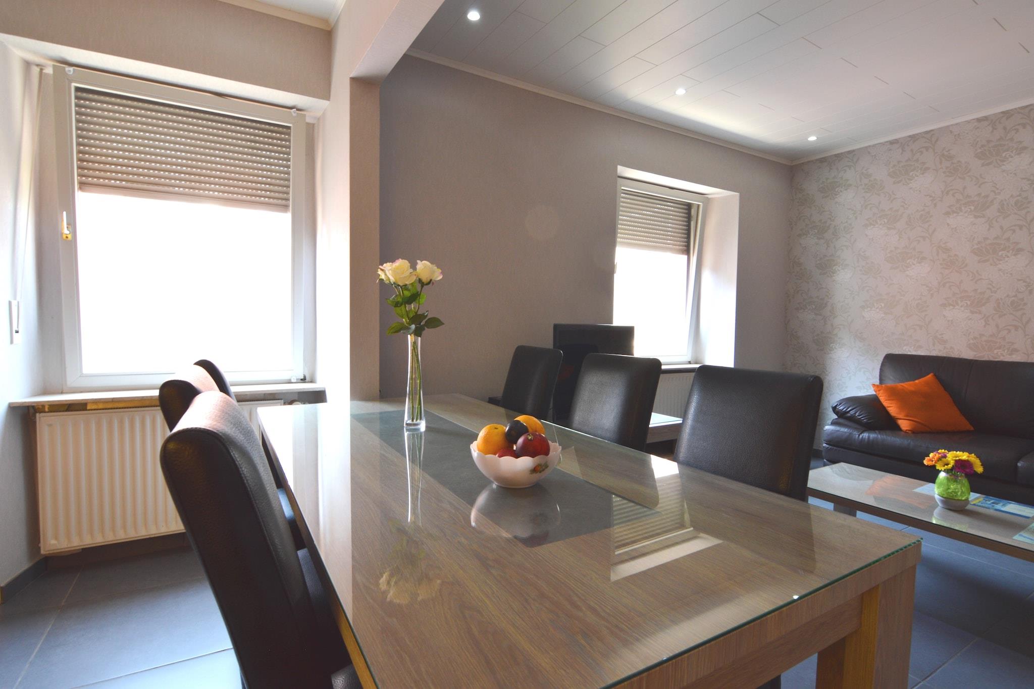 Denne centralt beliggende 2-værelses lejlighed i Zell an der Mosel er ideel til familier eller grupper på op til seks. Med en hyggelig stue-spisestue og en solrig terrasse tilbyder det en afslappende base kun få skridt fra Mosel-floden og dens naturskønne vingårdsdækkede bakker. Udforsk den charmerende by Zell, kendt for sin Zeller Schwarze Katz-vin, og nyd lette dagsture til Cochem, Trier og Koblenz langs floden. Restauranter er kun 100 m væk, og et supermarked er inden for 400 m for ekstra bekvemmelighed. Indvendigt byder lejligheden på et åbent køkken med moderne hårde hvidevarer, to soveværelser med dobbeltsenge og køjesenge samt et badeværelse med massagebruser. En garage er tilgængelig for parkering, og et kæledyr er velkomne med forudgående varsel. Uanset om du nipper til vin på terrassen eller cykler langs Mosel, kombinerer denne lejlighed komfort med klassisk floddalscharme.