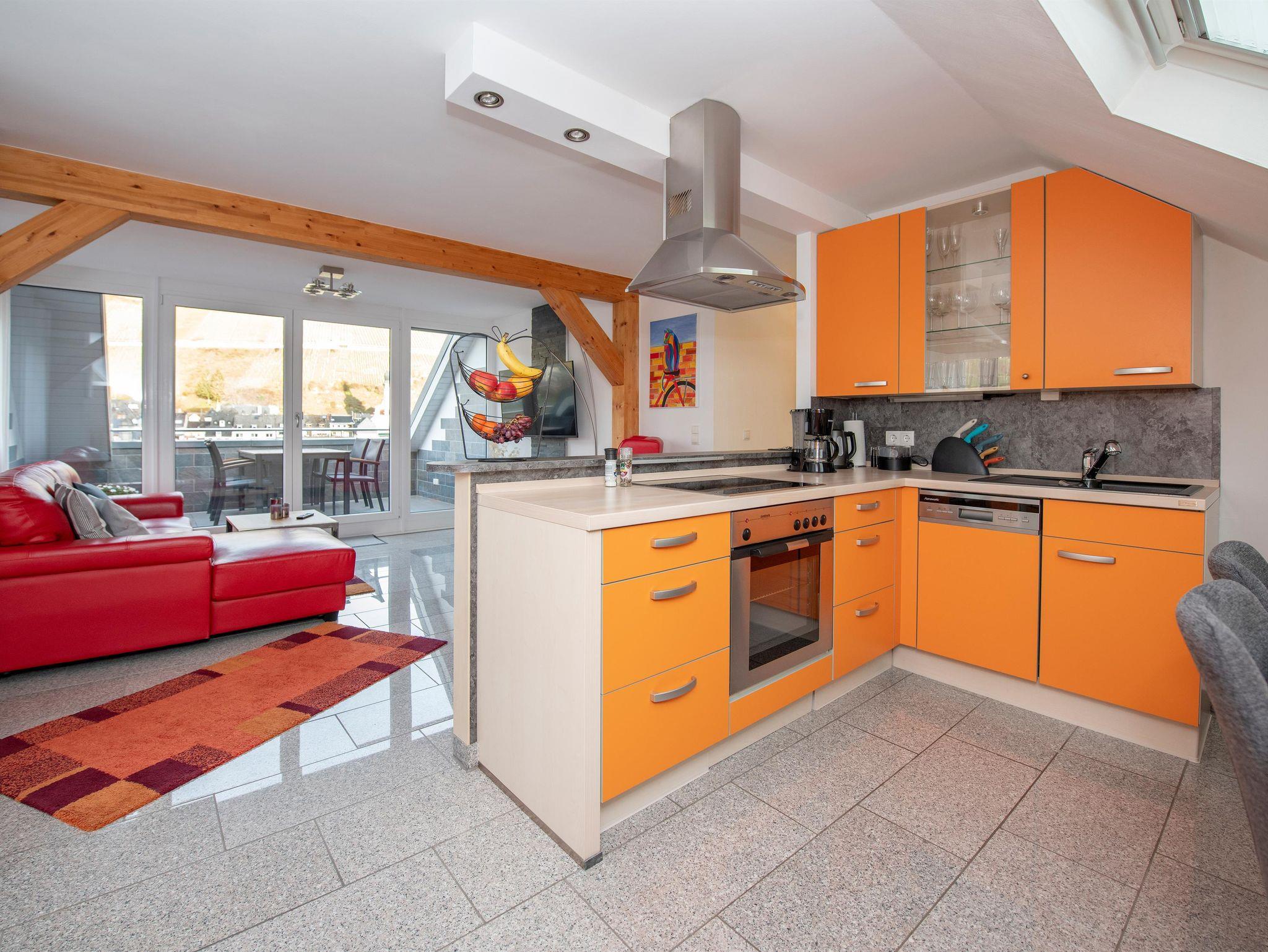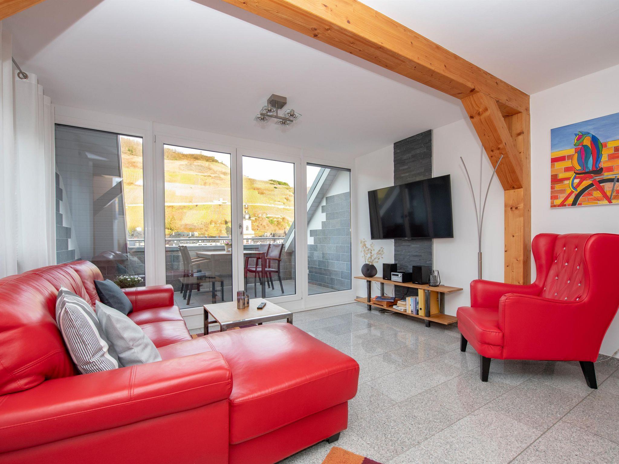 Ferienwohnungen in absolut ruhiger Lage, weit ab vom Durchgangsverkehr. Die Wohnungen sind in hellen Farben geschmackvoll ausgestattet. Sie befinden sich in einem modernen Haus in leichter Hanglage und haben eine grandiose Panoramasicht über die Mosel hin zur romantischen Stadt Zell aus dem Wohnraum oder der wunderschönen Dachterrasse bzw. Balkon.