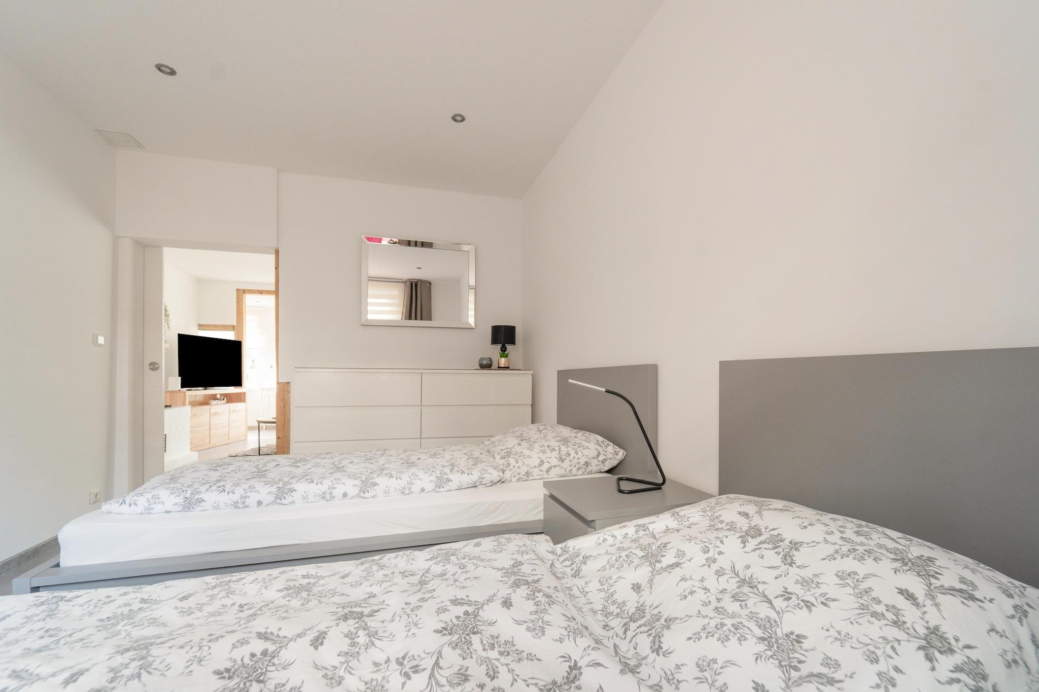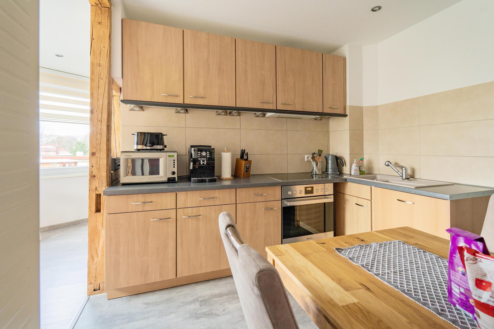Dette indbydende feriehus i Zella-Mehlis tilbyder et fredeligt tilflugtssted i udkanten af ??Thüringer Wald, væk fra folkemængderne og alligevel tæt på natur og kultur. For nylig renoveret og omhyggeligt møbleret byder lejligheden velkommen til par, familier og venner med dens hyggelige boligareal, lyse interiør og hjemlige detaljer. Efter en dag udendørs kan du samles i stuen eller tilberede fælles måltider i det fuldt udstyrede køkken, før du slapper af i det rummelige badeværelse med et langt bad i karret. Zella-Mehlis sidder ved porten til Rennsteig, Tysklands mest berømte vandresti i høj højde, hvilket gør det til et vidunderligt udgangspunkt for naturskønne vandreture, mountainbiking og vintersport. Byen er også fejret som et knudepunkt for nordisk skiløb. Ud over udendørsaktiviteter kan du besøge Explorata Science Center, udforske lokale museer eller nyde en film i biografen. Om sommeren giver nærliggende udendørs pools, legepladser og sportsfaciliteter sjov for alle aldre, mens hyggelige taverner og traditionelle Thüringer-restauranter inviterer dig til at prøve solide regionale smagsoplevelser. At rejse med kæledyr er særligt givende her. Fra skovstier perfekte til lange gåture til åbne enge, hvor hunde kan løbe frit, vil din firbenede følgesvend føle sig hjemme. Mange vandrestier omkring Zella-Mehlis er hundevenlige, og nærliggende caféer byder ofte kæledyr velkommen på deres terrasser, hvilket gør det nemt at kombinere afslapning med kvalitetstid udendørs.
