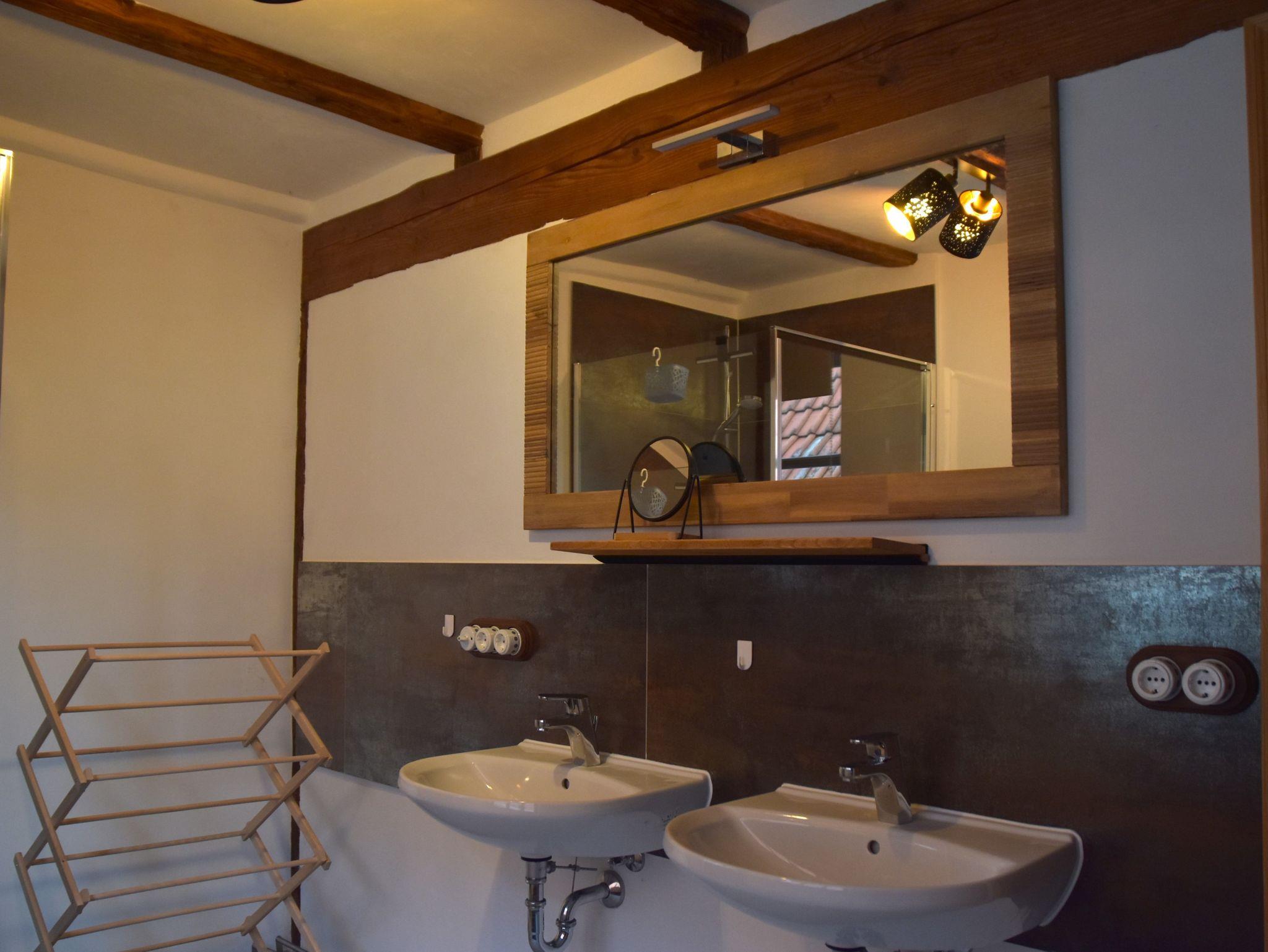 Im Erdgeschoss befindet sich ein Schlafzimmer, ein Bad mit Badewanne und ebenerdiger Dusche, WC und Waschbecken. Zum Reinigen Ihrer Kleidung stehen Ihnen in der Waschküche eine Waschmaschine und ein Trockner zur Verfügung.