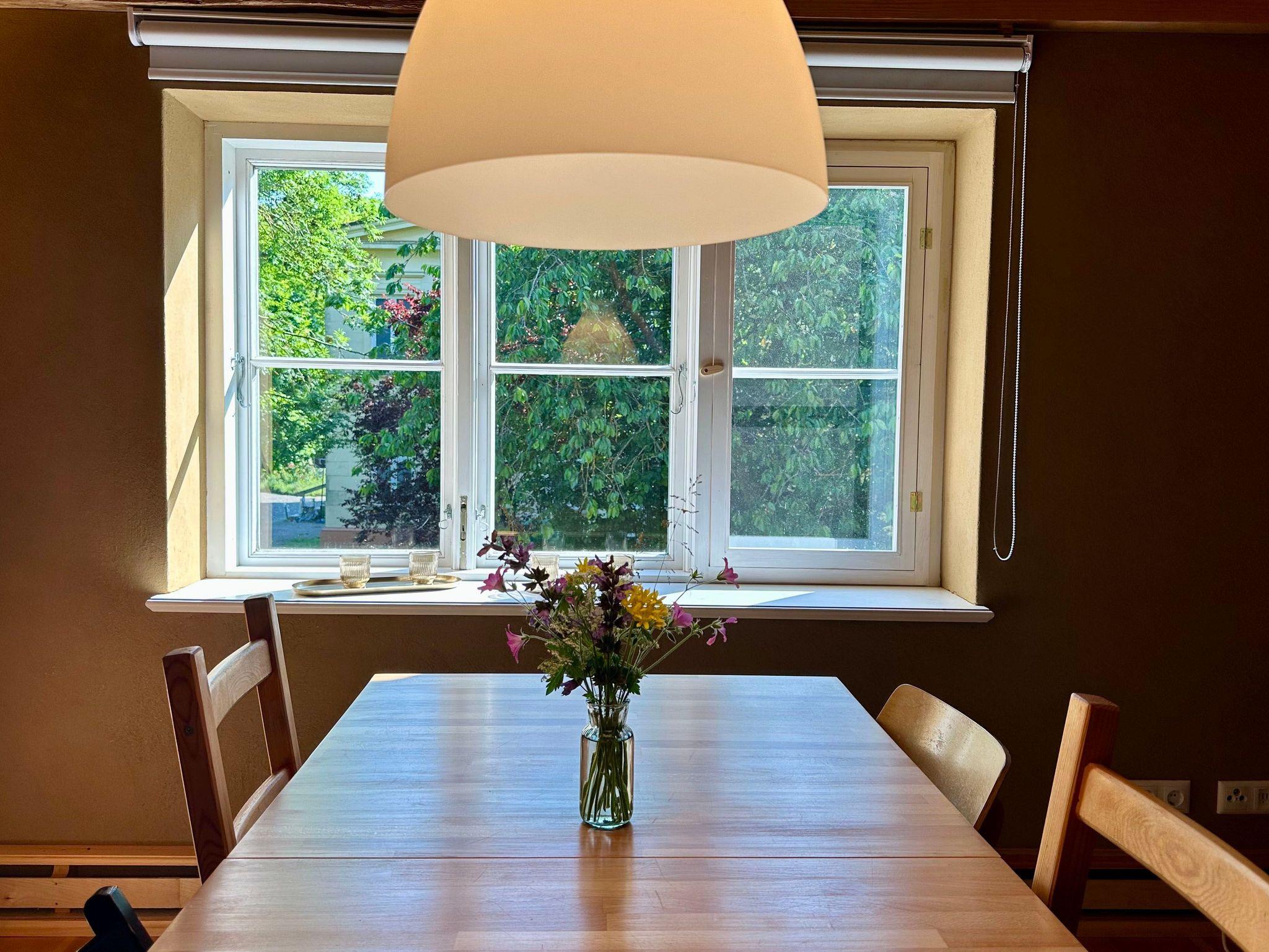 Die charmante Dachgeschosswohnung erreichen Sie über eine rustikale Holztreppe. Die Wohnung wurde im Fachwerkstil mit viel Holz und nachhaltigen Materialien liebevoll saniert, wodurch eine gemütliche und einladende Atmosphäre entsteht.
