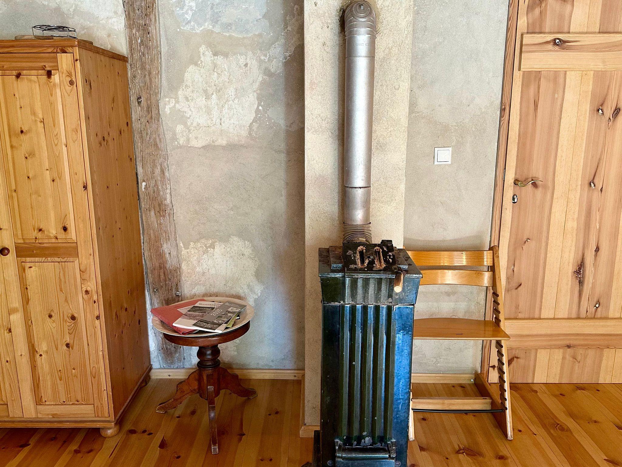 Ein Highlight ist der kleine antike Gussofen, der bei Bedarf von uns mit eigenem Holz beheizt wird und für eine gemütliche Wärme sorgt. Weitere Heizmöglichkeiten stehen derzeit nicht zur Verfügung.