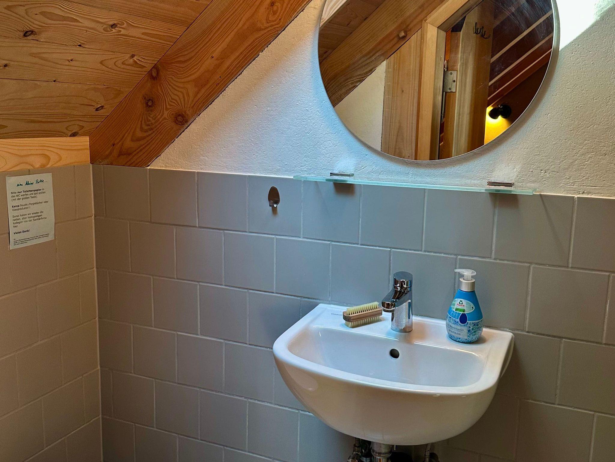 Die 38 qm große Ferienwohnung ist kompakt, aber clever gestaltet und bietet ausreichend Platz für bis zu vier Personen. Die Schlafbereiche bestehen aus vier Stapelbetten, ideal für Familien oder kleine Gruppen. Das Badezimmer ist funktional eingerichtet und verfügt über eine Dusche.