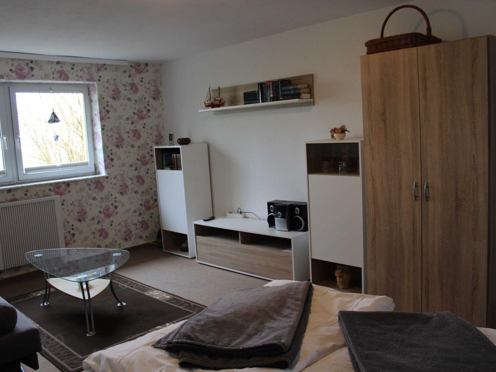 Gemütliche Einraumwohnung mit Radio, TV ,kleine Küche. Bettwäsche wird bereitgestellt. Beim Blick aus dem Fenster genießen Sie die Natur pur. Die vorbeiführende Straße wird nur von Anliegern, Jägern und Waldliebhabern genutzt.