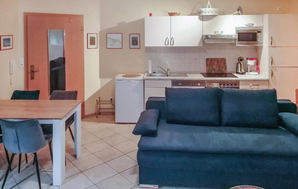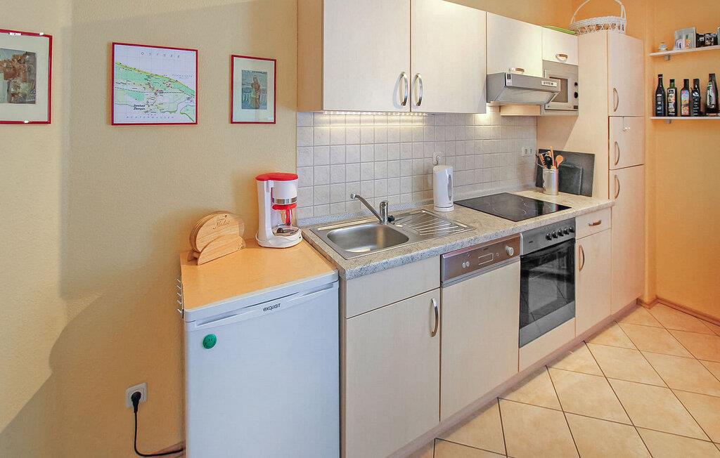 Kun cirka 600 m (ca. 12 minutters gang) fra Østersøstranden og cirka 800 m fra Achterwasser ligger der en komfortabel ferielejlighed til 2 personer med to ekstra senge i stueetagen af et lejlighedshus med en i alt 6 boligenheder. Den cirka 40 kvm store ikke-ryger lejlighed, udstyret med gulvvarme og elektrisk pejs, har opholdsstue (sovesofa - ekstra opredning til 2 personer, fladskærms-tv med radio, spisebord) med åbent køkken (el-komfur med bl.a. ovn, køleskab, mikroovn, opvaskemaskine, elkedel, kaffemaskine), et soveværelse (dobbeltseng) og et badeværelse (bruser, toilet, vaskemaskine). Der er også en møbleret terrasse, en parkeringsplads og et cykelrum til rådighed. Den samlede pris inkluderer slutrengøring samt omkostninger til el og vand. Sengelinned og håndklæder kan medbringes eller lejes mod betaling. Betales på stedet: turistskat, linnedpakke. Et kæledyr (ingen store hunde) er tilladt i denne ejendom. Bernsteinbad Zempin er en af de smukke badebyer på øen Usedom, der ligger på et smalt næs mellem Østersøen og Achterwasser. Bred sandstrand (også hundestrand og nudist), naturlig havn ved Achterwasser, cykelstier, forskellige restauranter, shopping, cykel- og strandstoleudlejning i byen. Fra Zempin togstation kan du nemt nå de andre badebyer på øen hvert 30. minut.