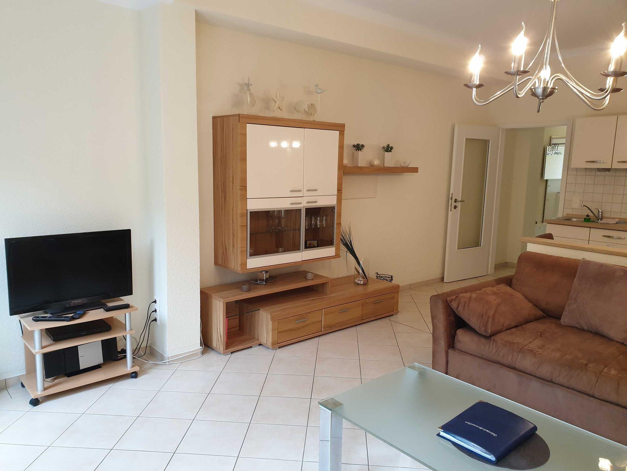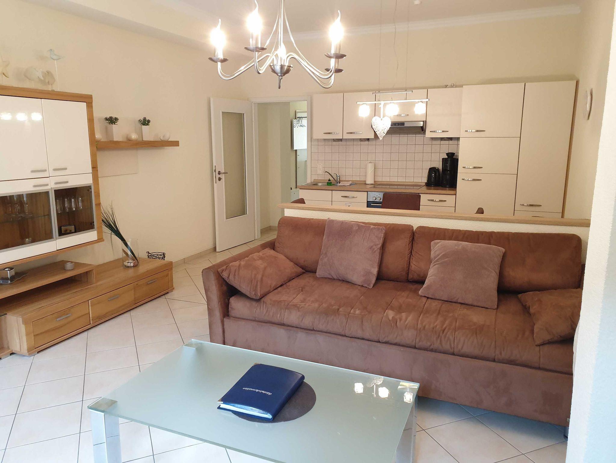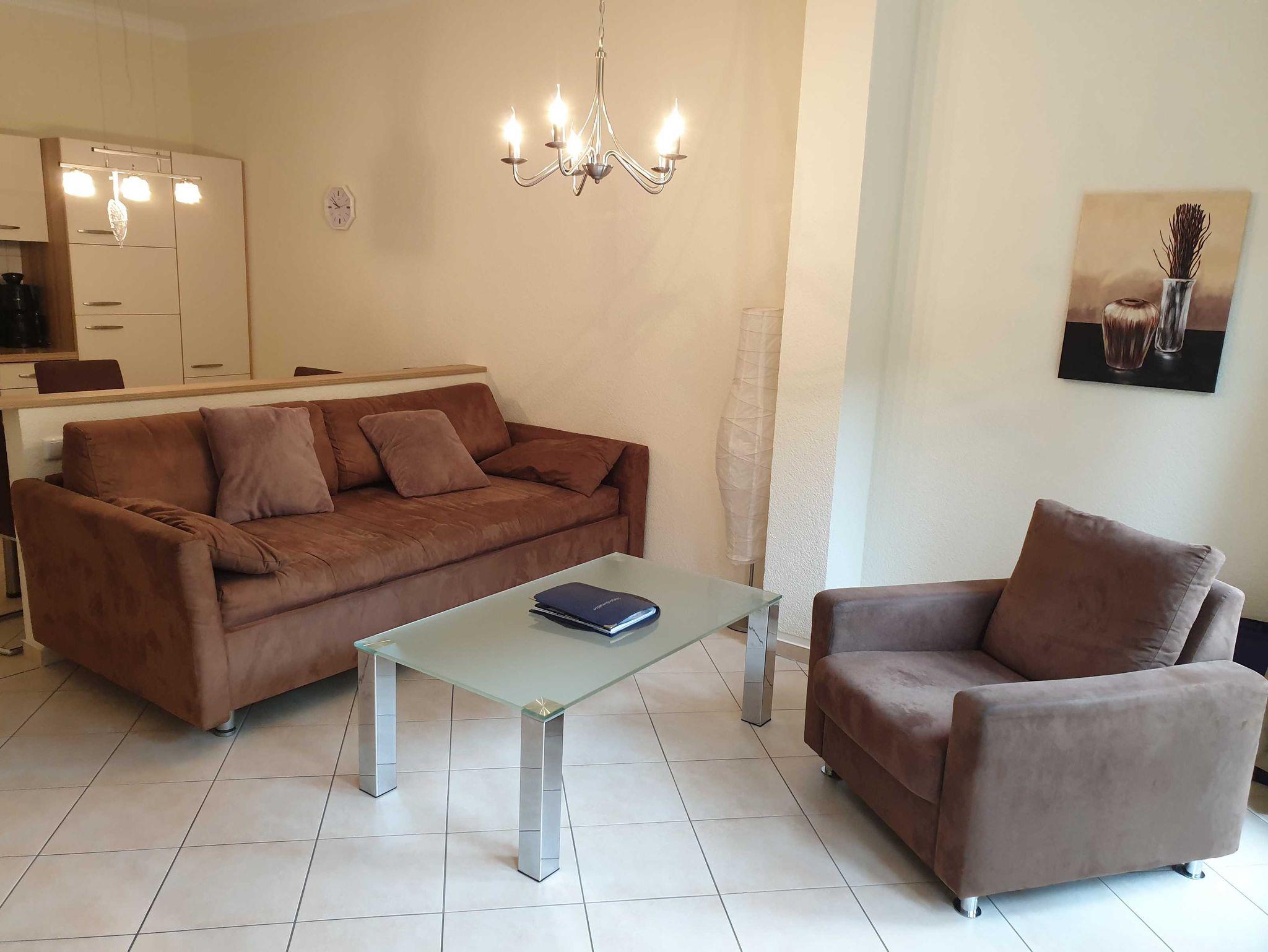 Im Wohnzimmer gibt es ein Schlafsofa für die dritte Person.