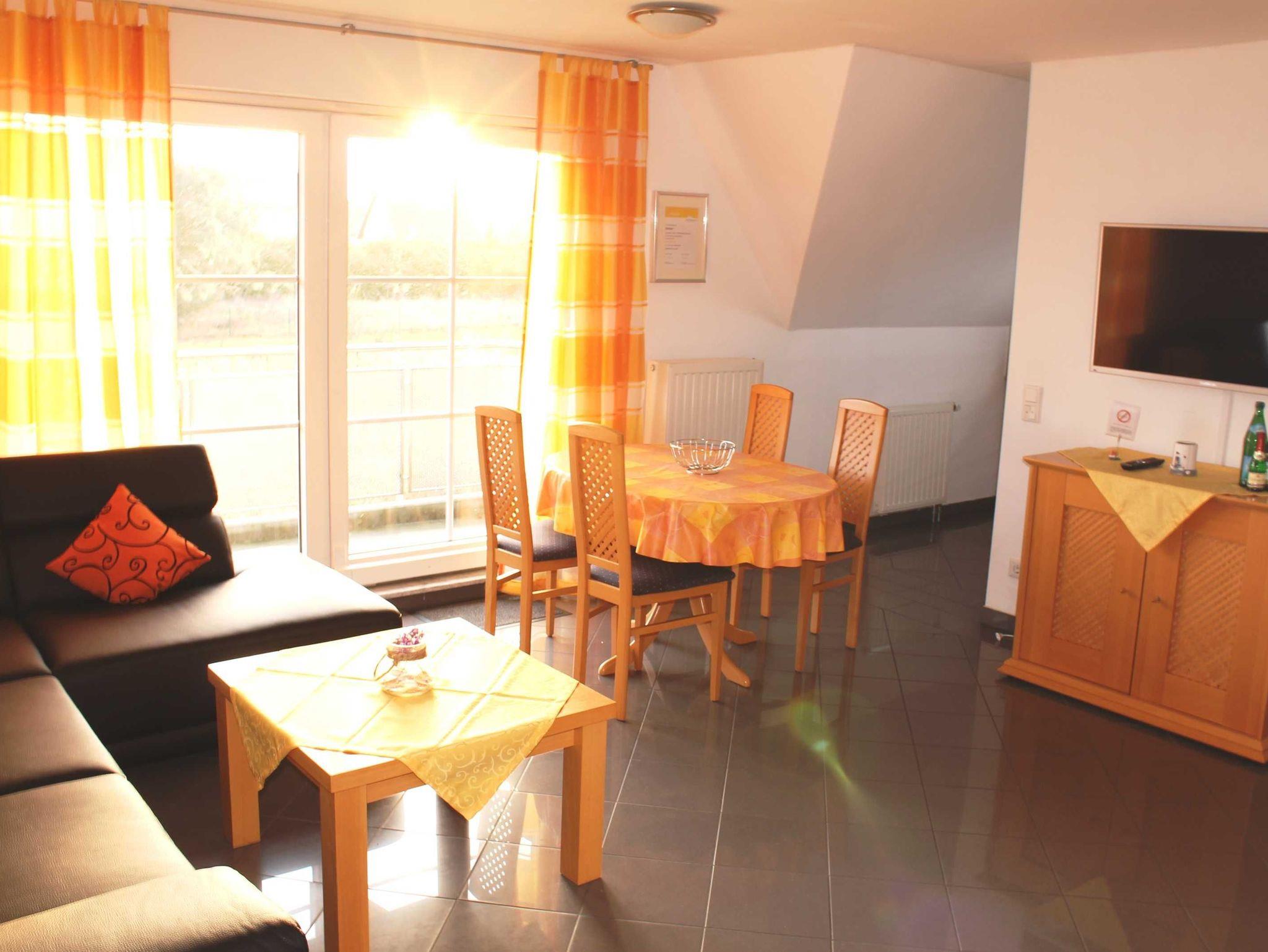 Genießen Sie die großzügige Atmosphäre in einer der sechs Ferienwohnungen und fühlen sich wie zu Hause. Zur allgemeinen Nutzung stehen eine Waschmaschine und ein Trockner (gegen Gebühr) zur Verfügung, ebenso wie ISDN- Durchwahltelefon und WLAN. Dank der Privatzufahrt wohnen Sie ruhig und dennoch zentral. Jede Wohnung hat einen eigenen Parkplatz auf dem Grundstück. Fahrräder können gemietet und im verschließbaren Carport untergestellt werden. Wahlweise haben Sie Zugang zum gepflasterten Terrassenbereich aus den Wohn- und Küchenbereichen. Die zur Südseite gelegenen Terrassen und Balkone sind mit Gartenmöbeln, Sonnenschirm und Grill ausgestattet.
