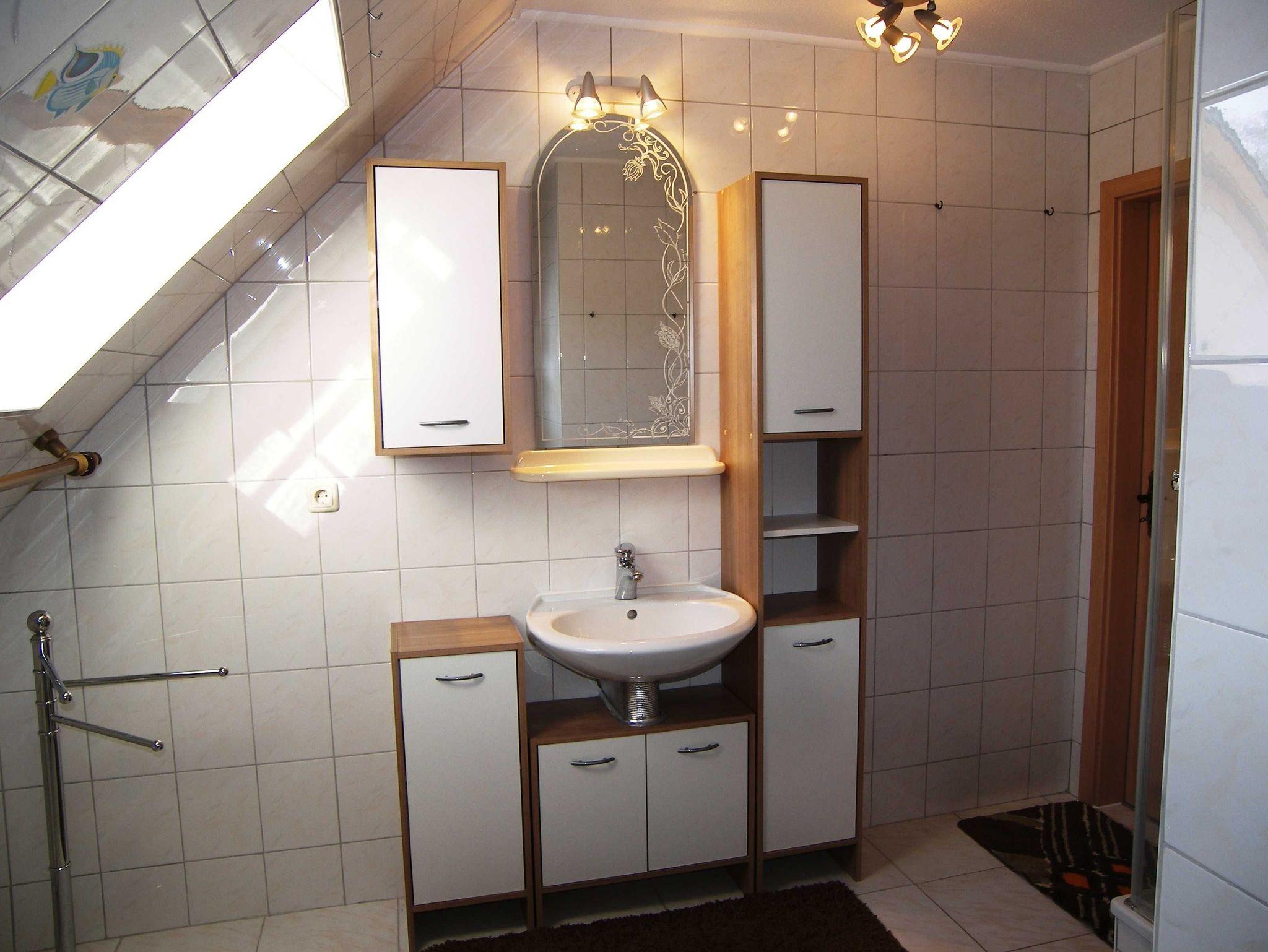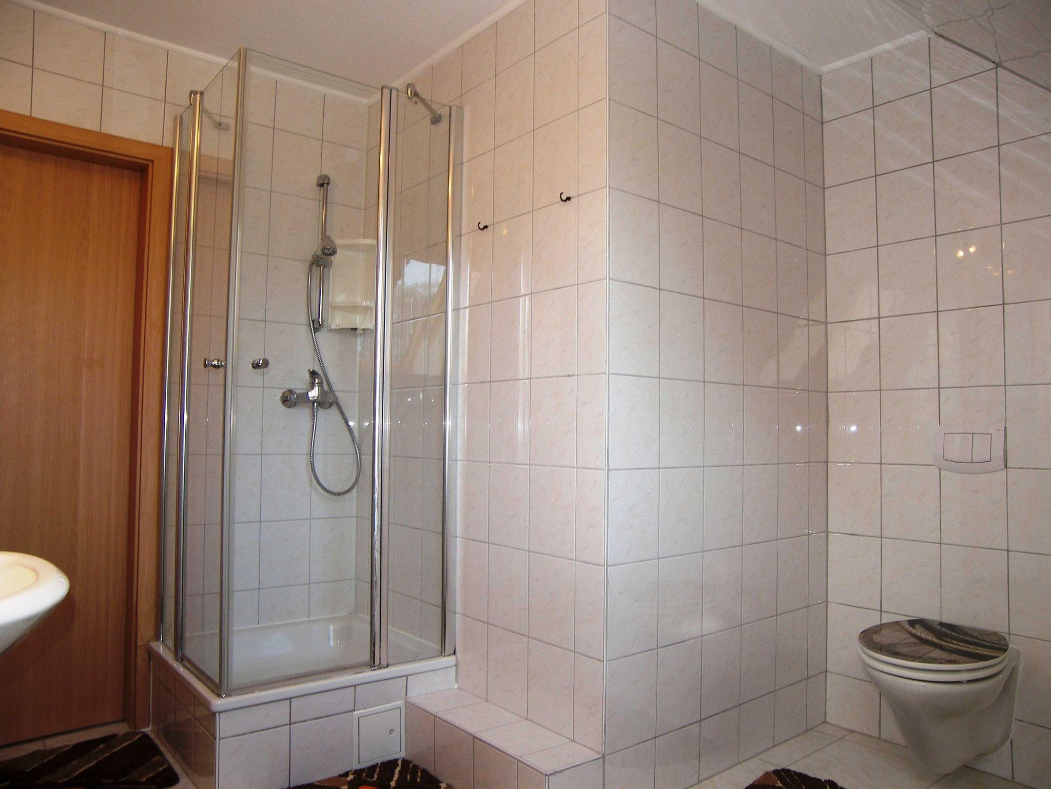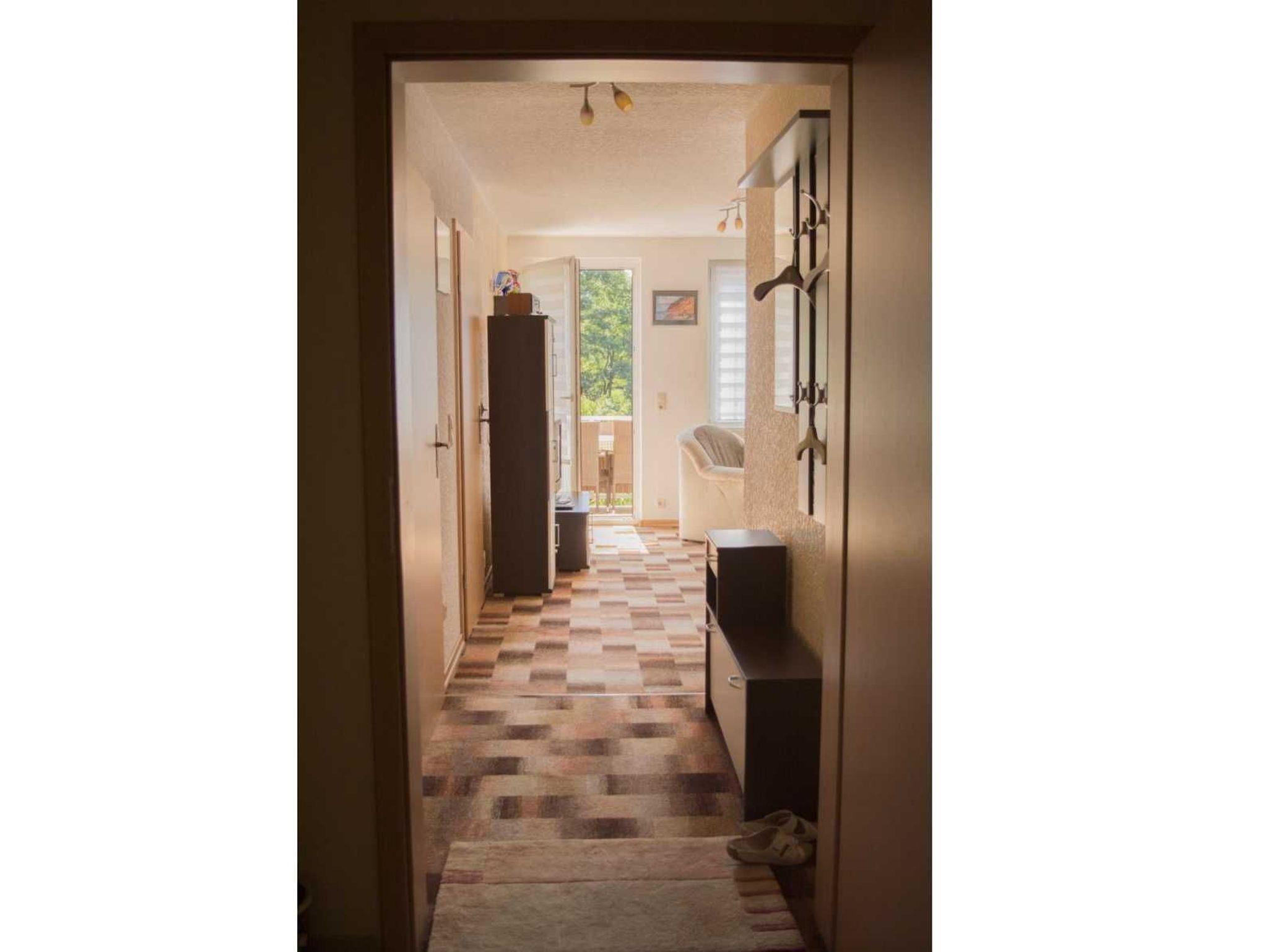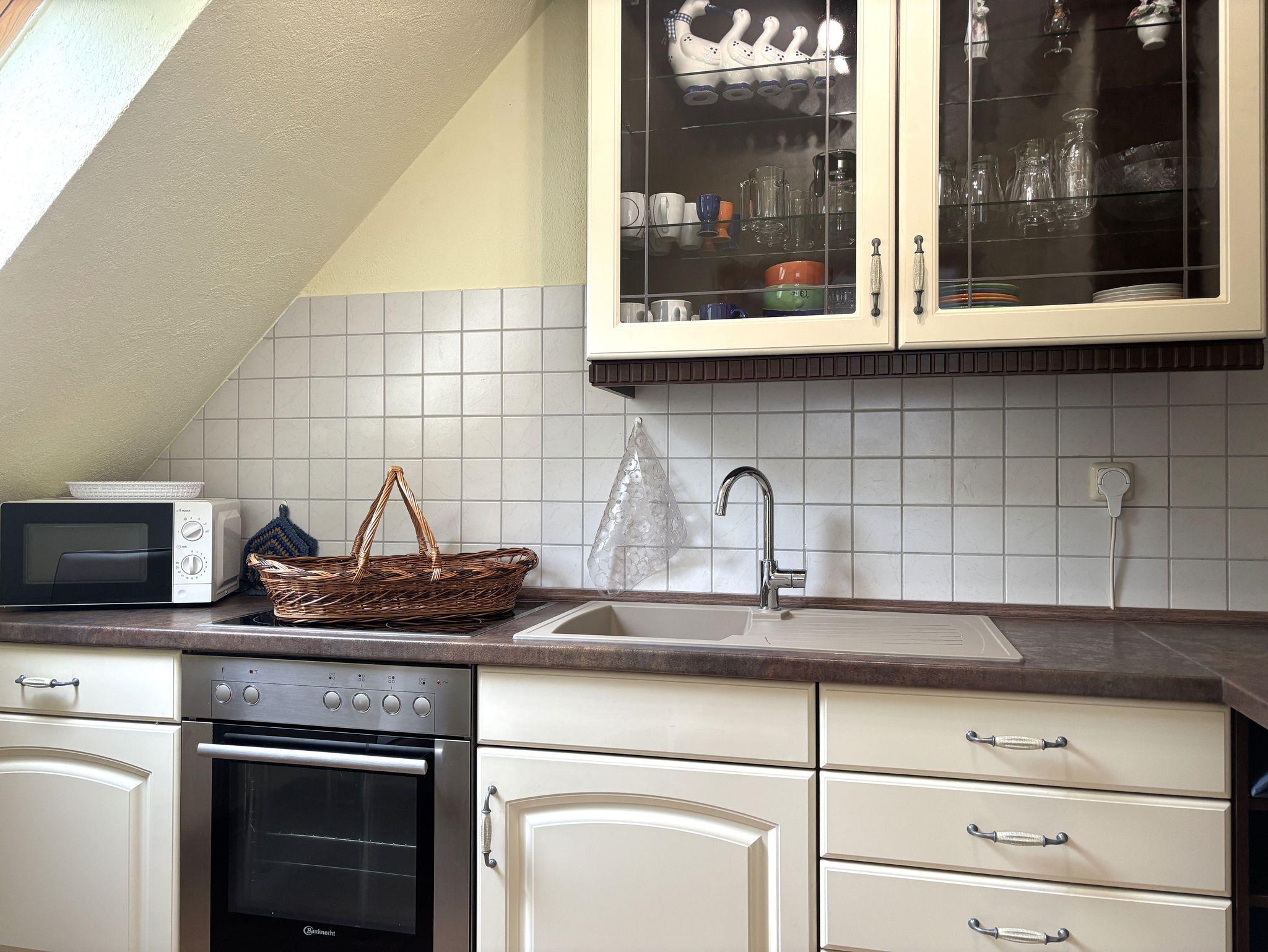 Die gemütliche Ferienwohnung ist ca. 55 m² groß und befindet sich im 1. OG. Sie verfügt über einen separaten Eingang. Das Schlafzimmer ist mit einem Doppelbett und einem Kleiderschrank ausgestattet. Für die 3. Person kann eine bequeme Schlafcouch (160 x 200) im Wohnzimmer genutzt werden. Das gemütlich eingerichtete Wohnzimmer ist mit einem großen Fernseher und Radio ausgestattet. Der große (10m²), möbelierte Balkon zur Südseite mit Wiesenblick lädt zum Verweilen ein. Grillen auf dem Balkon ist möglich.