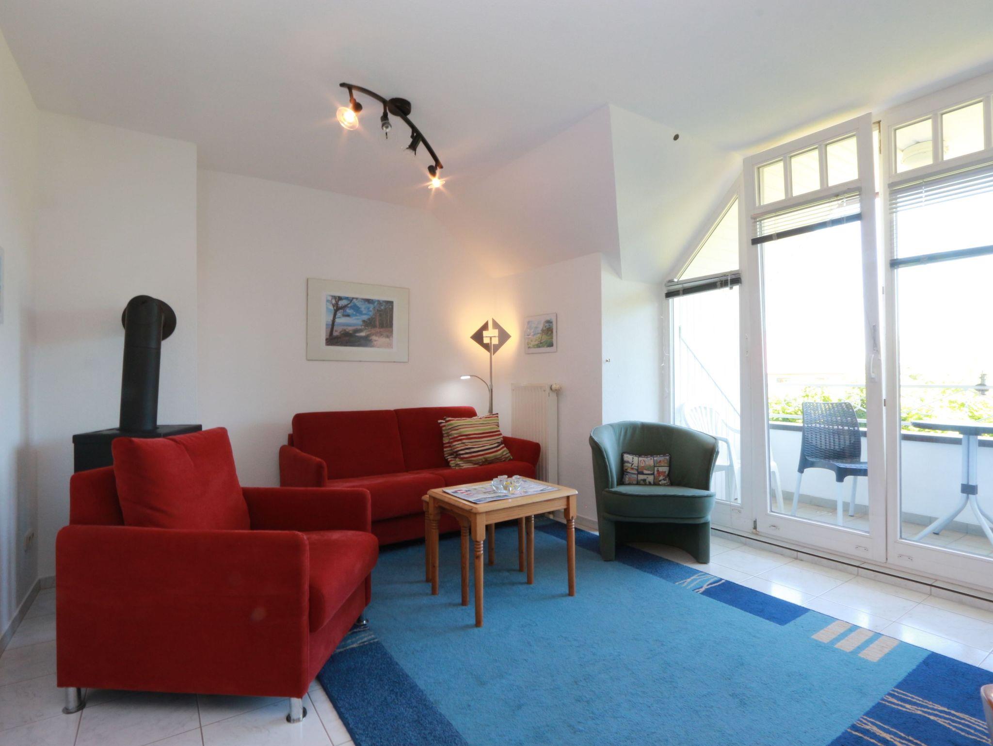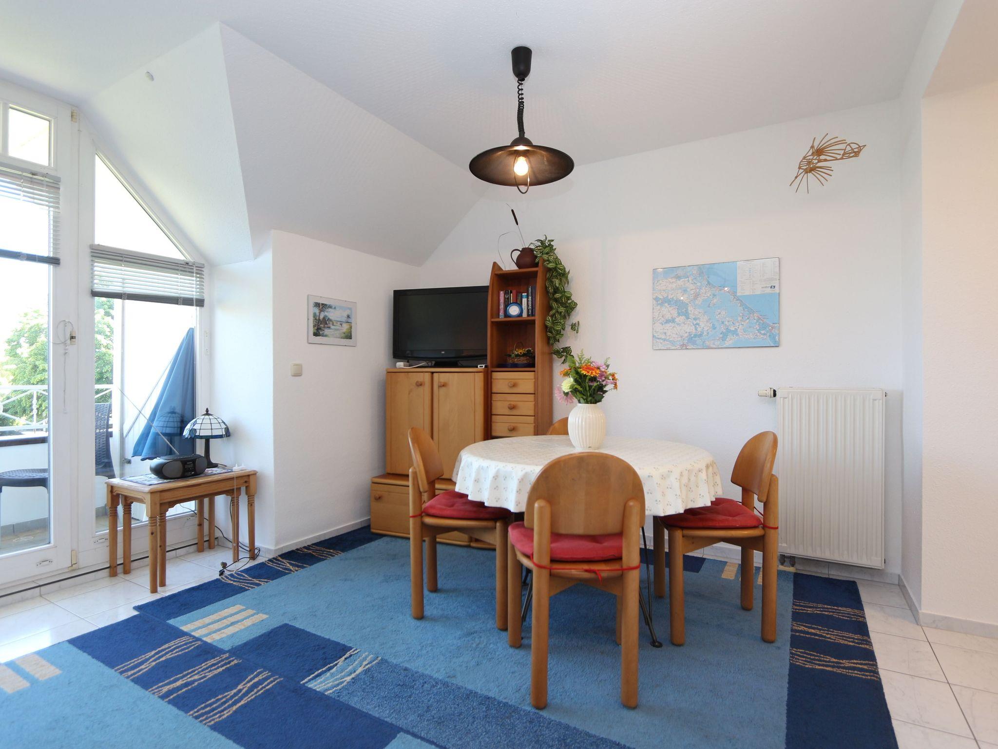 • Das Wohnzimmer verfügt ein Schlafsofa (Aufbettung für die 3. Person) und einen Essbereich für 4 Personen.
