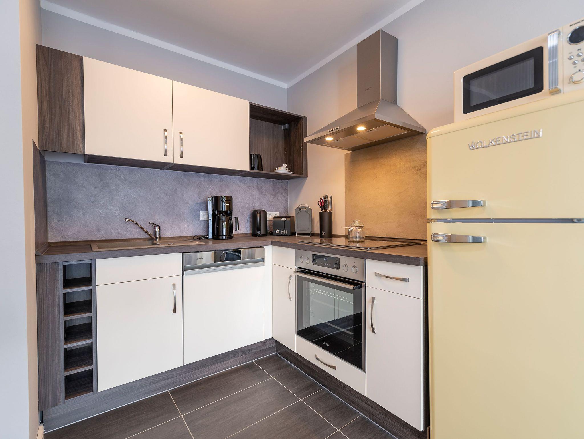 Das Appartement Nr. 3 im 1. Obergeschoss oben rechts ist für bis zu 4 Personen plus Baby ausgelegt. Es verfügt über: